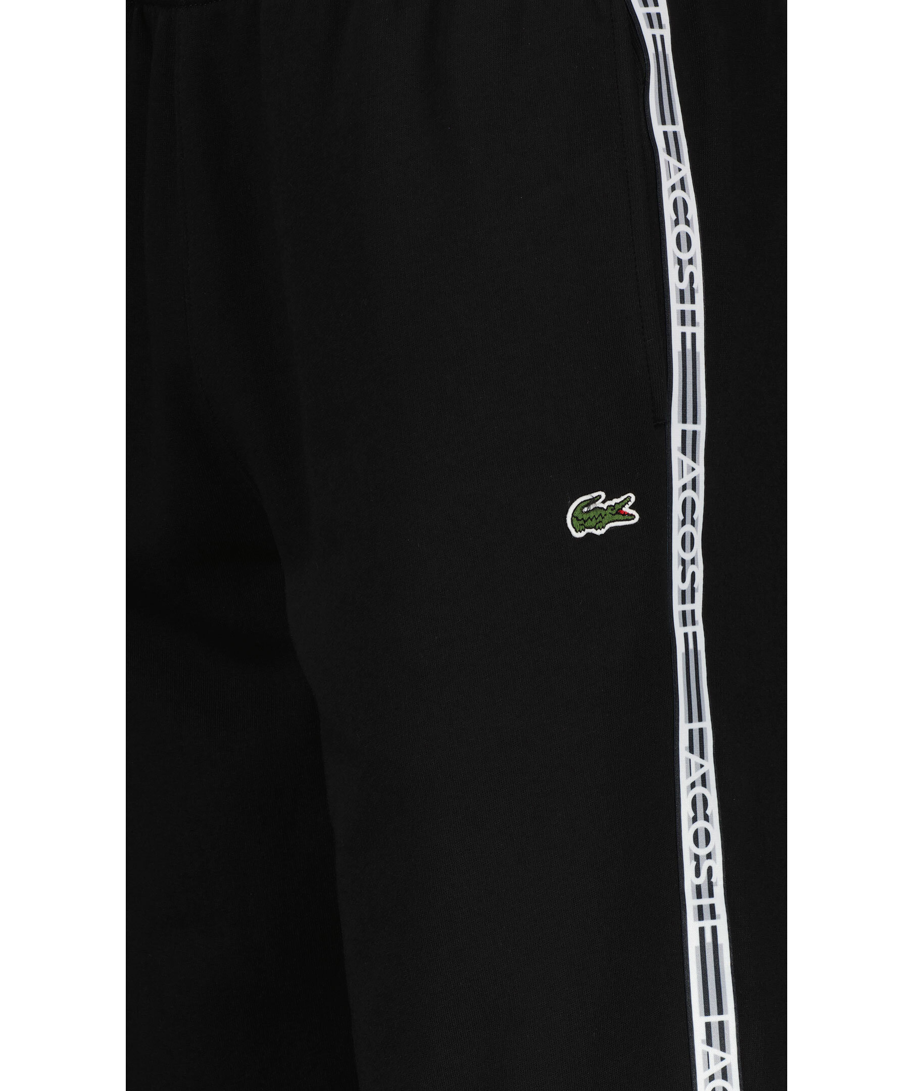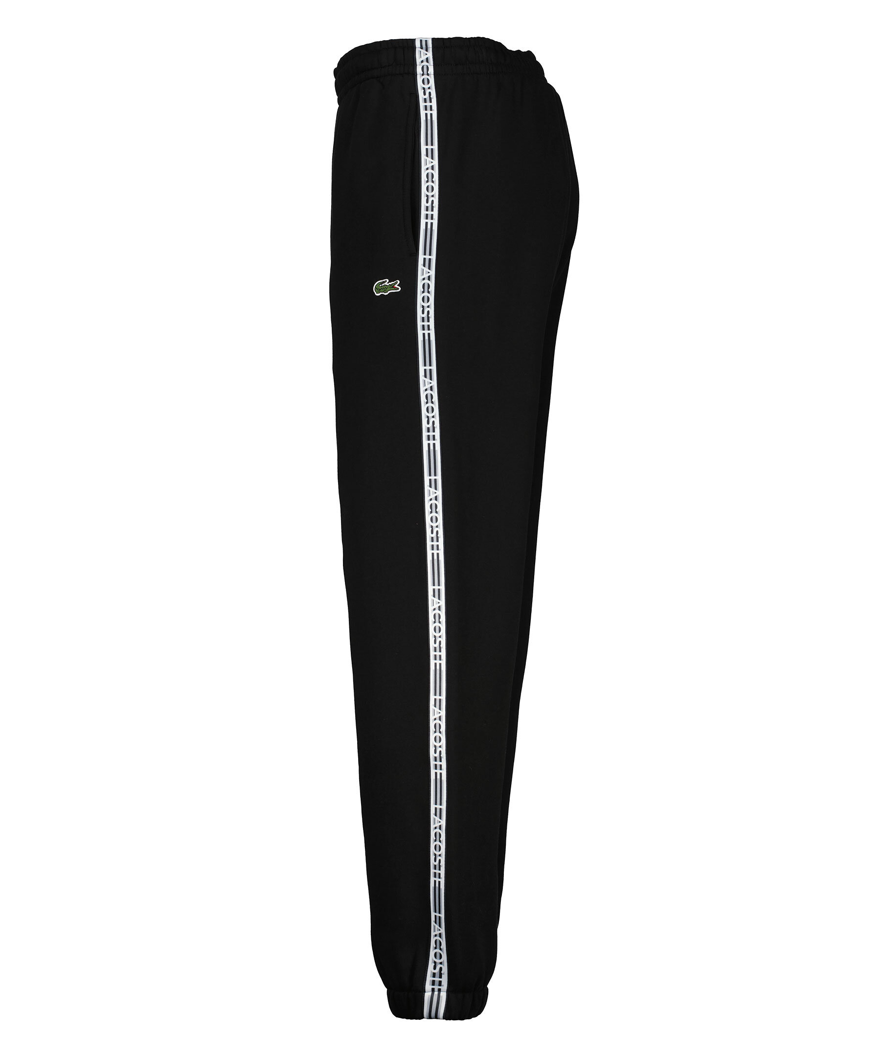 Svarta mjukisbyxor från Lacoste. Två fickor framtill. Vita revärer med logotyper och svarta och gråa detaljer. Två fickor framtill. Dragsko i midjan. Borstad insida. Broderad patch med logotyp på vänster lår.