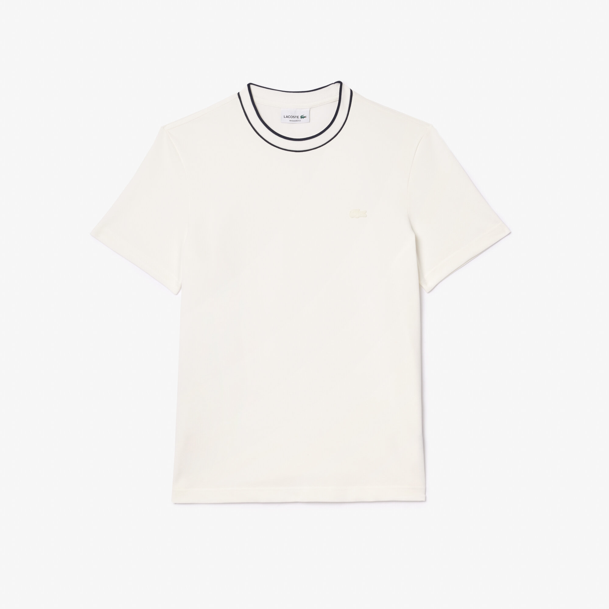 T-shirt från Lacoste i fin piqué med regular passform. T-shirten har en kontrastfärgad, randig ribbad krage som elegant detalj. Designen kompletteras av en diskret, ton-i-ton-broderad krokodil på bröstet.
