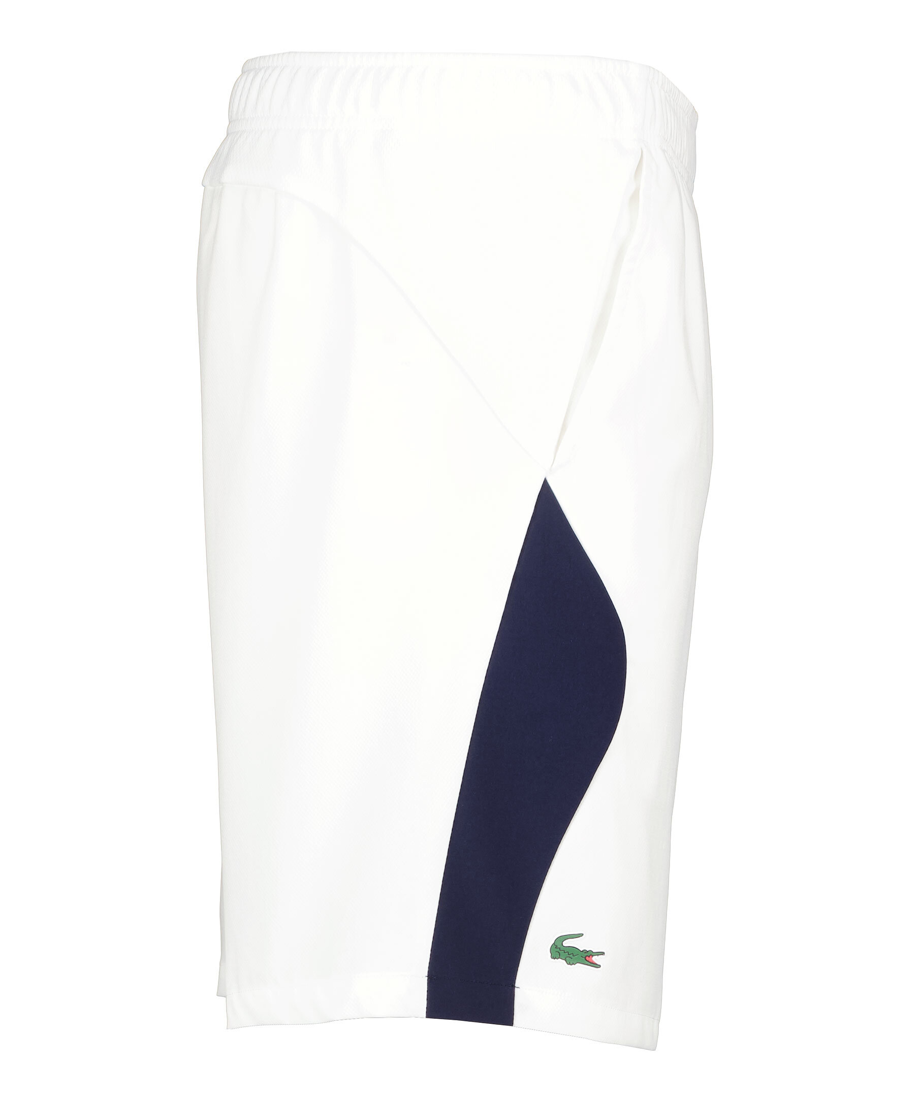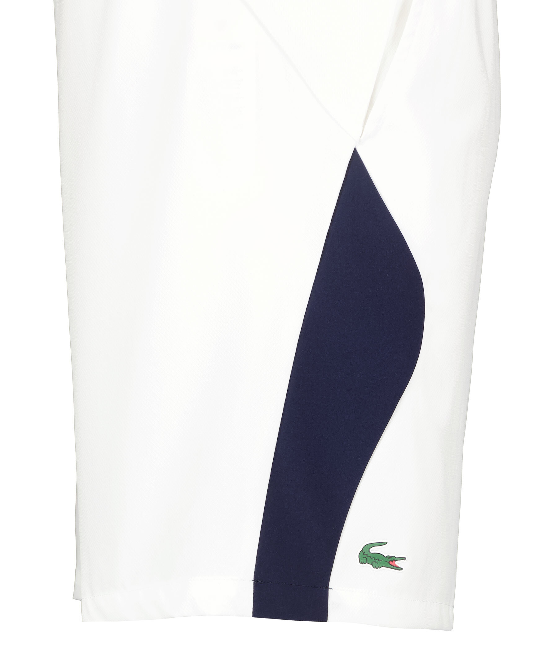 Vita tennisshorts från Lacoste. Normal passform och utformade för rörelse. Dold dragsko i midjan, konstrast tyg i marinblått och broderad krokodil på sidan. Två framfickor.