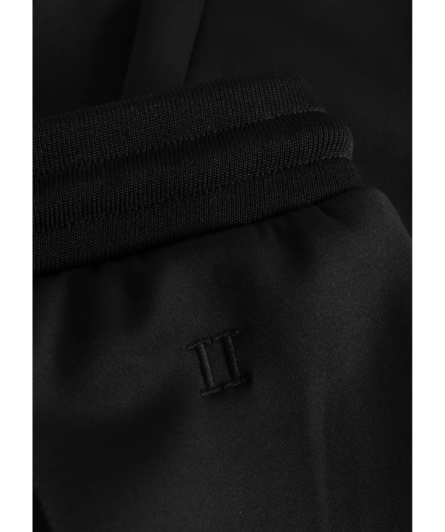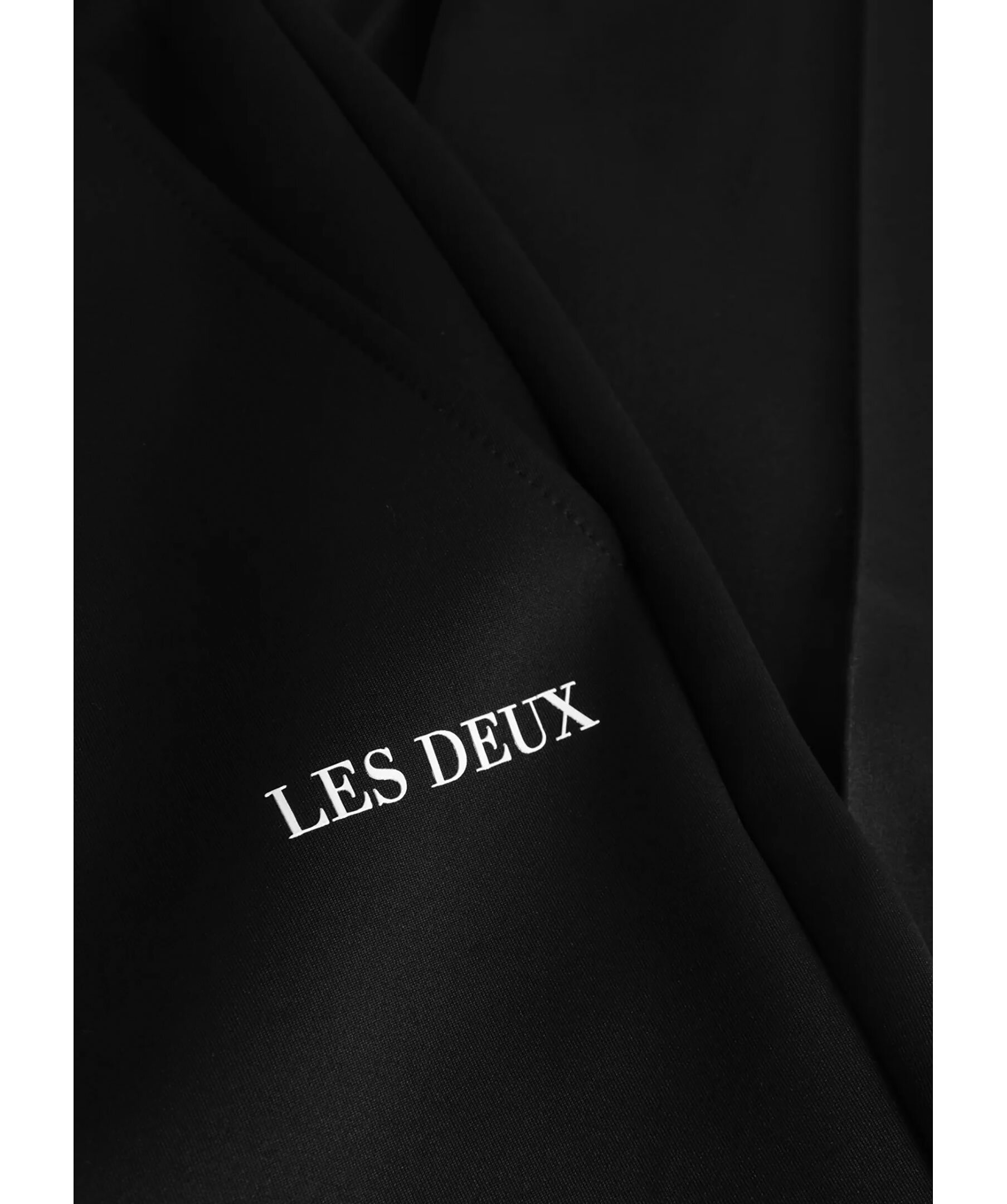 Svarta trackbyxor från Les Deux. Byxorna har elastisk midja med dragsko, två sidfickor, pressveck framtill samt en gummitryckt logga på benet. Tillverkade i en polyesterblandning.