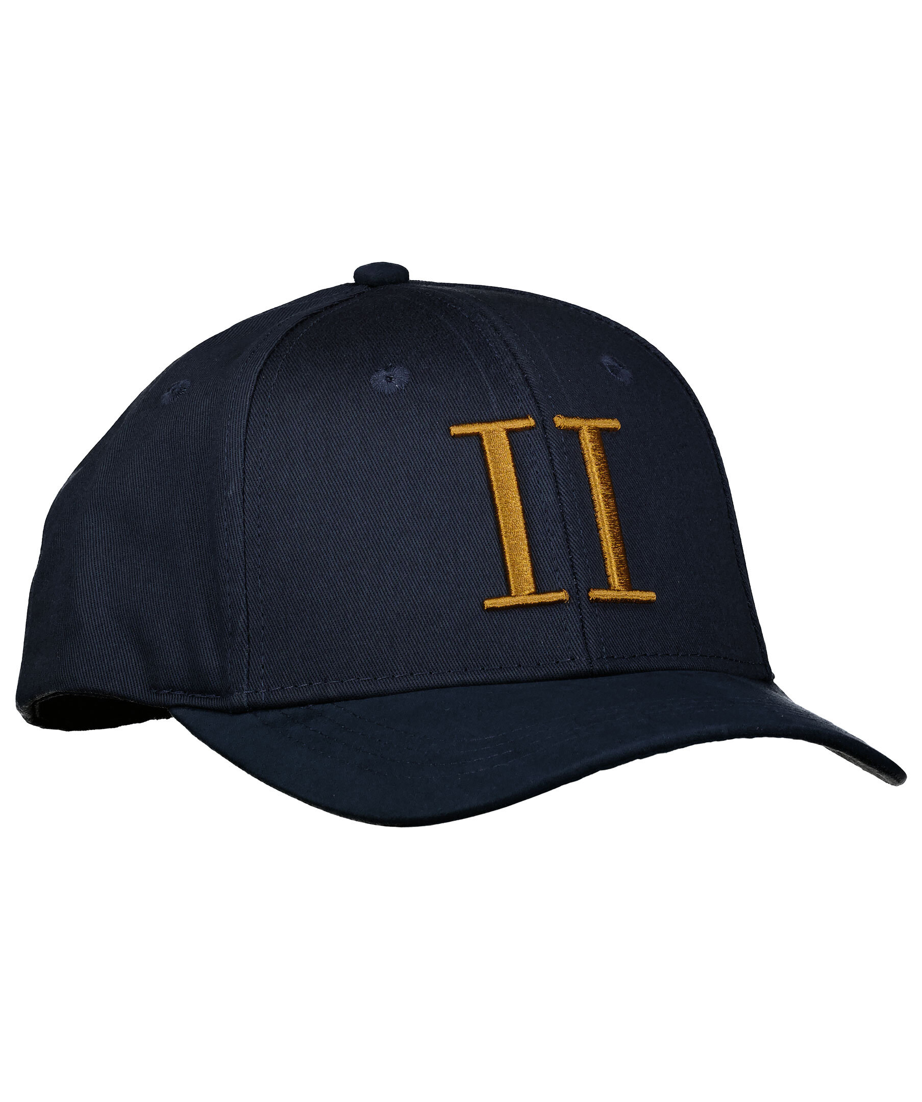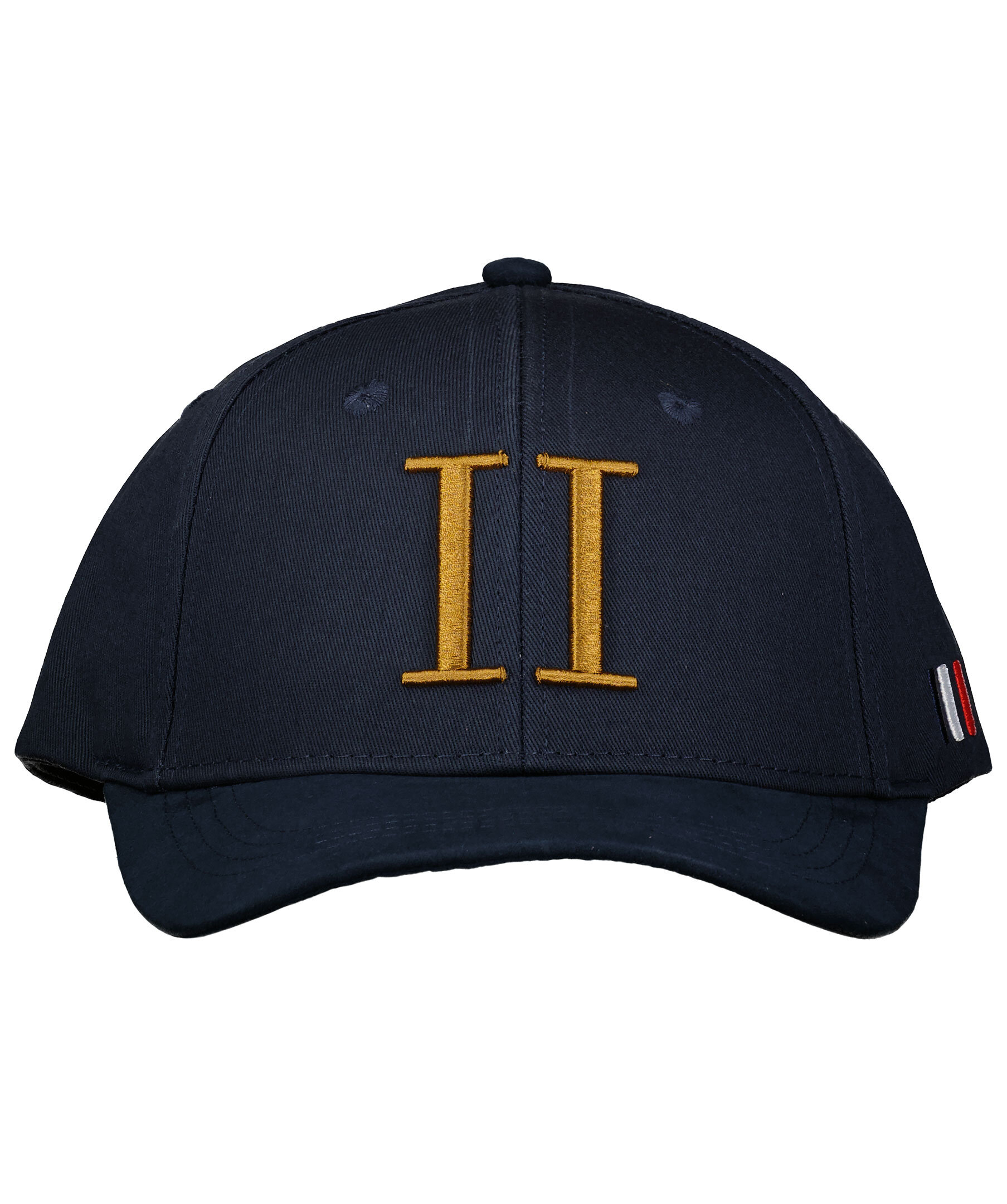 Marinblå keps från Les Deux med broderad, orange logotyp på framsidan. Justerbart spänne bak och tre broderade streck i vitt, rött och blått på den vänstra sidan. Tillverkad i 100% bomull.