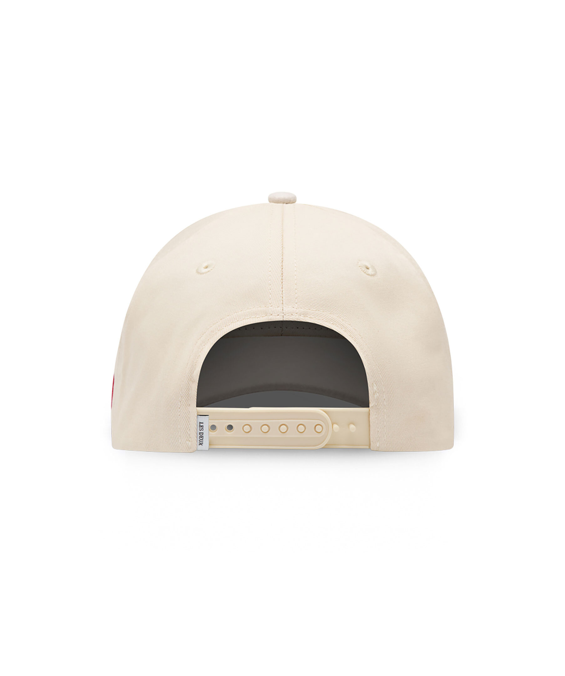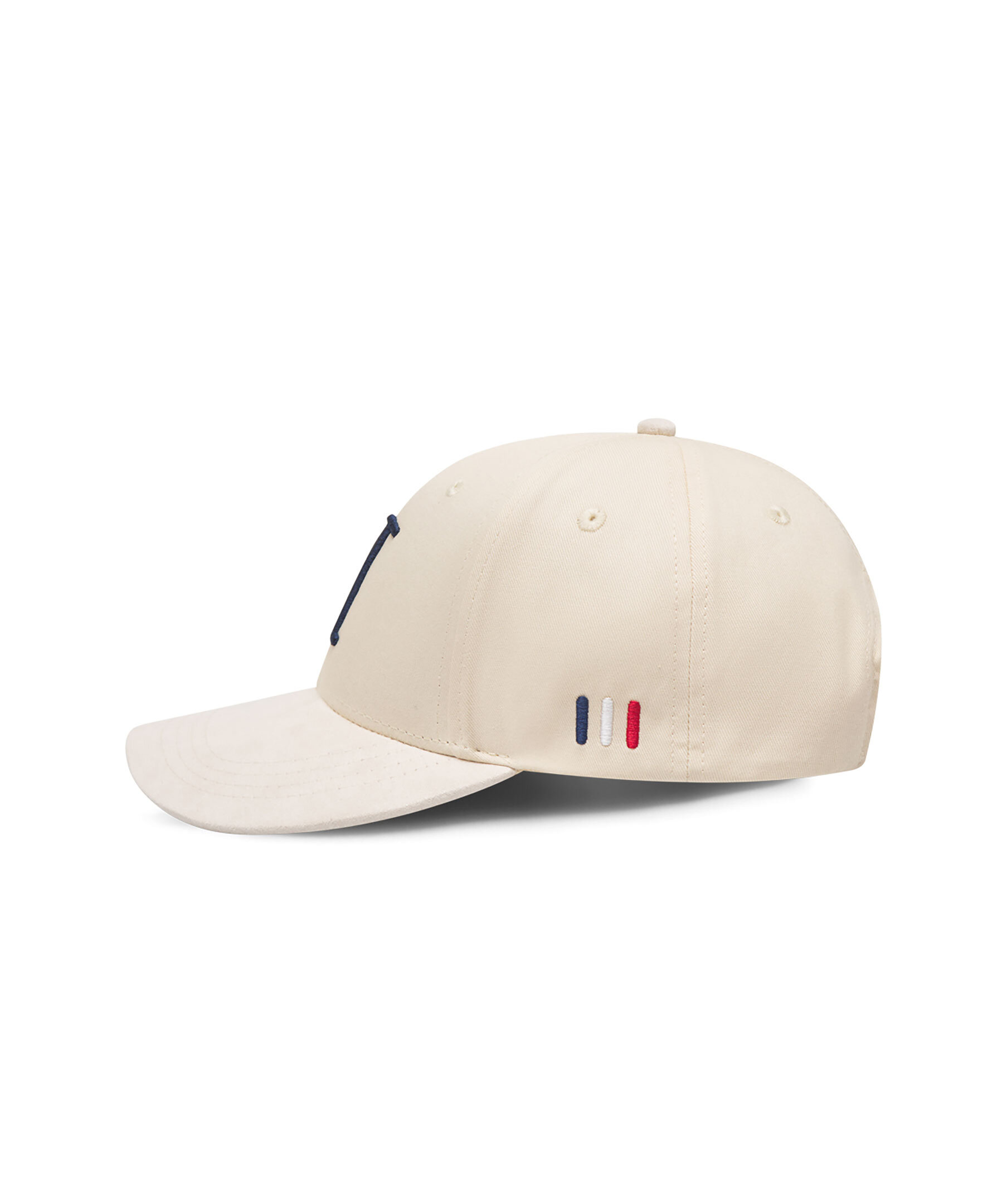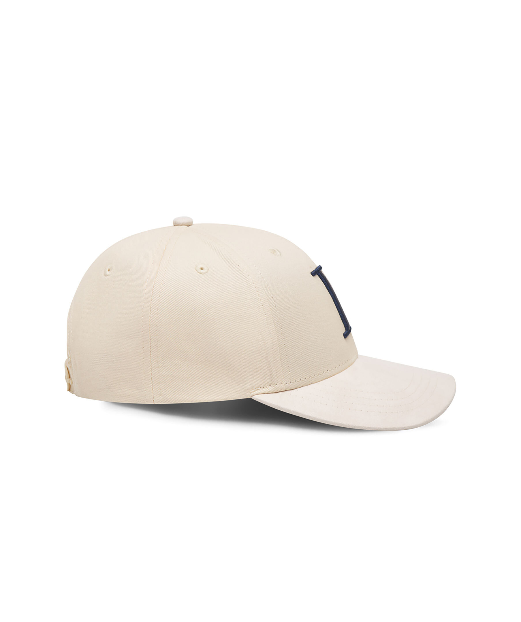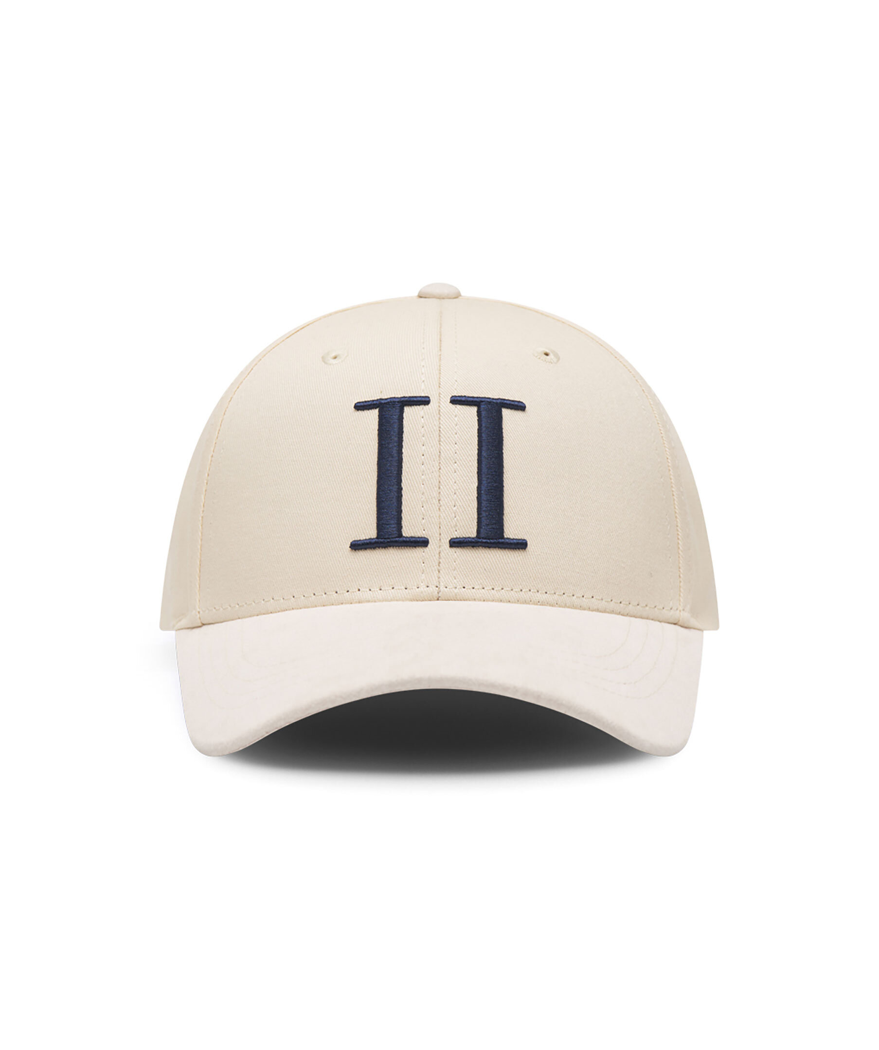 Sandfärgad keps från Les Deux i bomullsmix. Stor broderad II-logotyp i mörkblått på framsidan. Broderad logotyp på kepsens vänstra sida. Går att justera baktill med spänne i plast.