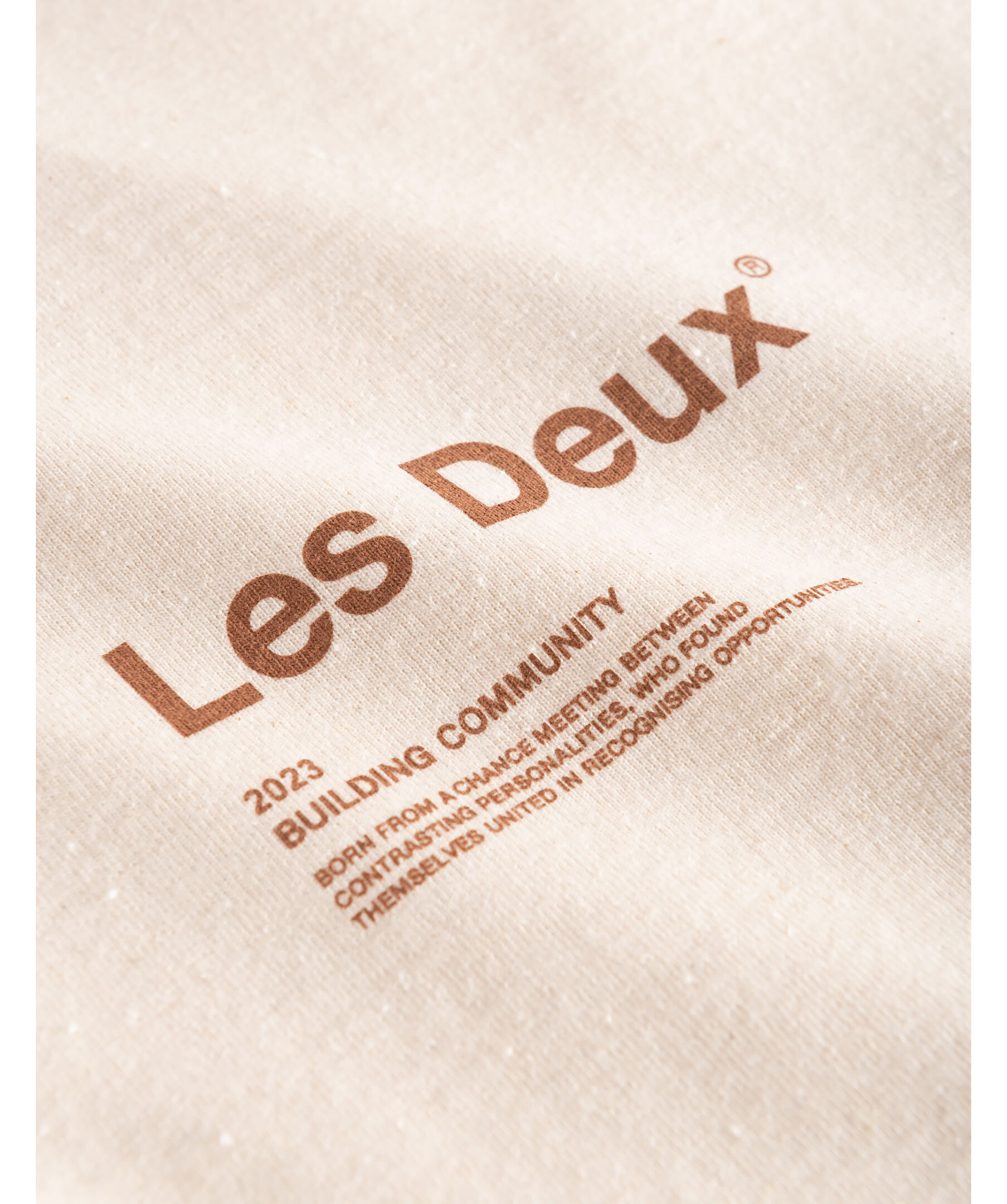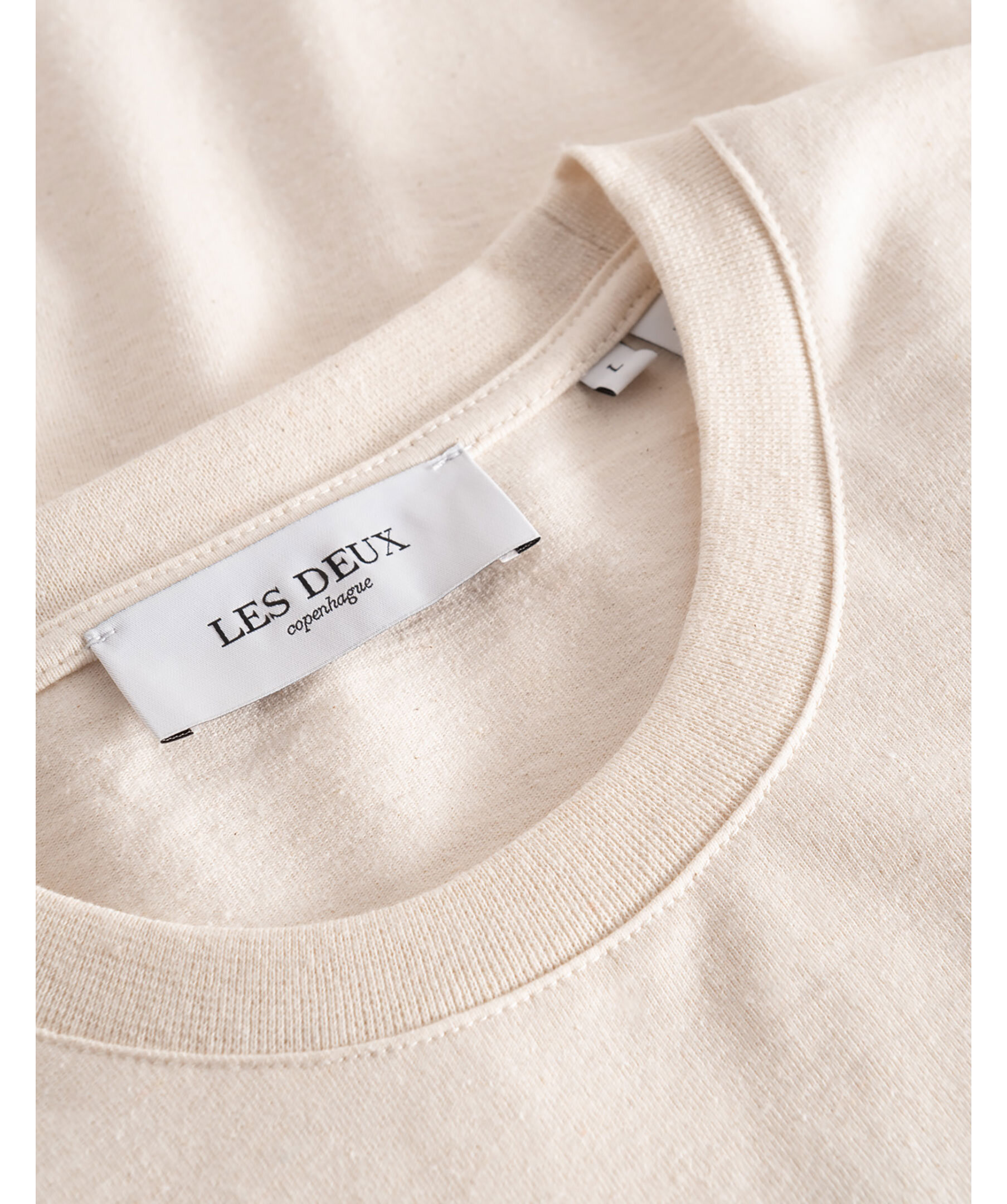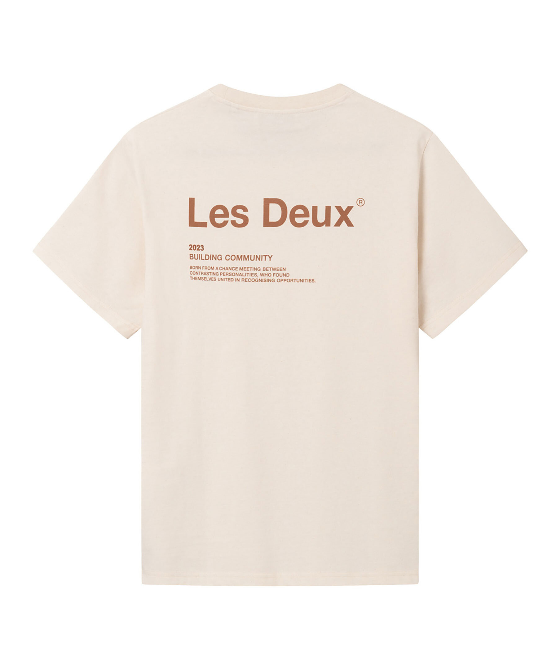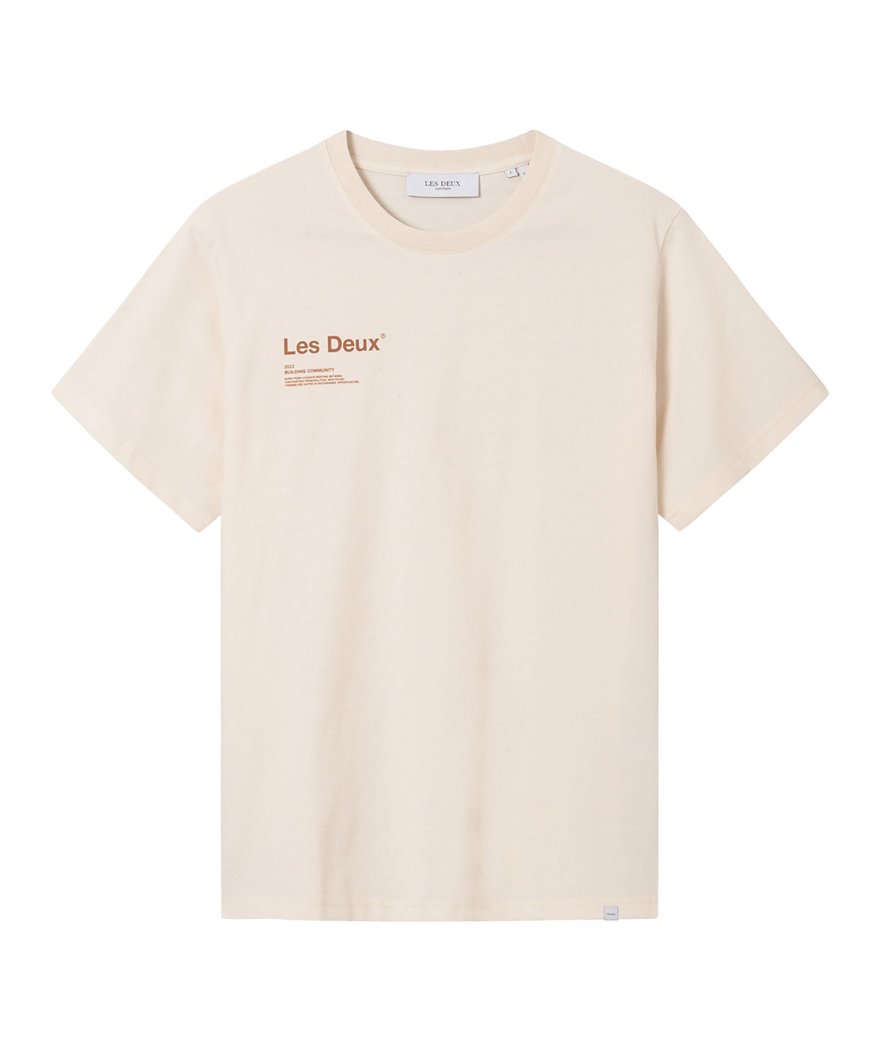 Krämfärgad t-shirt, tillverkad helt i bomull från Les Deux. Rundad halsringnig och tryckt logotyp både på fram- och baksidan i en kontrastfull färg.