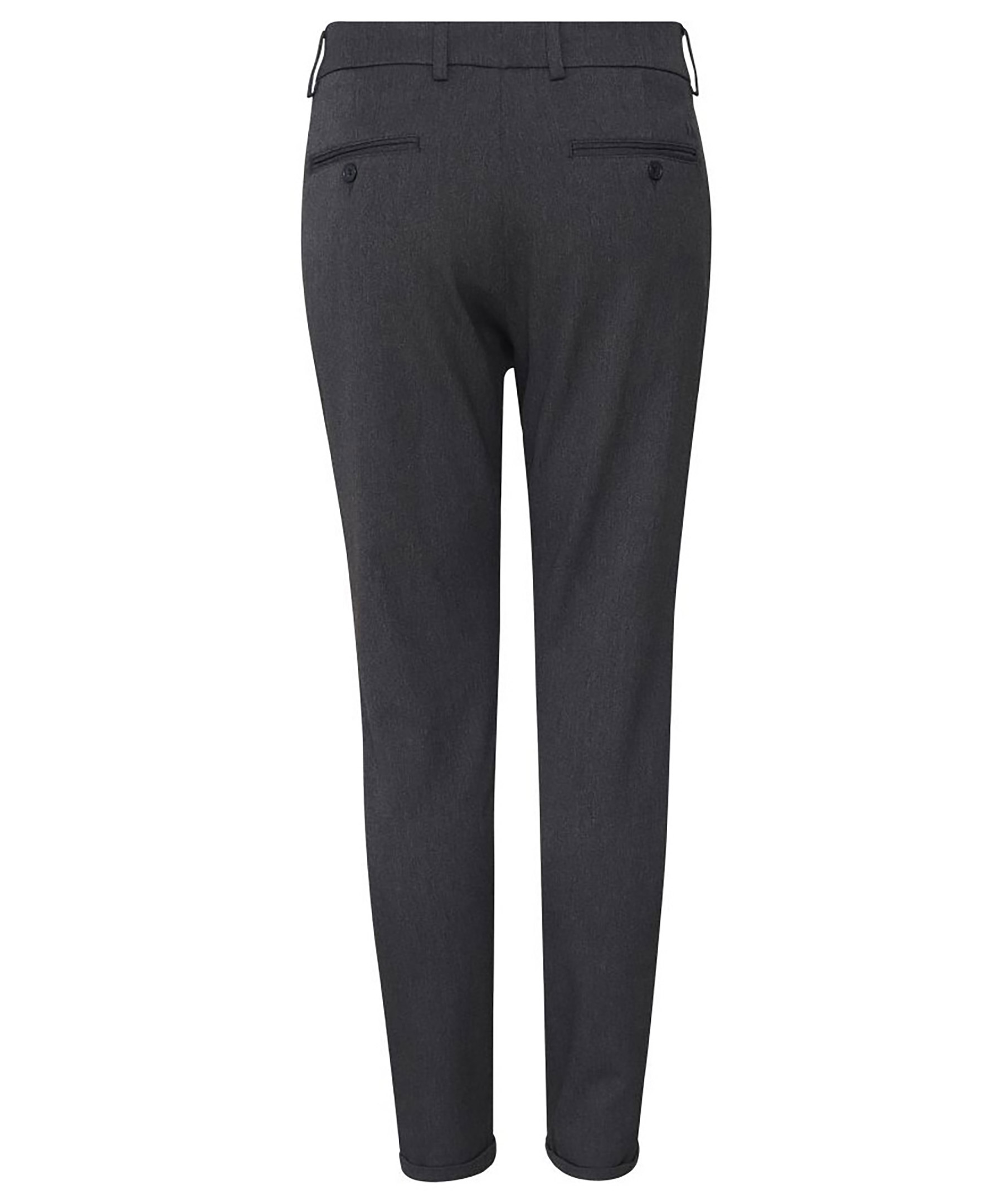 Mörkgrå kostymbyxor i slim-fit modell från Les Deux. Byxorna är lätt melerade och har en skön stretch, uppvikta vid fotkanten, stängs med två knappar och dragkedja vid gylfen. Två öppna sidofickor och två bakfickor med knapp.