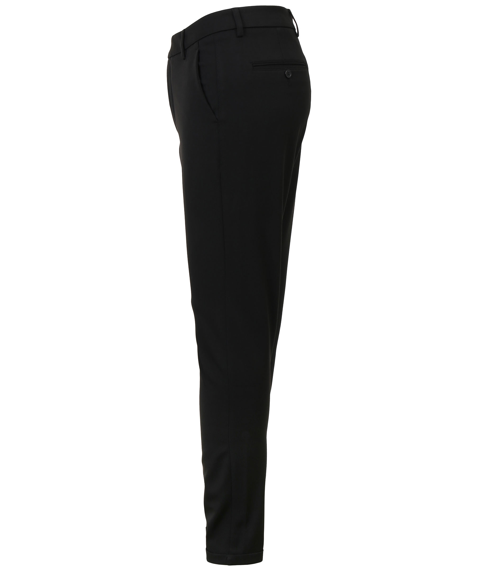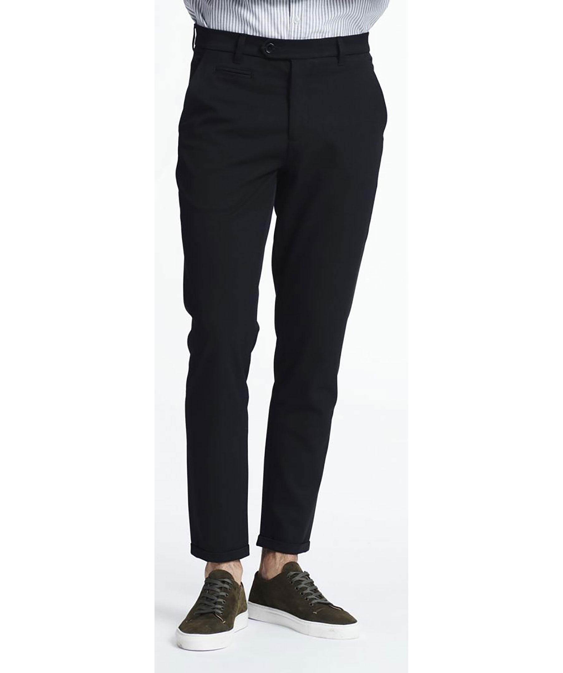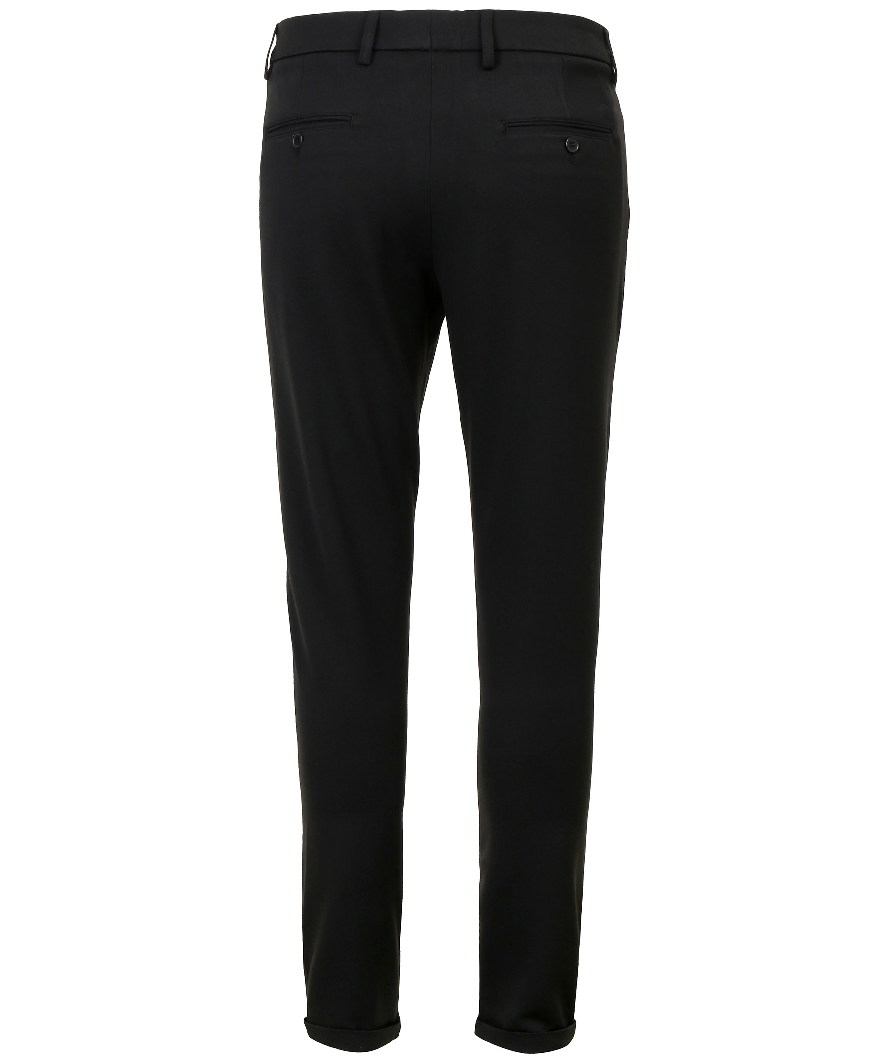 Svarta slim-fit byxor från Les Deux. Stretchmaterial och en smal fotöppning med uppvikt kant. Två framfickor samt två bakfickor med knapp. Gylf med dragkedja och knappar.
