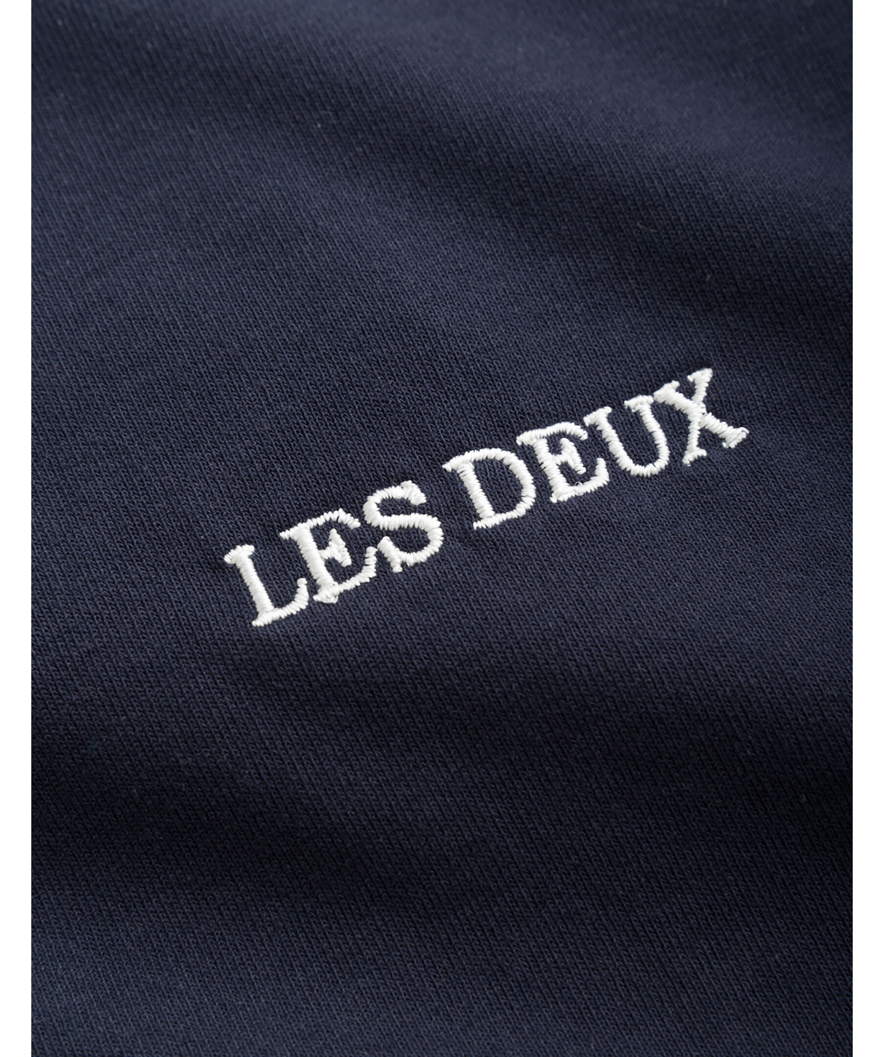 Marinblå t-shirt från Les Deux. T-shirten har en avslappnad passform och är gjord i en blandning av återvunnet polyester och bomull. Liten broderad logotyp på bröstet.