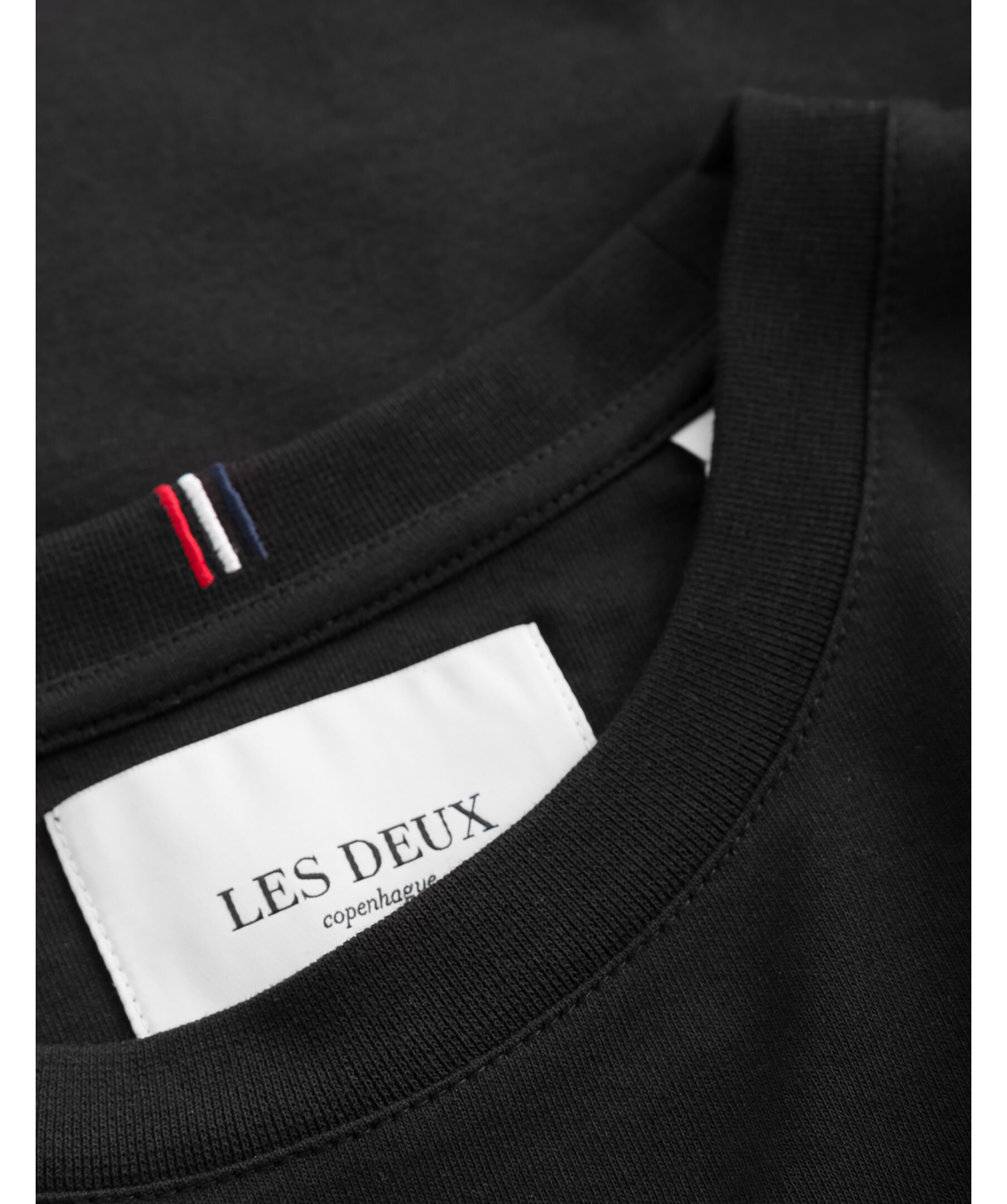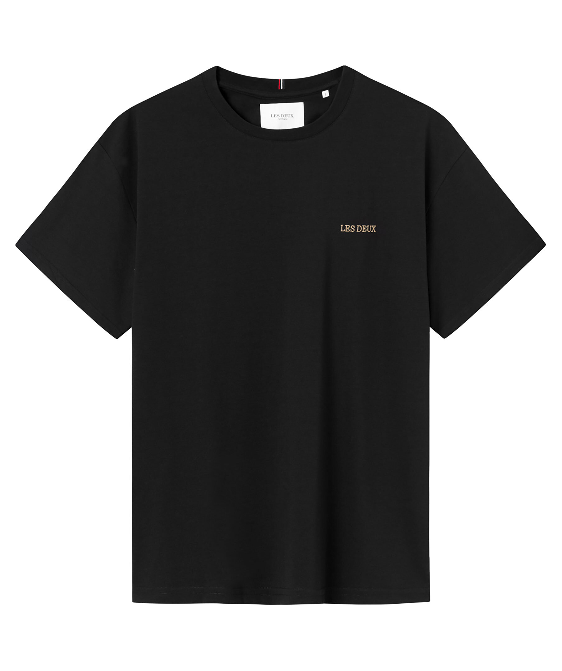 Svart t-shirt från Les Deux. Tröjan har en avslappnad passform och broderad logga på bröstet, rundad hals. Tillverkad i bomullsmix.