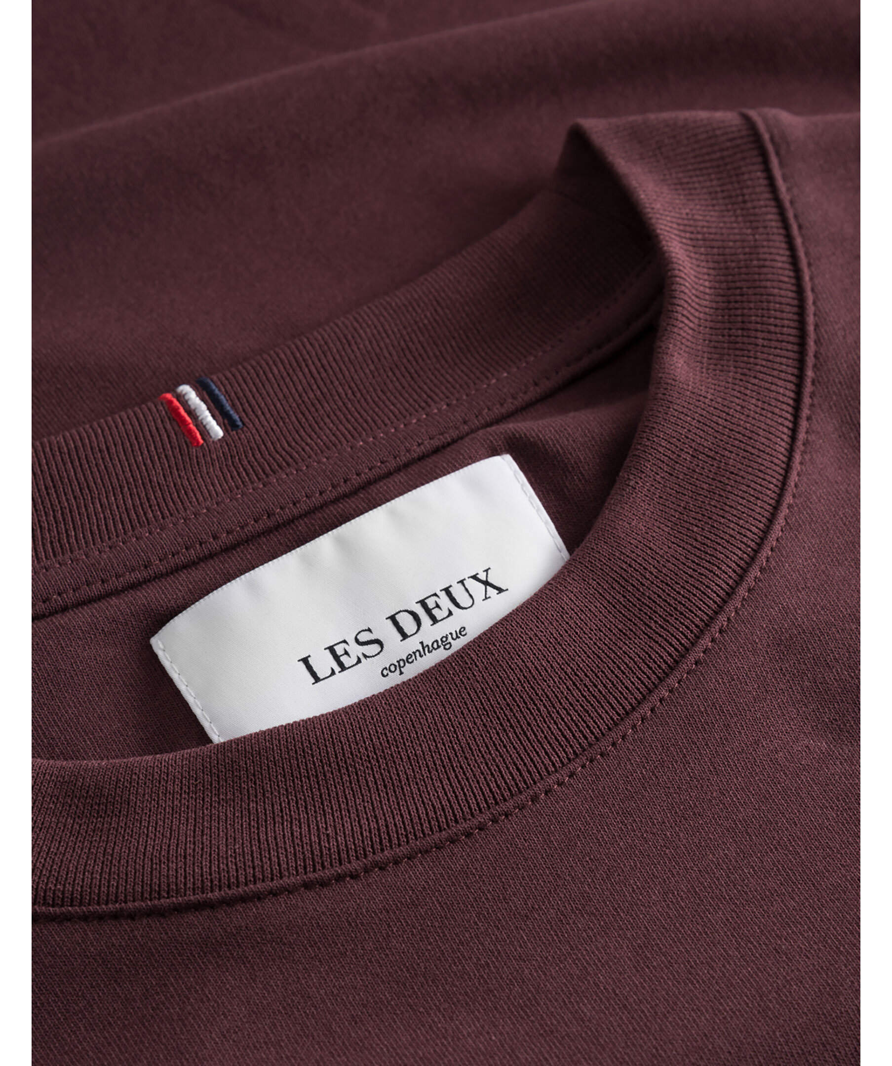 Vinröd t-shirt från Les Deux. Tröjan har en avslappnad passform och broderad logga på bröstet, rundad hals. Tillverkad i bomullsmix.