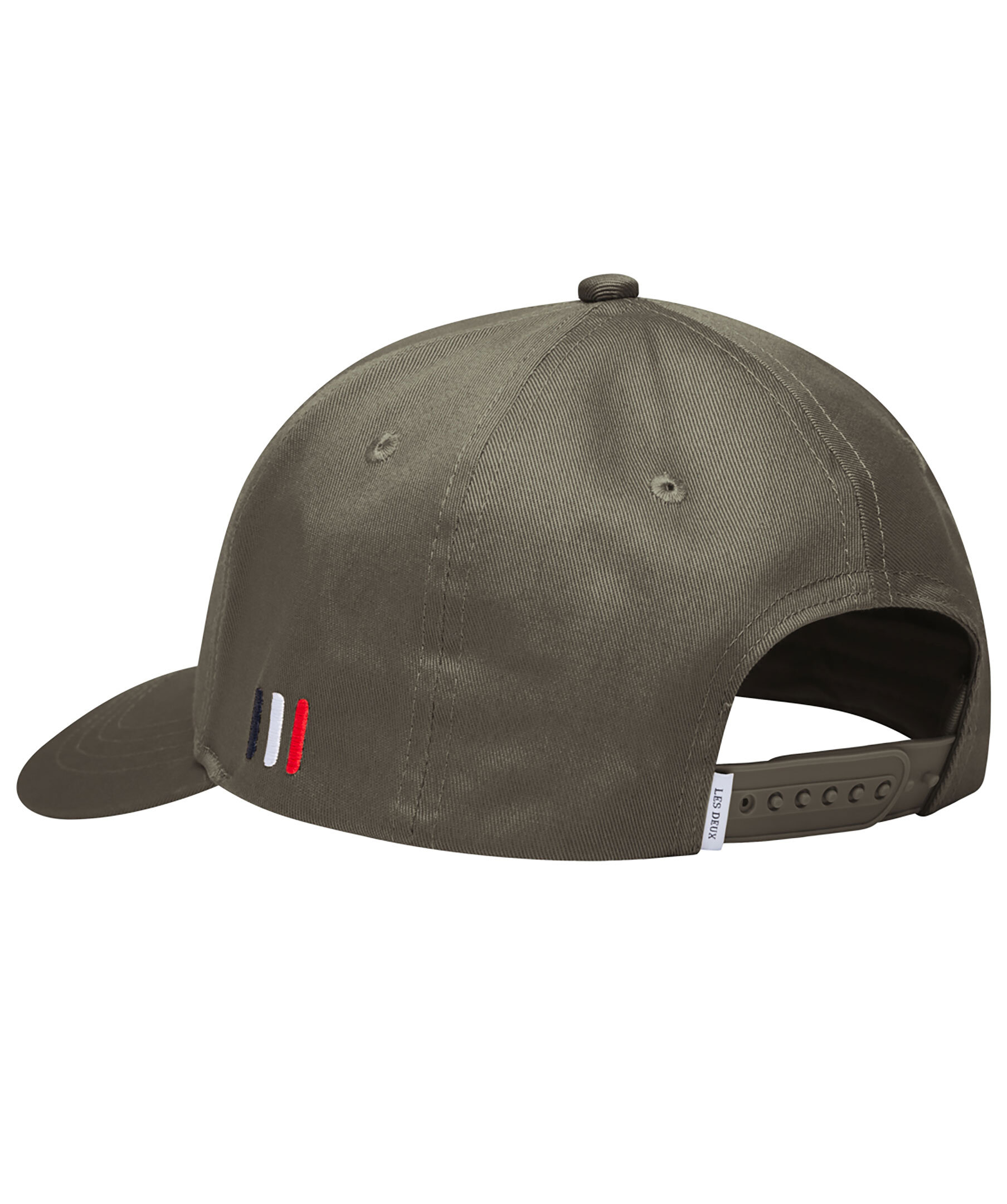 Grön keps från Les Deux med broderad logotyp i grön på framsidan. Justerbart spänne bak och tre broderade streck i vitt, rött och blått på den vänstra sidan. Tillverkad i 100% bomull.