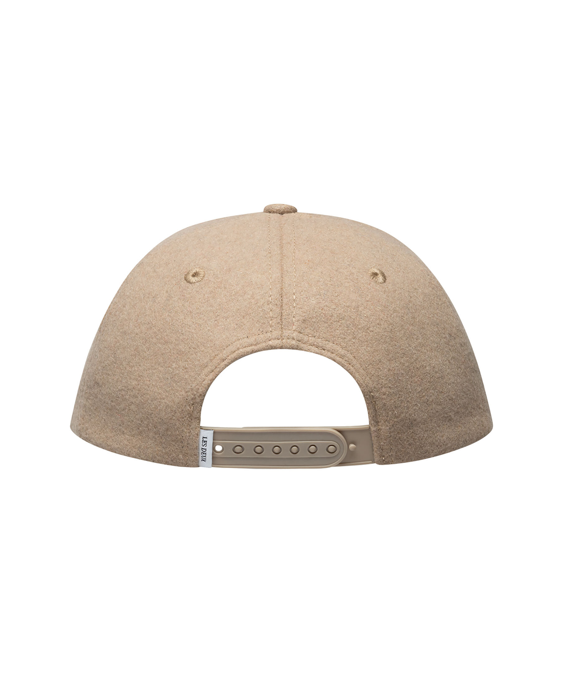 Beige keps i ull från Les Deux. Ljusbeige broderad logotyp på framsidan och reglerbart spänne baktill.