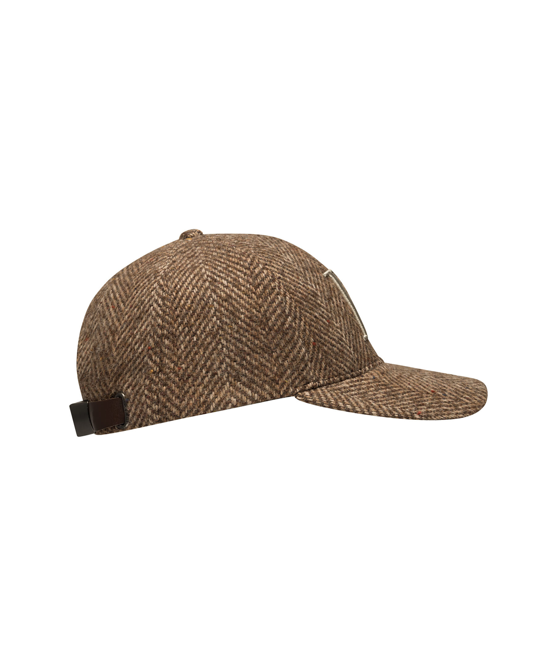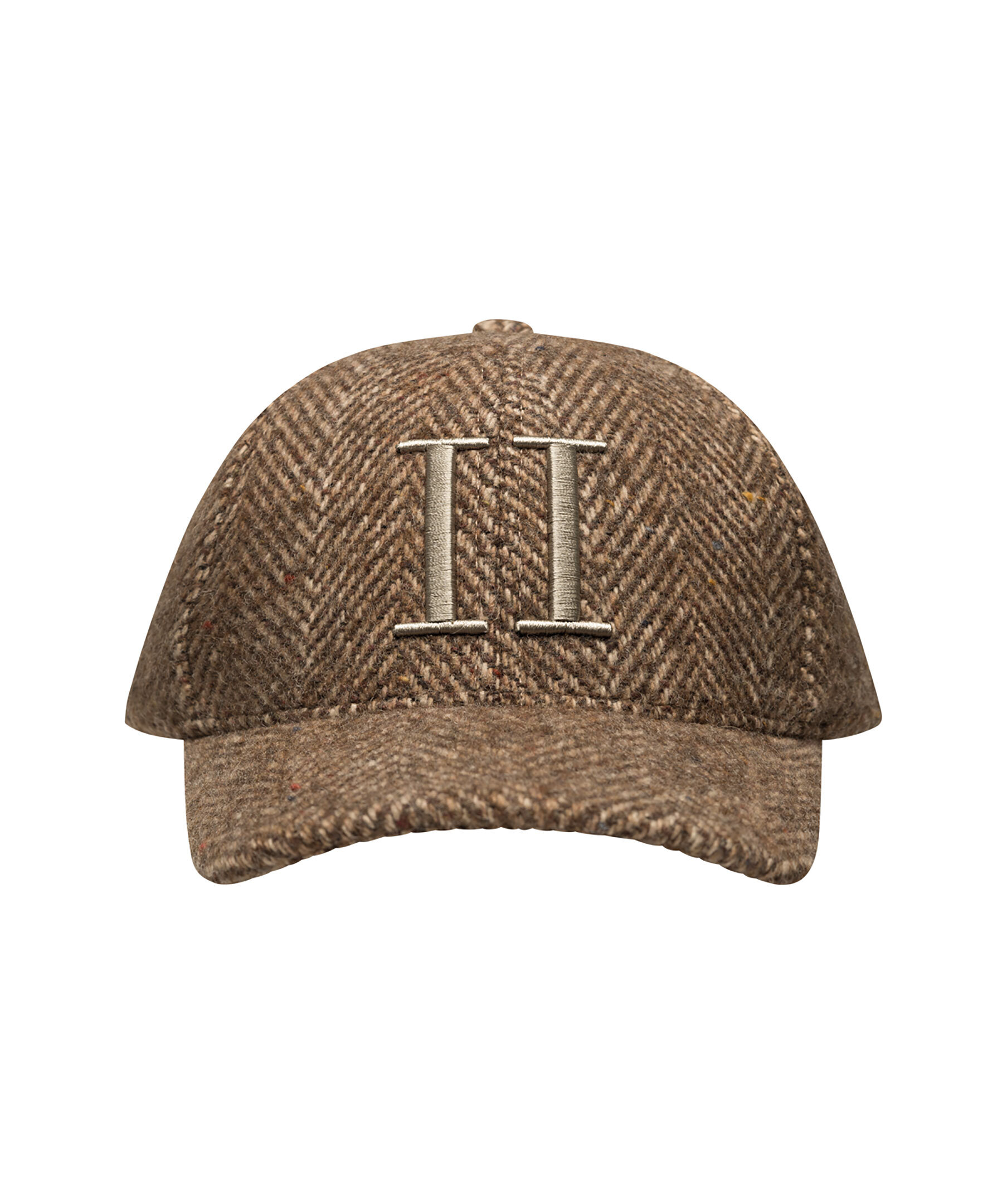 Brun och beige keps med fiskbensmönster från Les Deux. Kepsen har justerbart spänne baktill och broderad logotyp på framsidan. Tillverkad i en ullblandning.