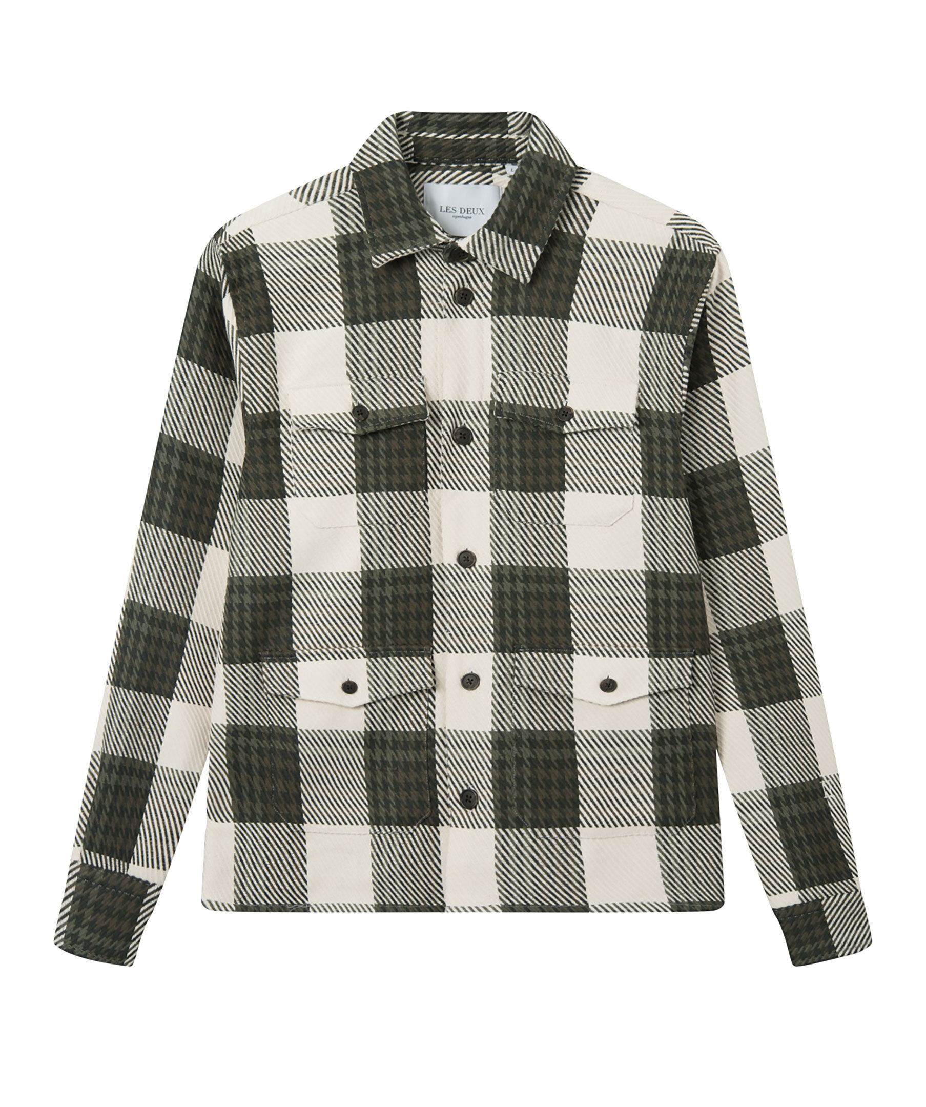 Mörkgrön,vit rutig overshirt från Les Deux. Stängs framtill med knappar. Fyra fickor framtill som stängs med lock och knappar. Enkla manschetter. Tillverkad i 100% bomull. Designad i en avslappnad passform.