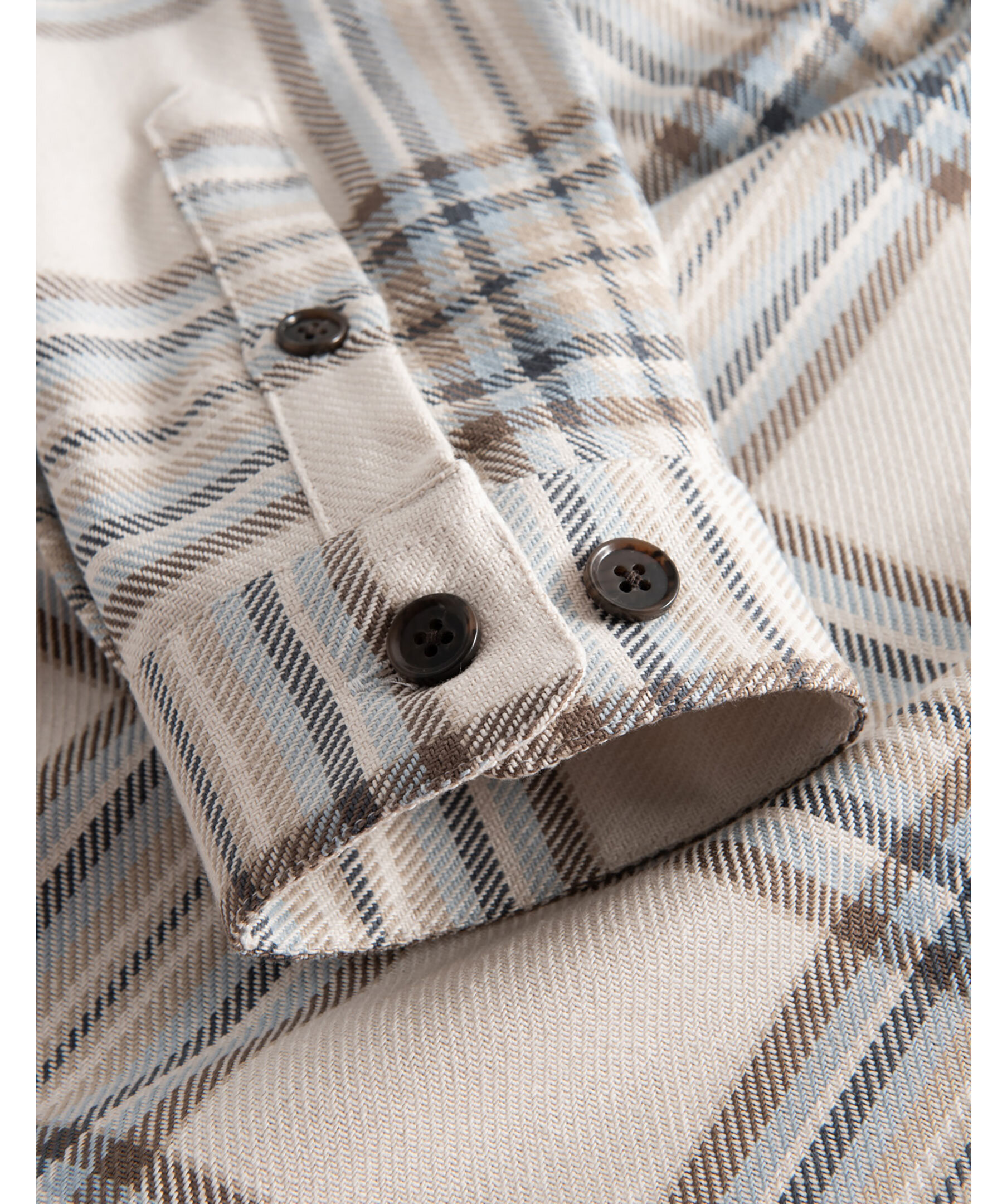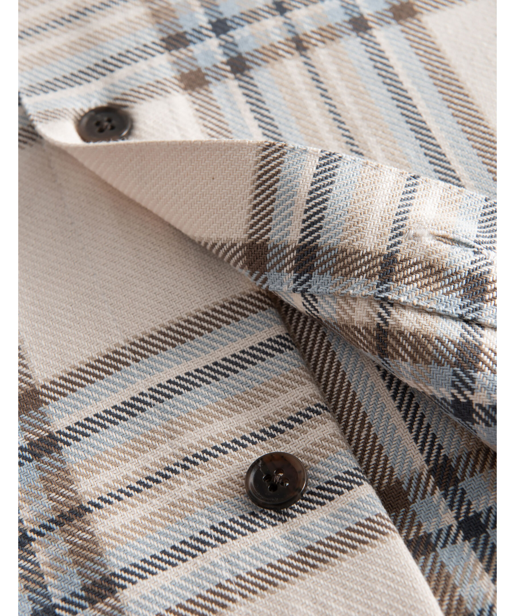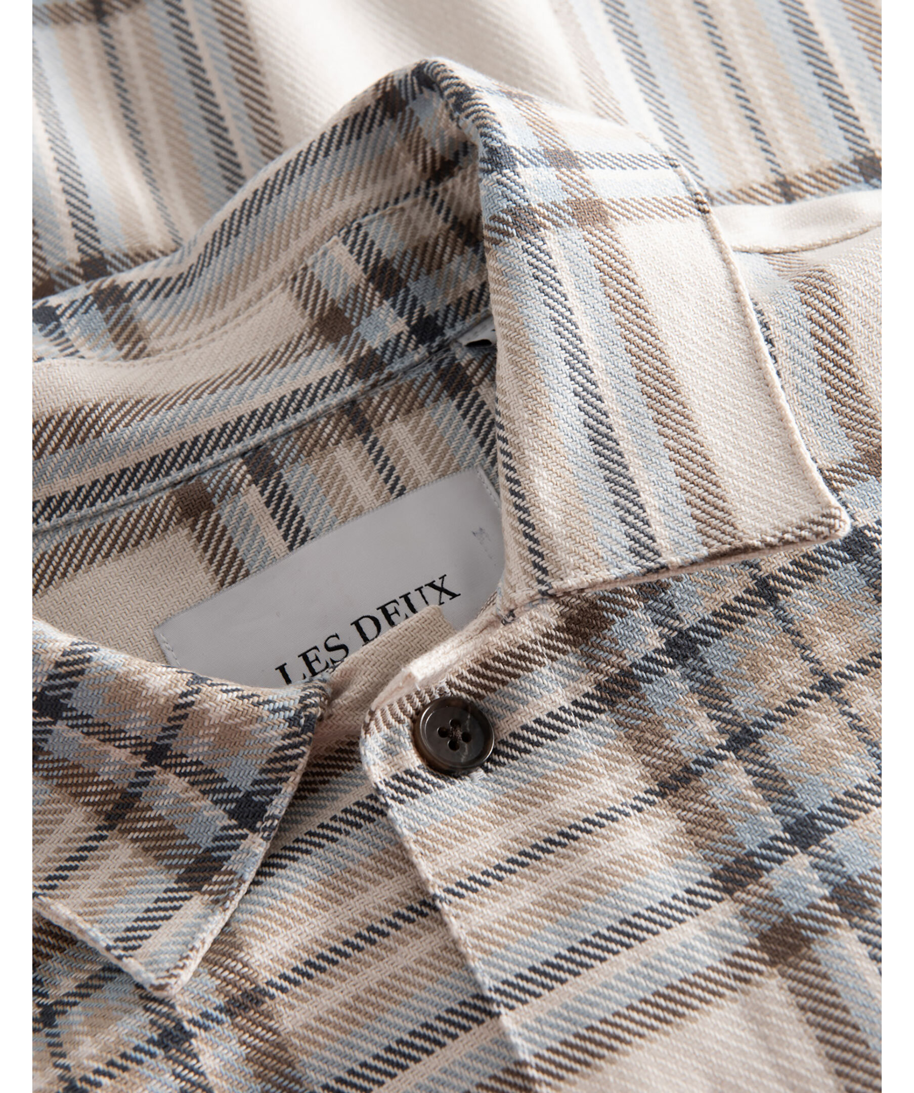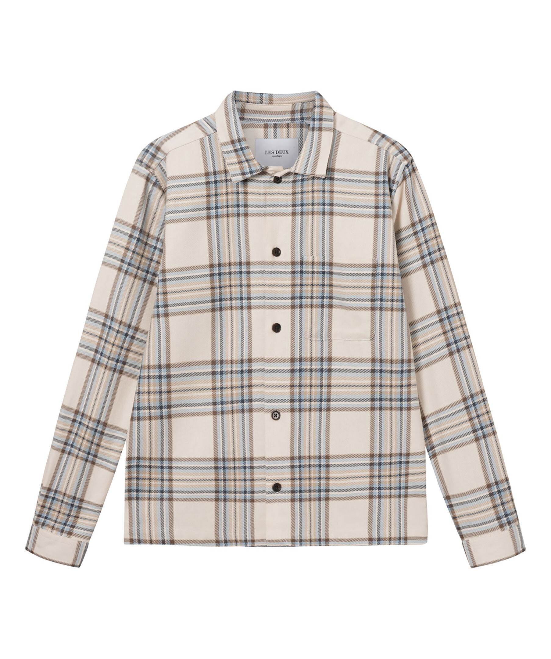 Rutig overshirt i blåa och beiga toner från Les Deux. Skjortan har en bröstficka och är gjord i kraftig bomullstwill. Använd som vanlig skjorta eller som en klassisk overshirt.