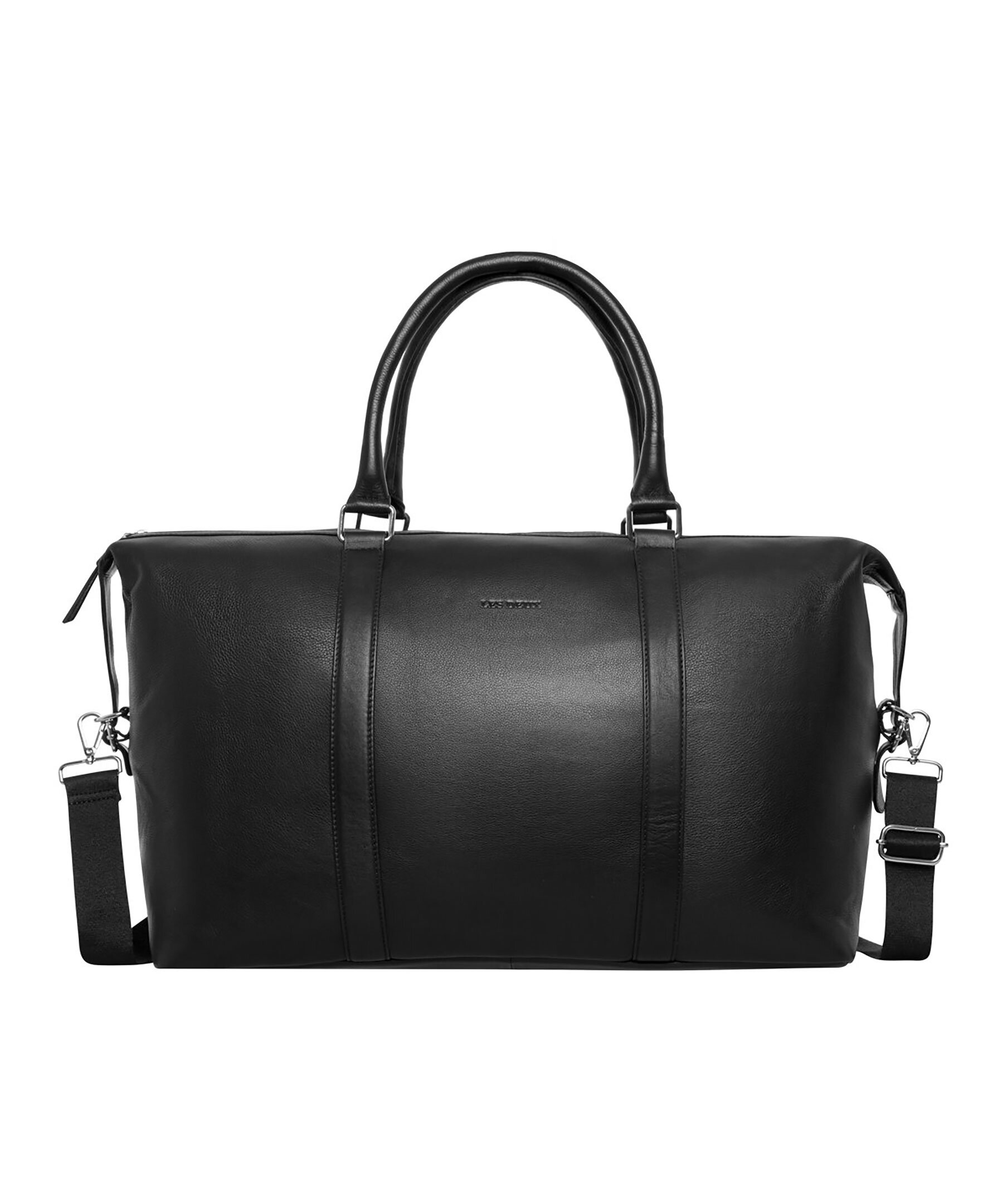 Svart weekend bag i läder från Les Deux. Väskans huvudfack stängs med tvåvägsdragkedja. Ett innerfack med dragkedja. Stansad logotyp på väskans framsida. Handtag med höjden 19 cm.