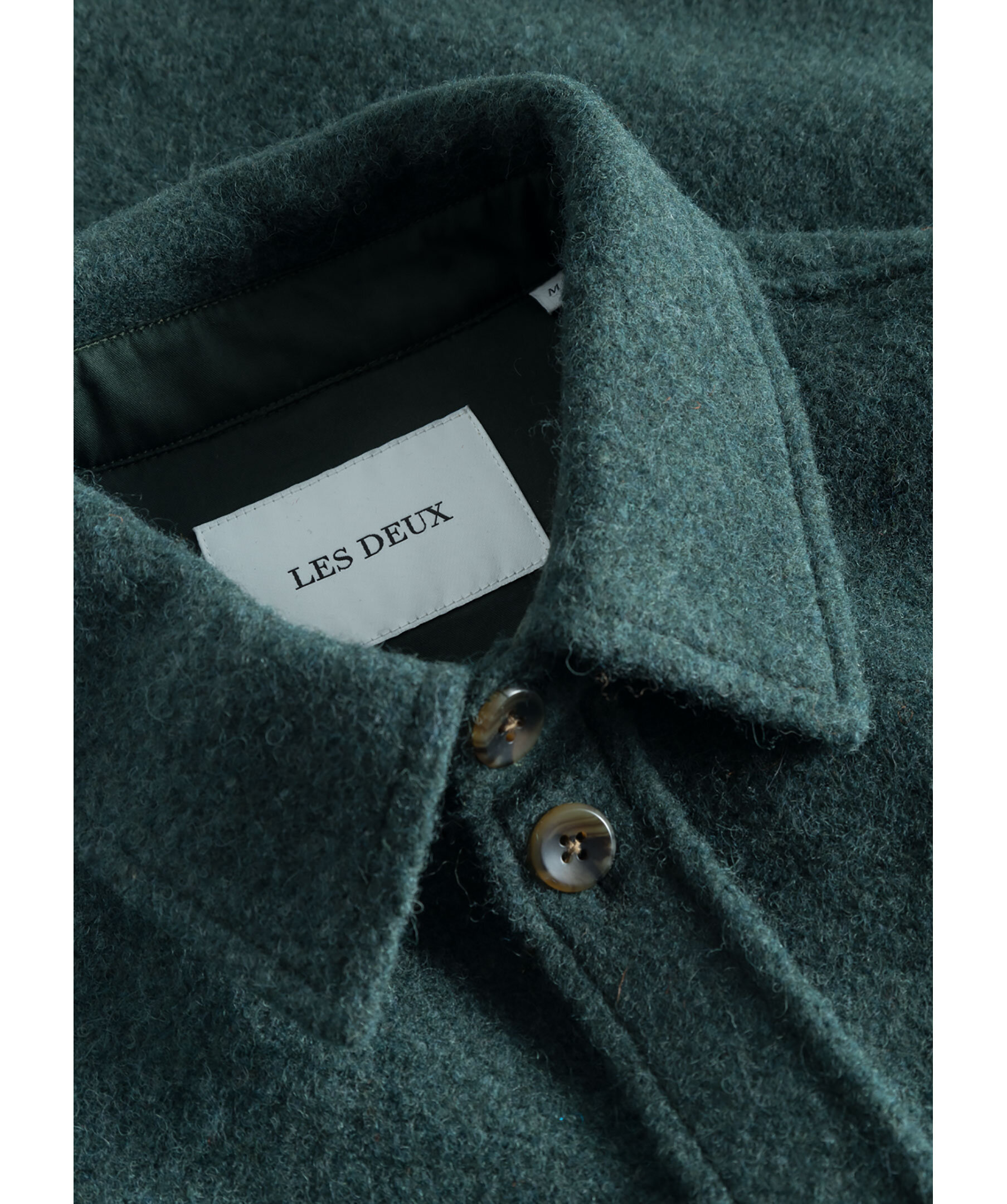Skogsgrön overshirt från Les Deux. Overshirten stängs med knappar framtill och har två bröstfickor med lock och knapp. Tillverkad i en ullblandning.
