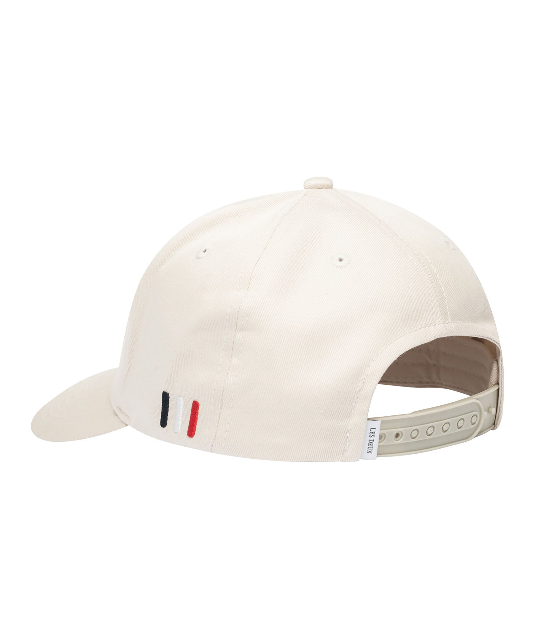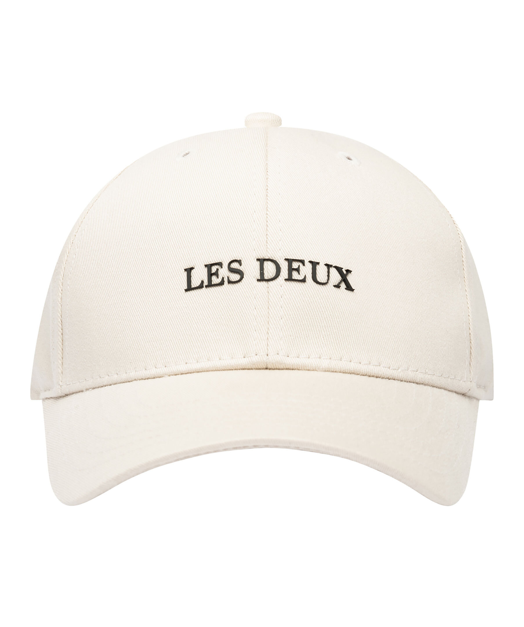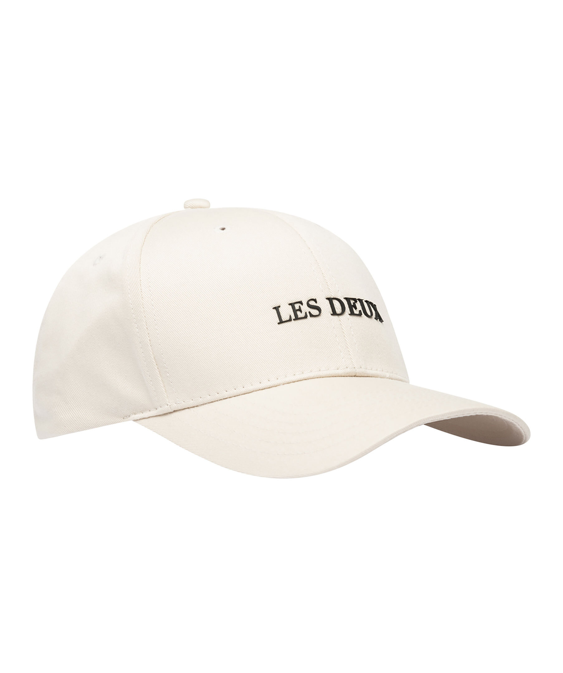 Beige keps från Les Deux. Gummerad logotyp i svart på framsidan. Går att justera baktill med spänne. Broderad logotyp på kepsens sida.