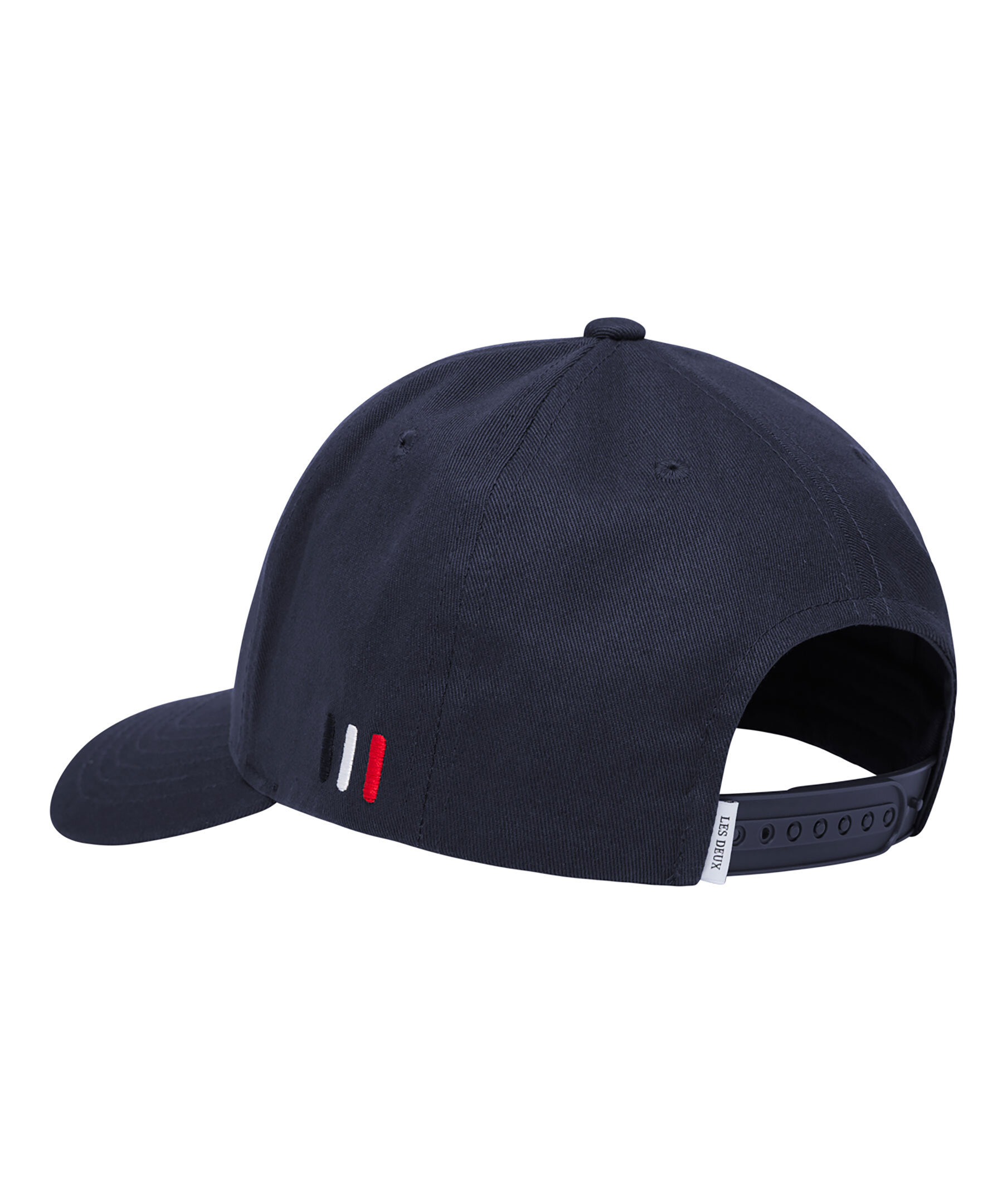 Mörkblå keps från Les Deux. Gummerad logotyp i svart på framsidan. Går att justera baktill med spänne. Broderad logotyp på kepsens sida.