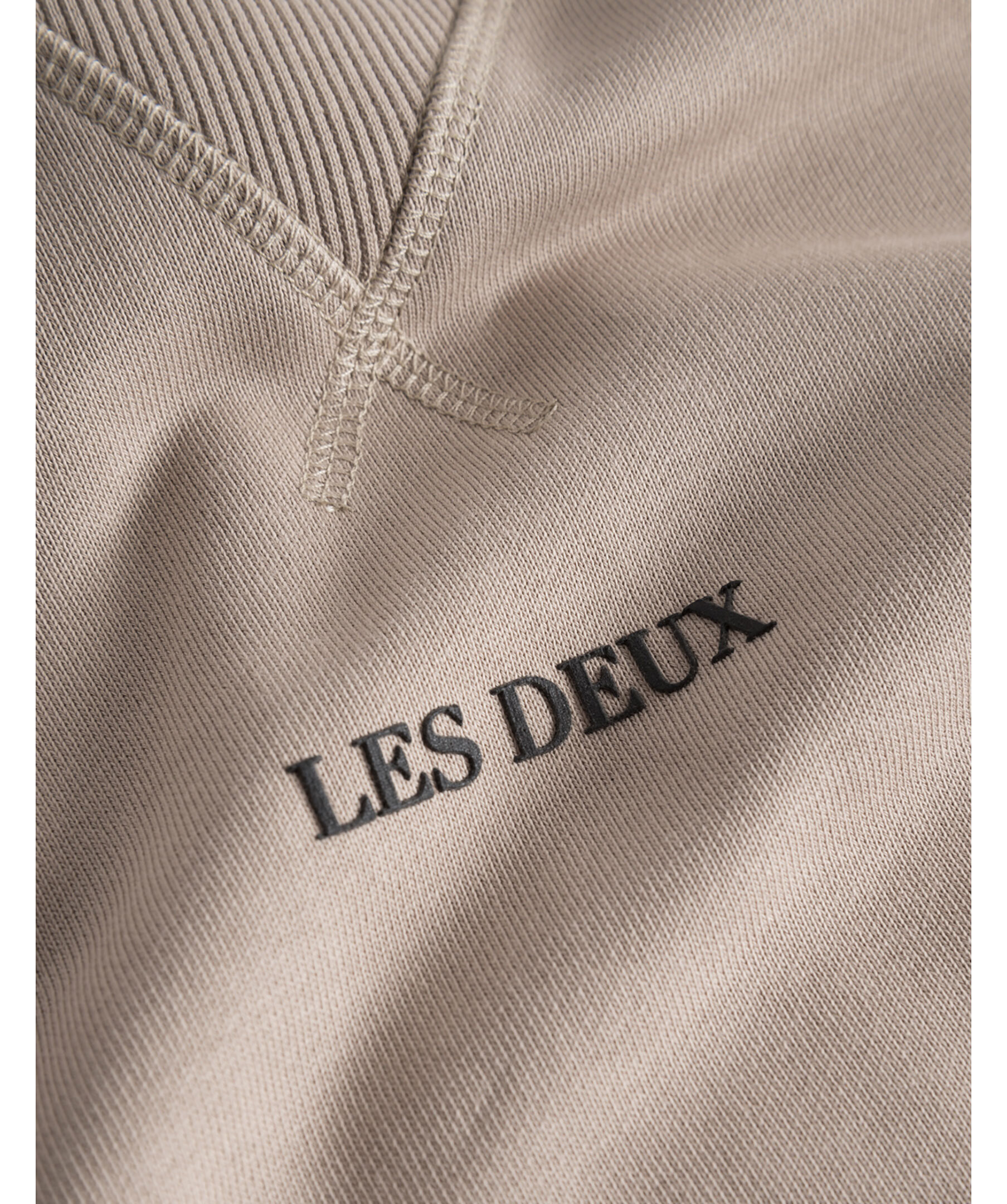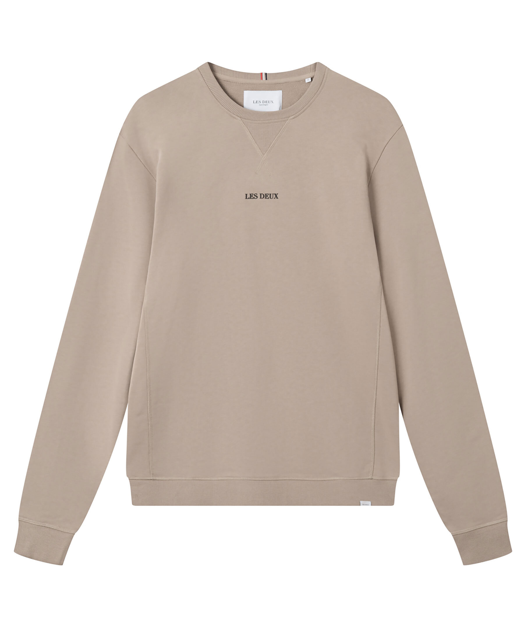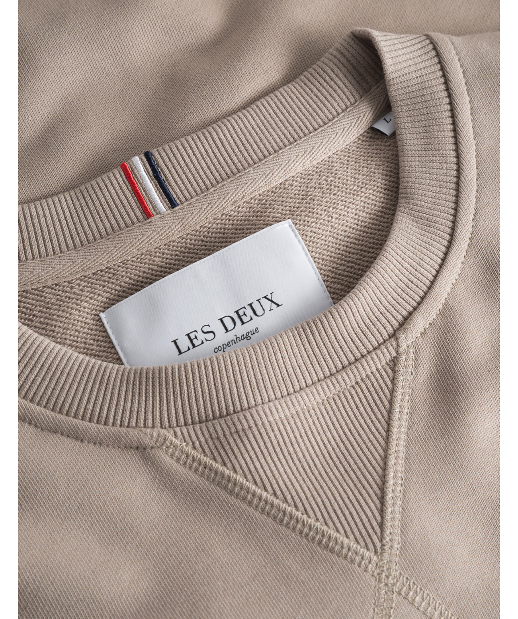 Beige sweatshirt i slim fit modell från Les Deux. Tröjan är gjord i 100% bomull och har en liten svart logga på bröstet. Ribbstickade muddar.