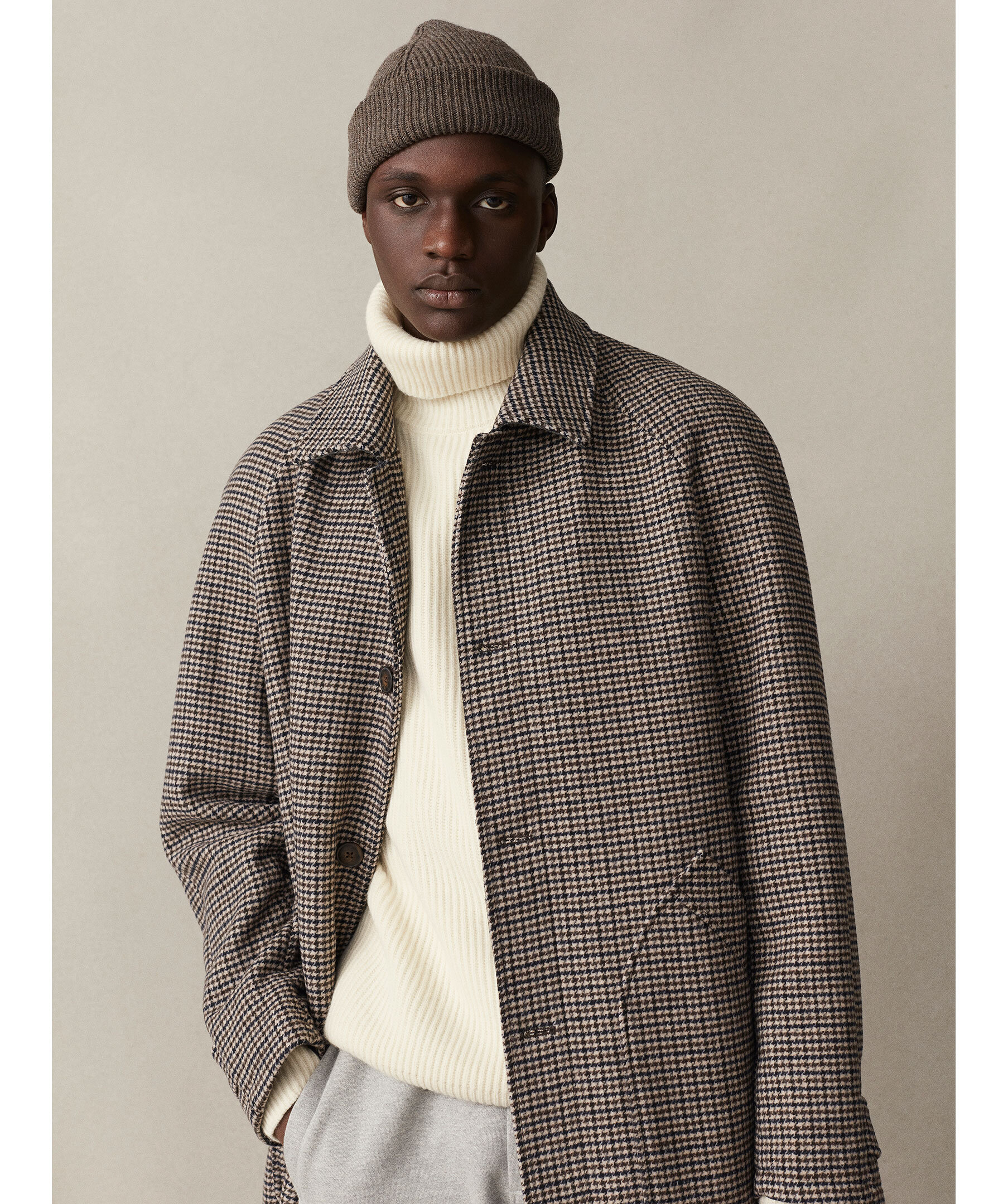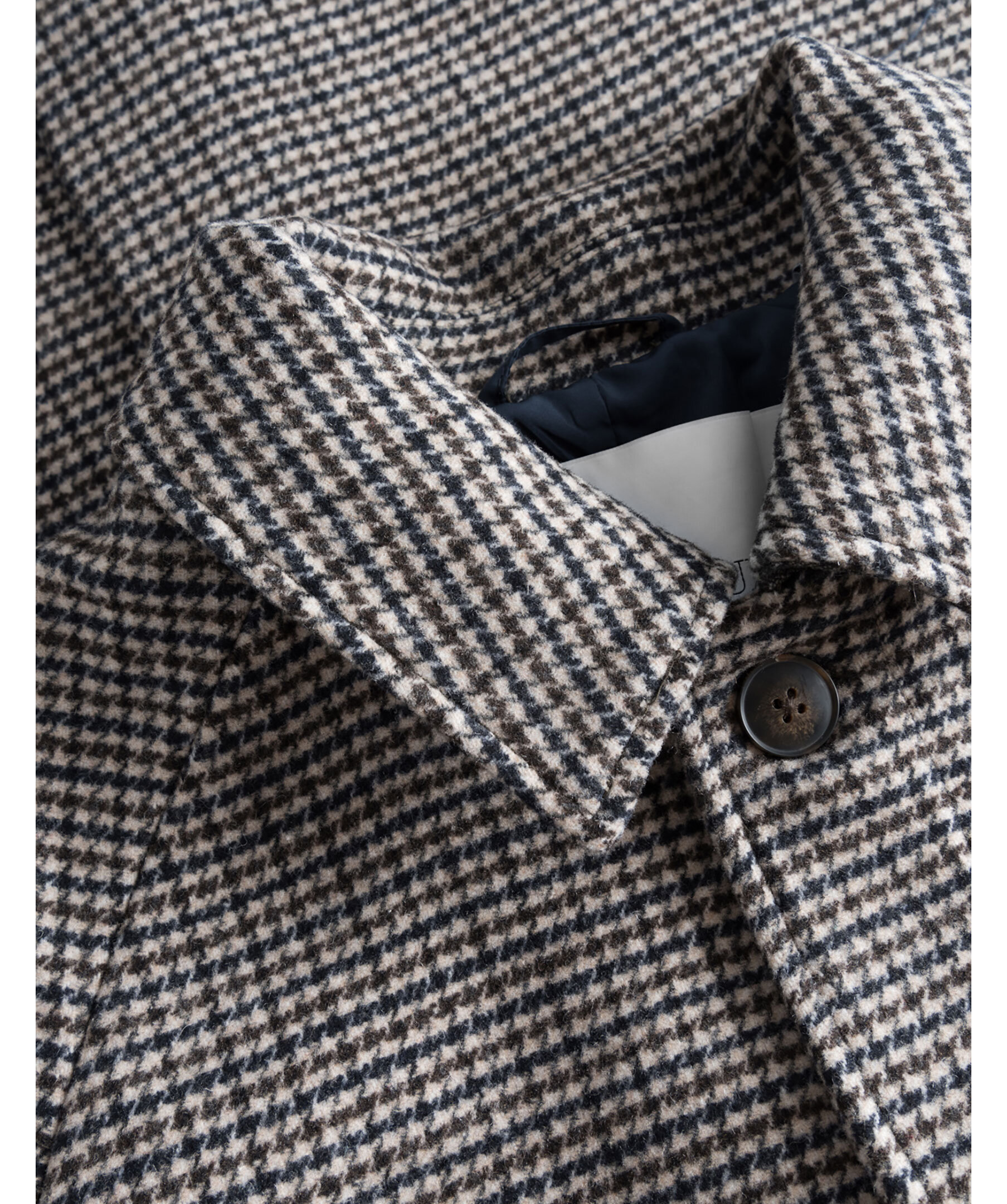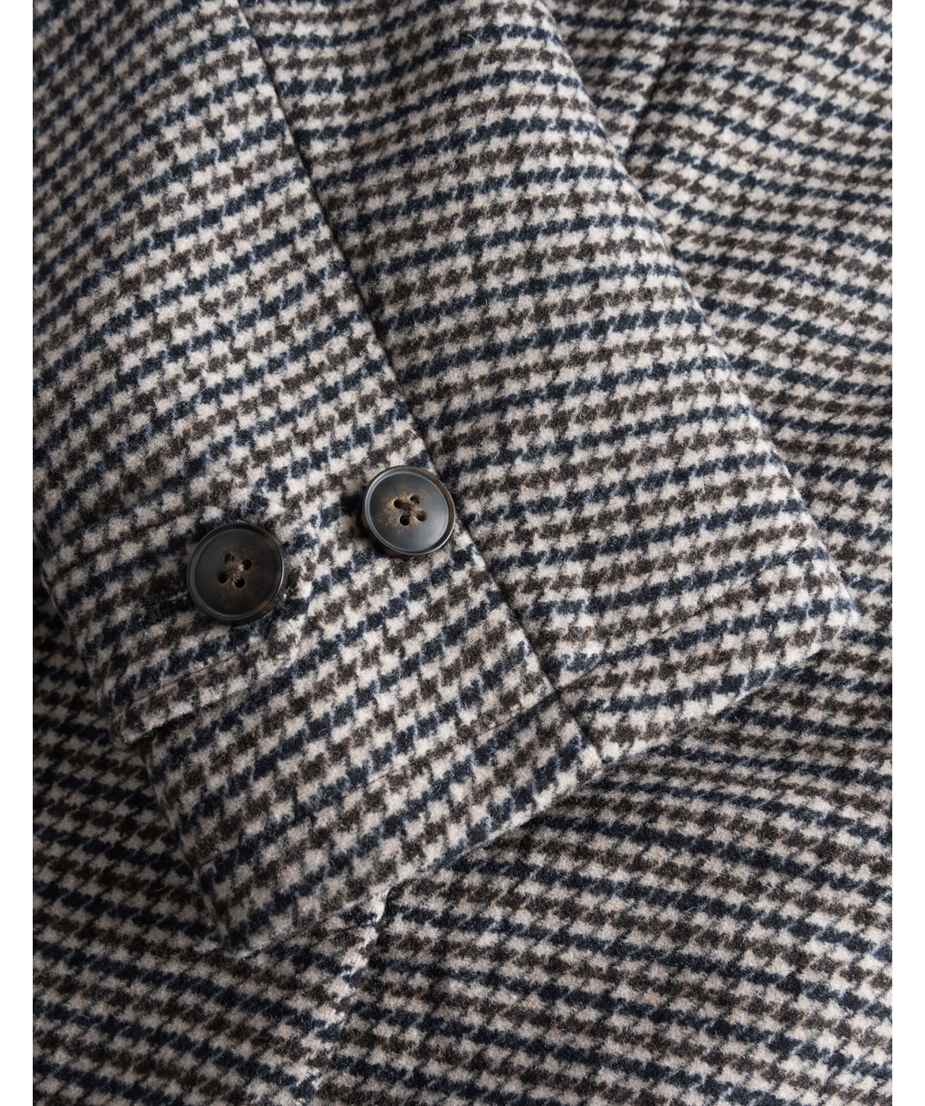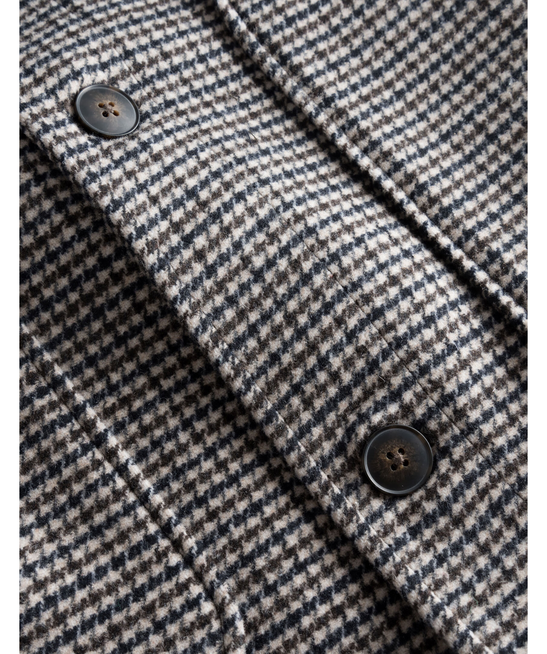 Beige, brun och mörkblå hundtandsmönstrad Rock från Les Deux. Enkelknäppt. Justerbara ärmslut. Två fickor framtill. Sprund baktill. Tillverkad i ullblandning.