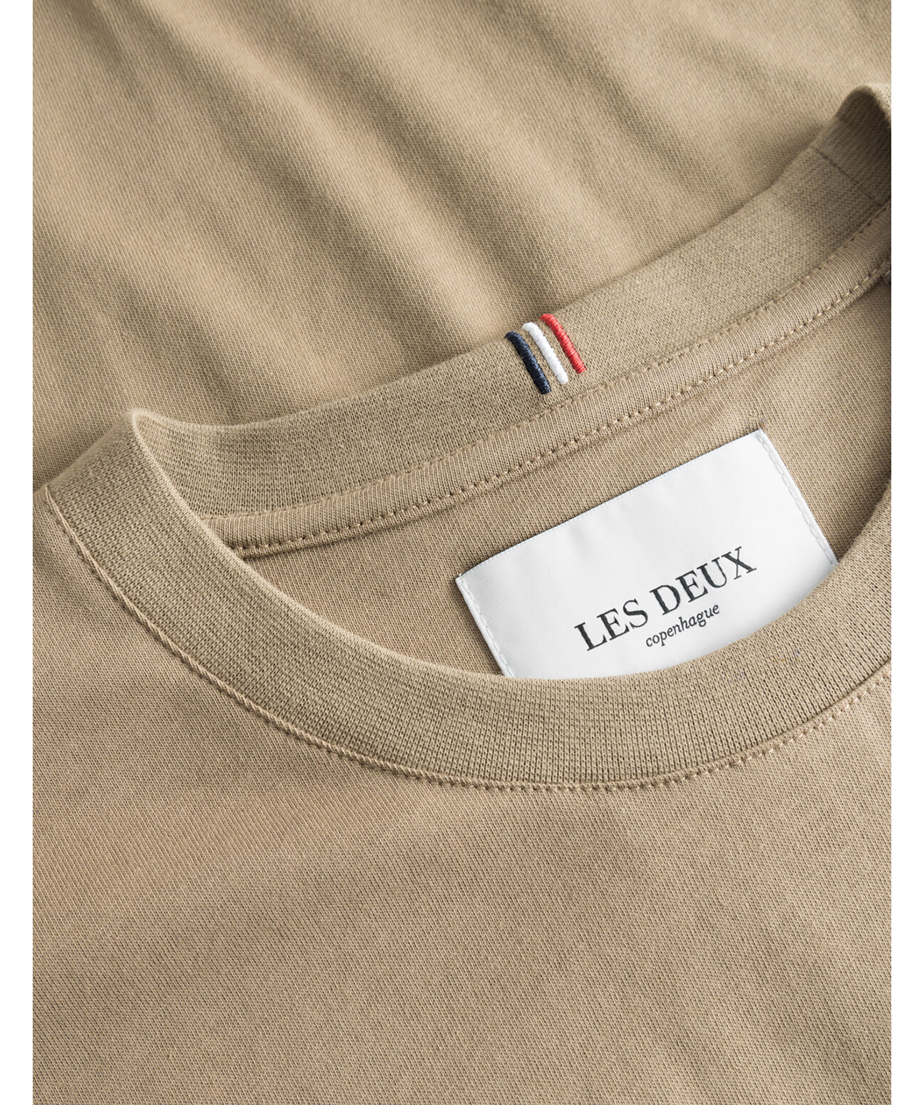 Ljusbrun t-shirt från Les Deux tillverkad i 100% bomull. Rundad halsringning med trikoloren broderad i nacken och litet Les Deux tryckt på bröstet.