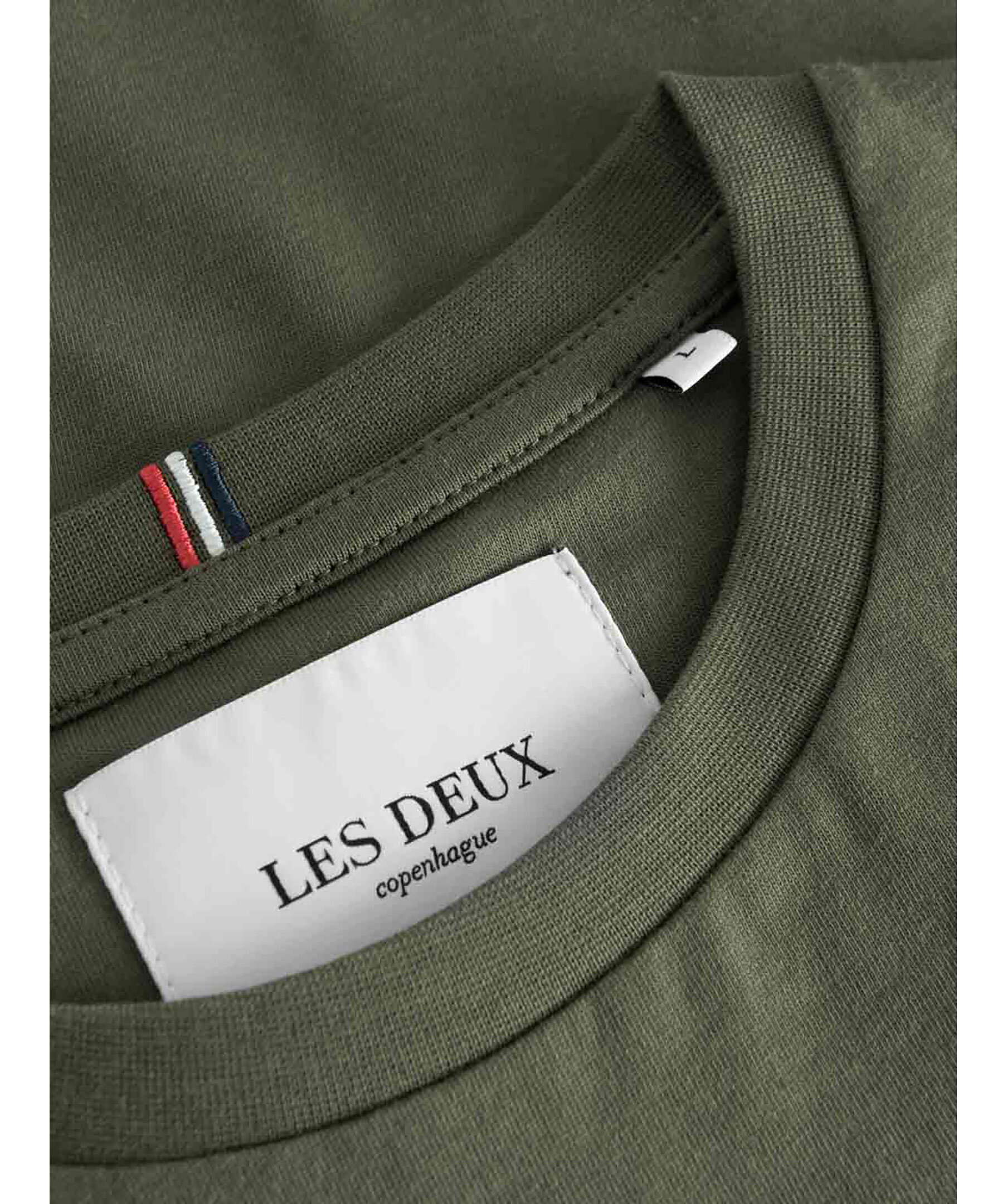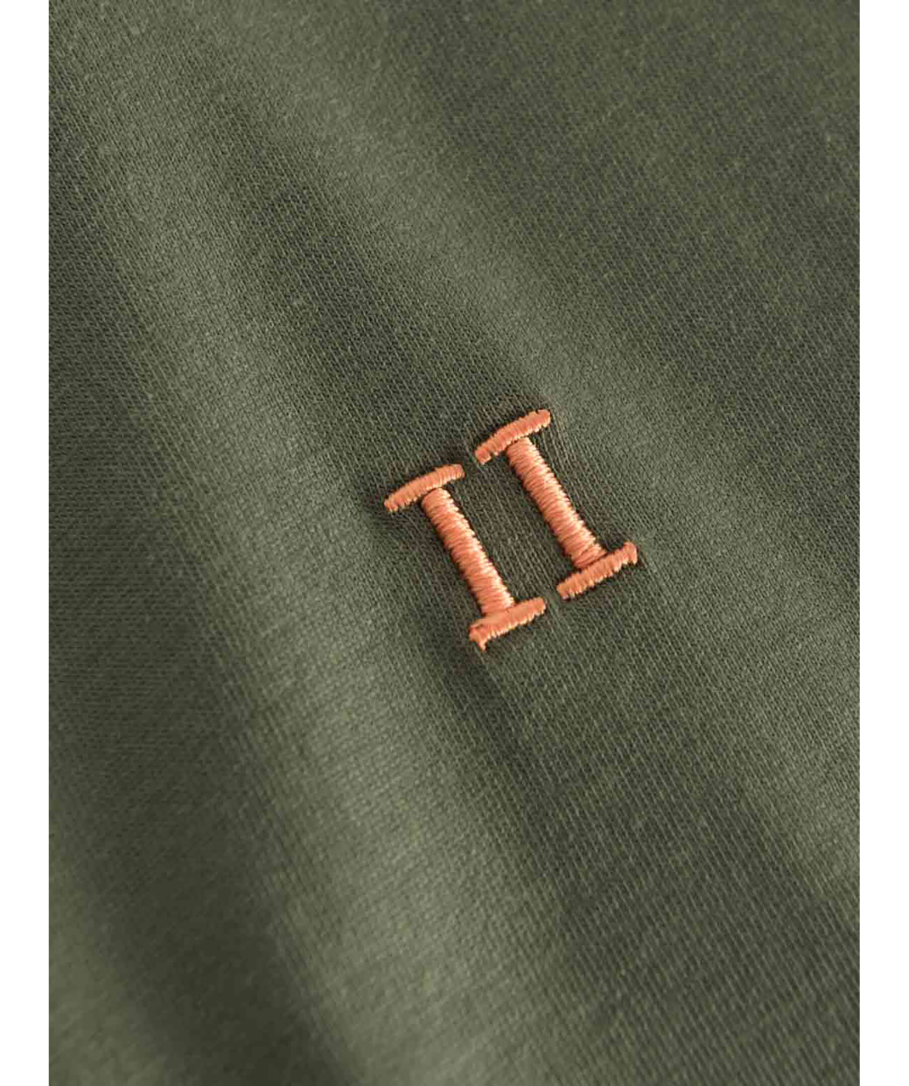 Skogsgrön melerad t-shirt från Les Deux. Rundad halsrining. Broderad logotyp i orange på vänster bröst. Tillverkad i 100% bomull. Uppvikta ärmar.