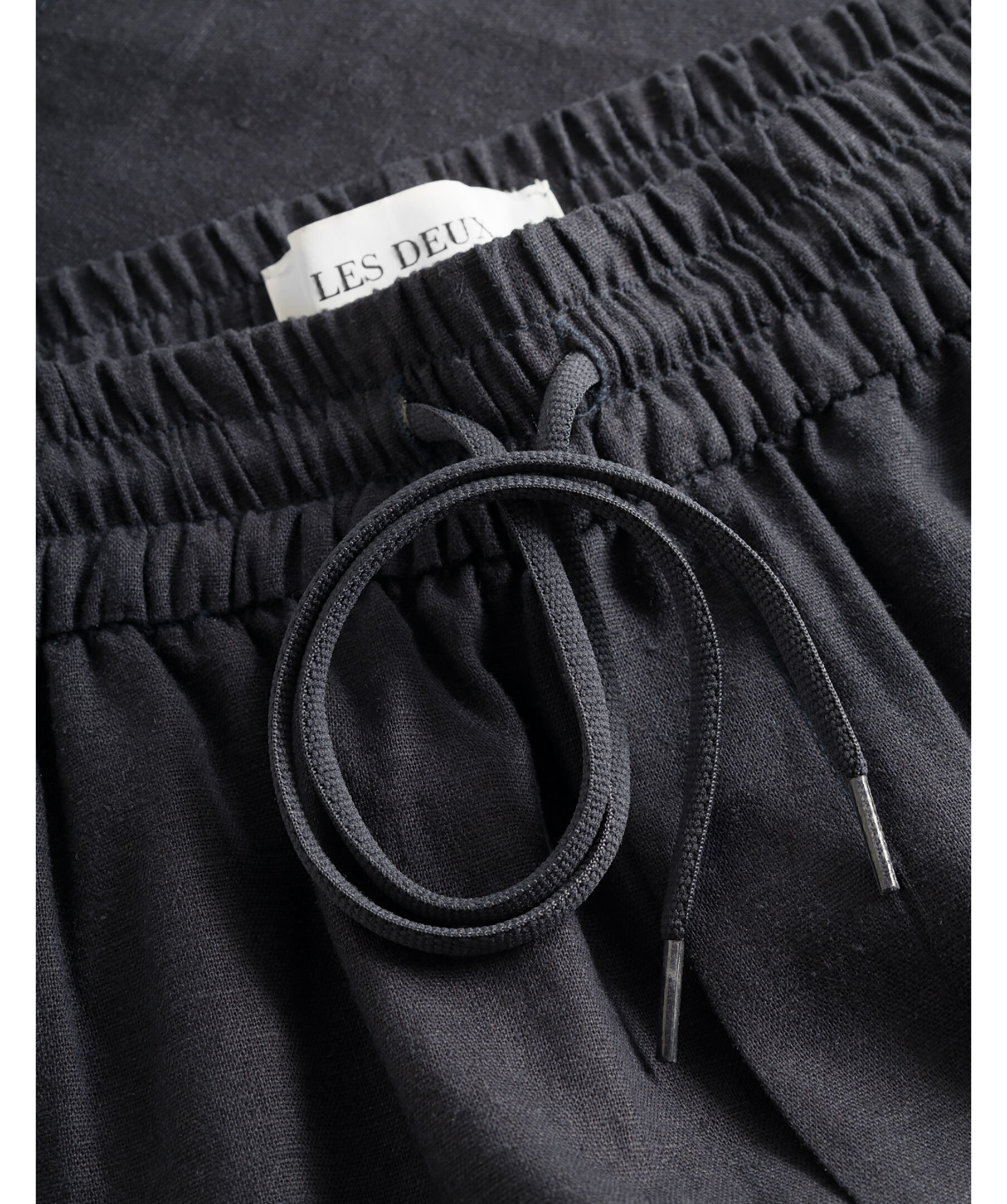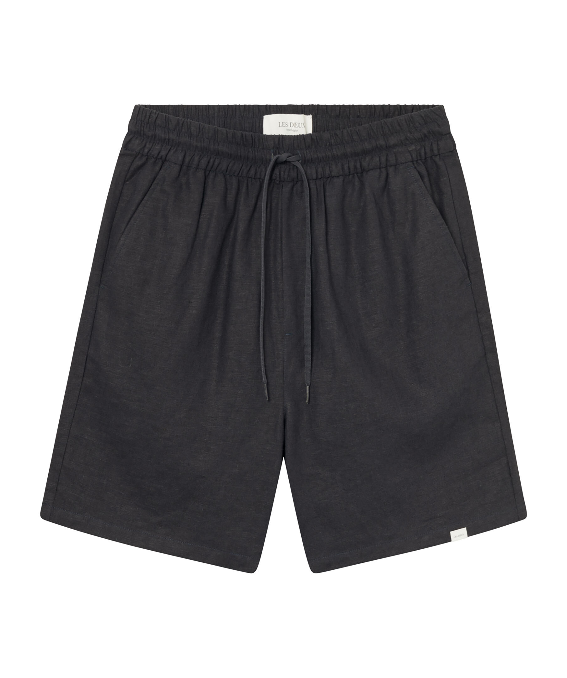 Mörkblåa linneshorts från Les Deux. Ultralätt och luftigt tyg som håller dig sval, elastisk dragsko i midjan för extra komfort, två sidfickor och en bakficka samt liten broderad logotyp ovanför bakfickan.