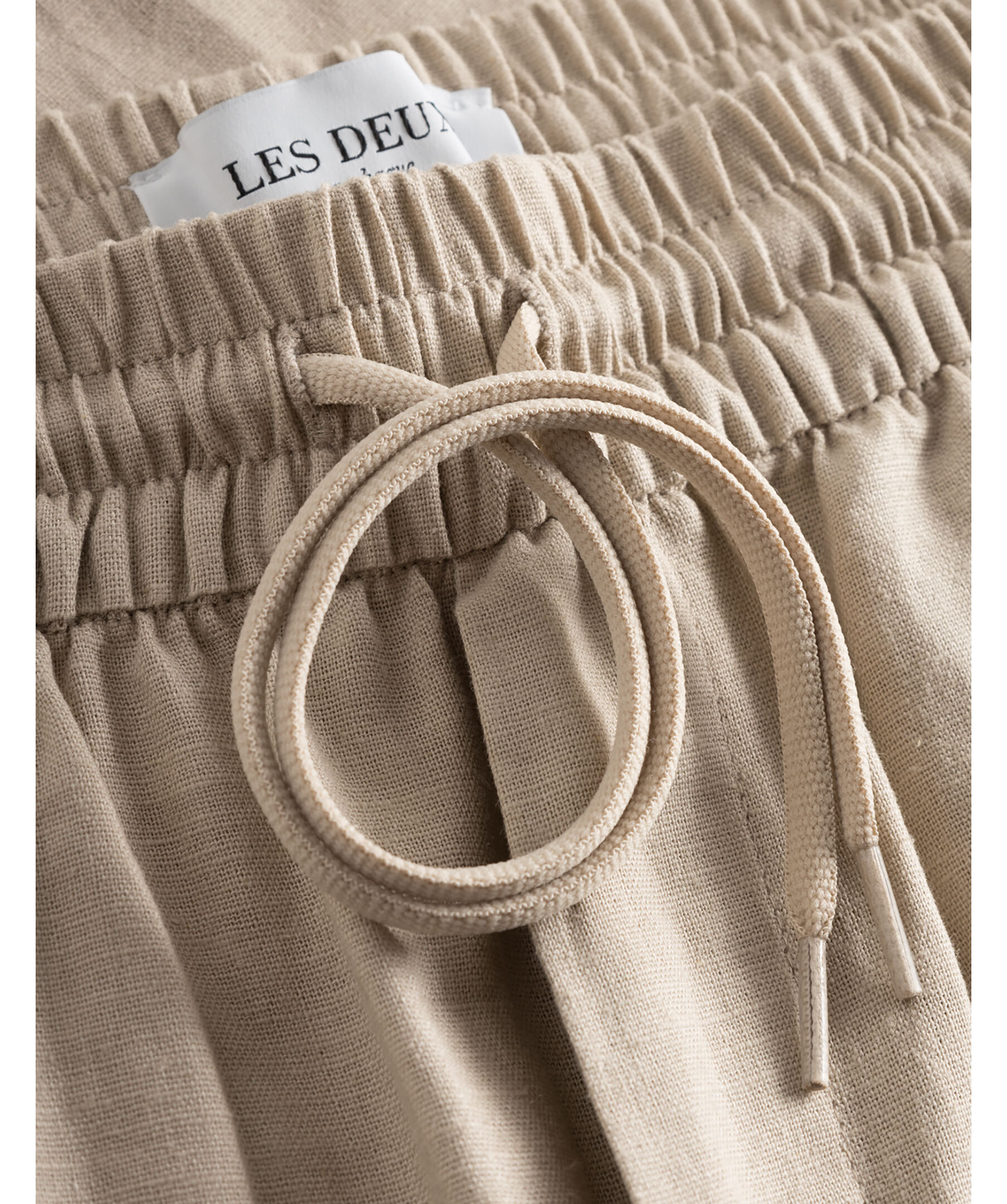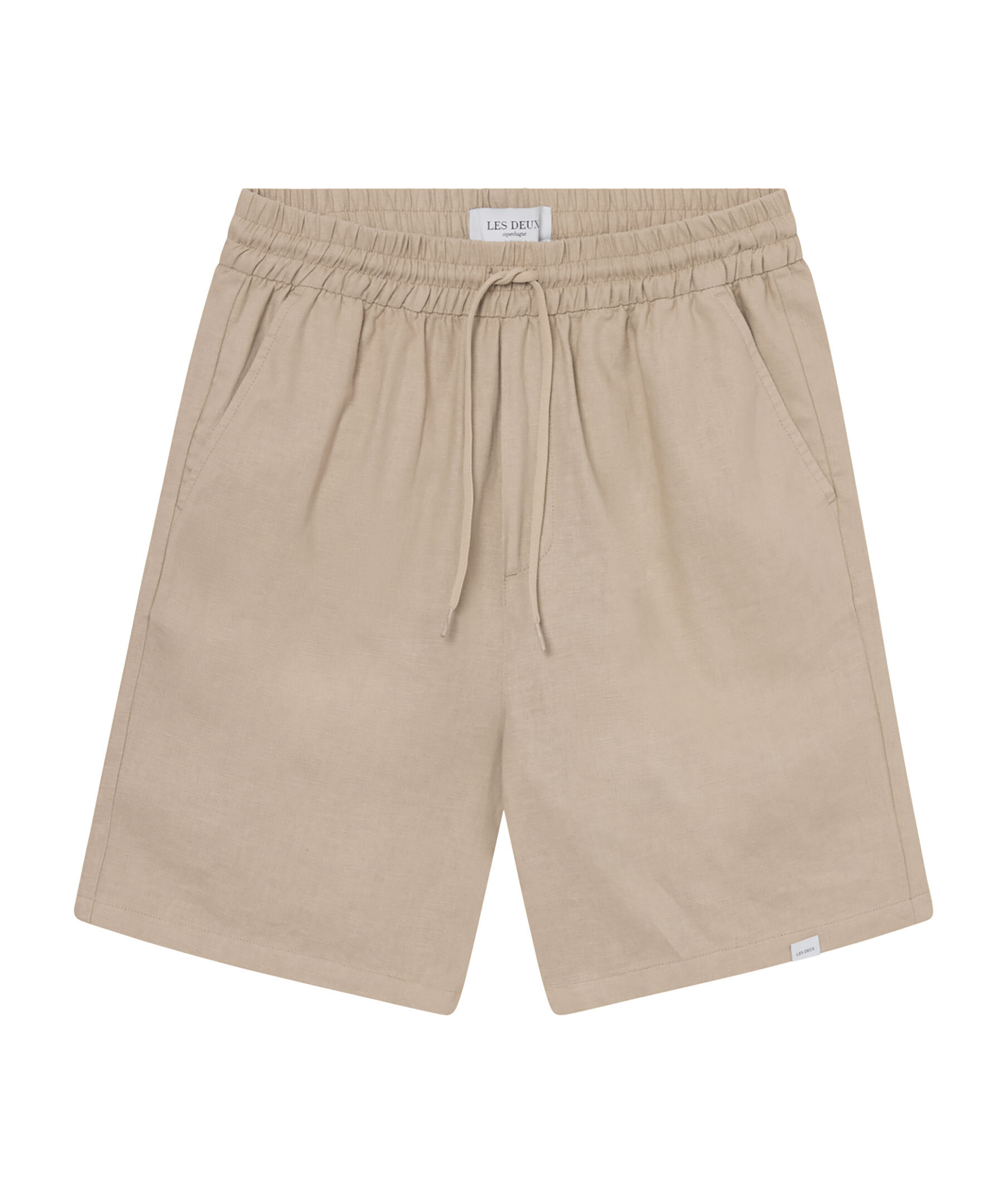 Sandfärgade linneshorts från Les Deux. Ultralätt och luftigt tyg som håller dig sval, elastisk dragsko i midjan för extra komfort, två sidfickor och en bakficka samt liten broderad logotyp ovanför bakfickan.