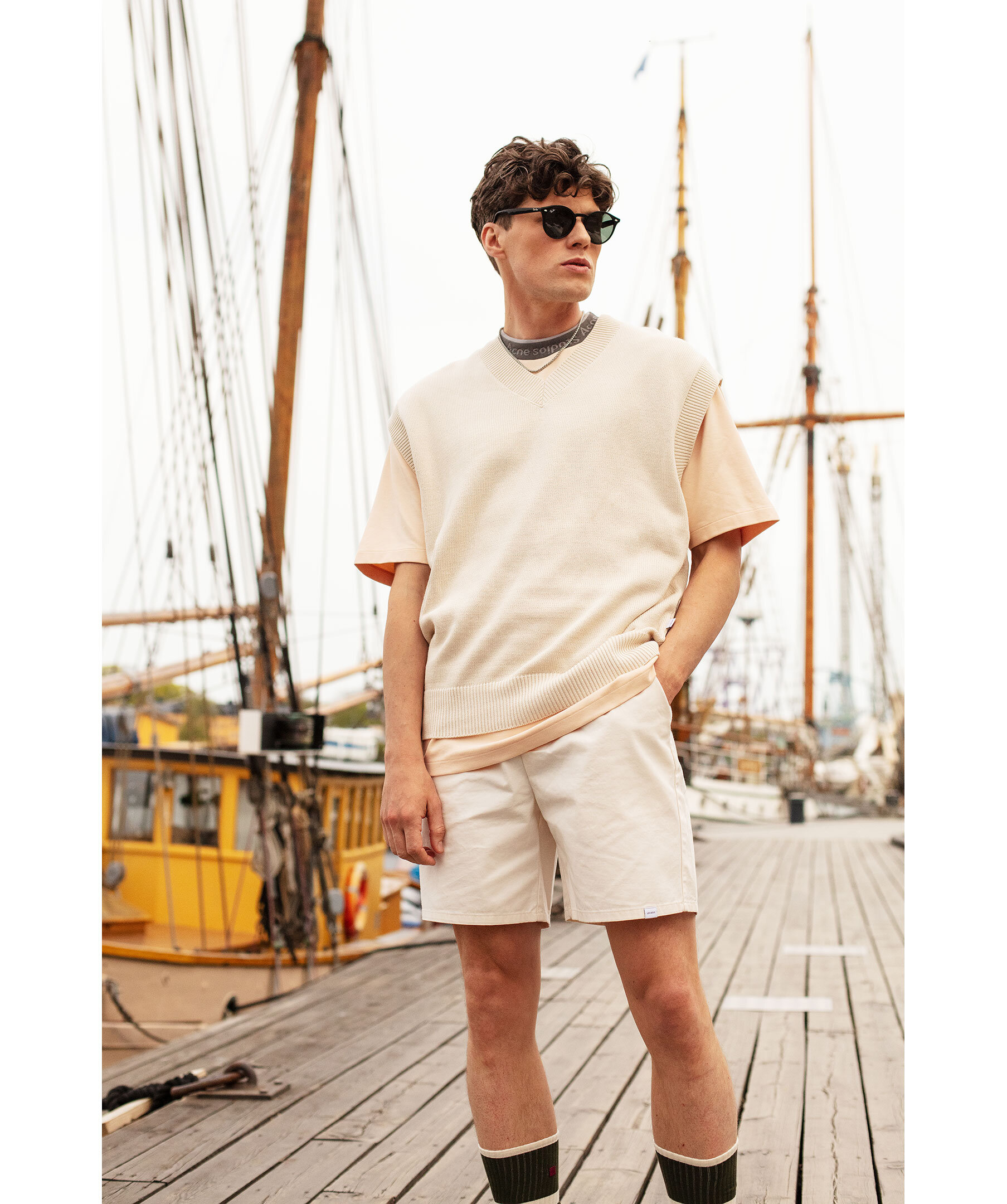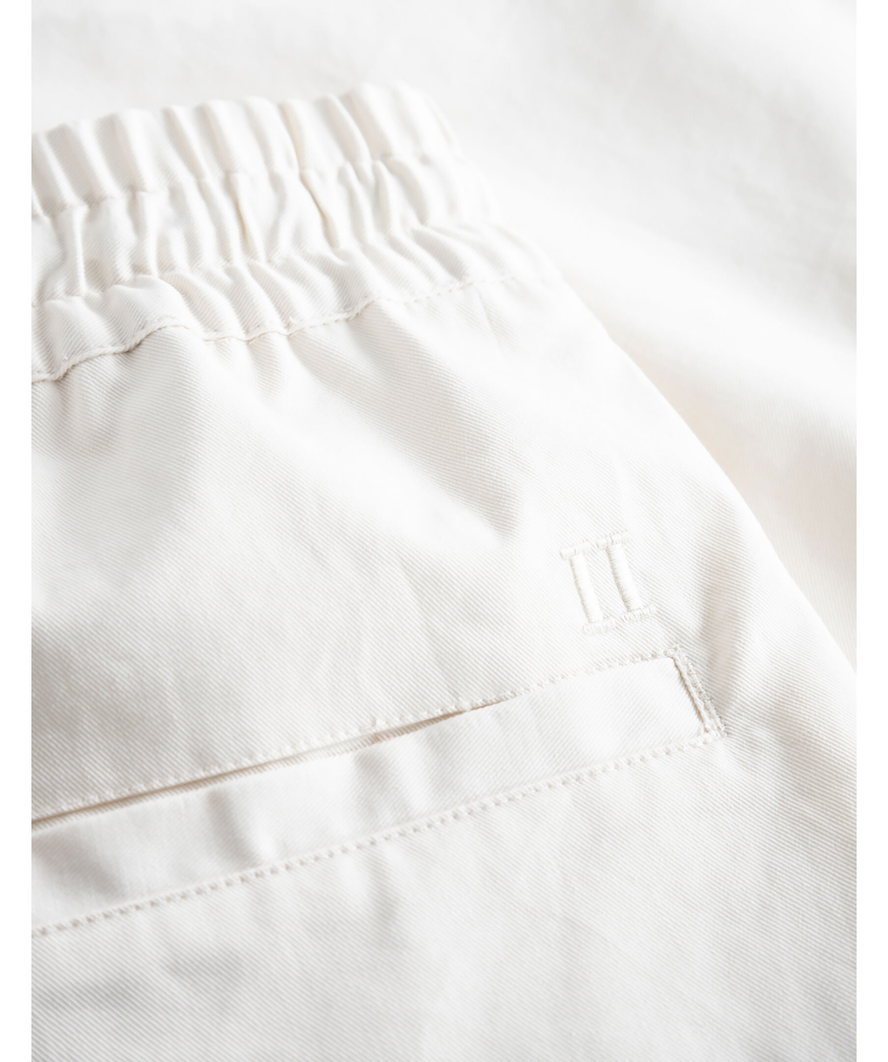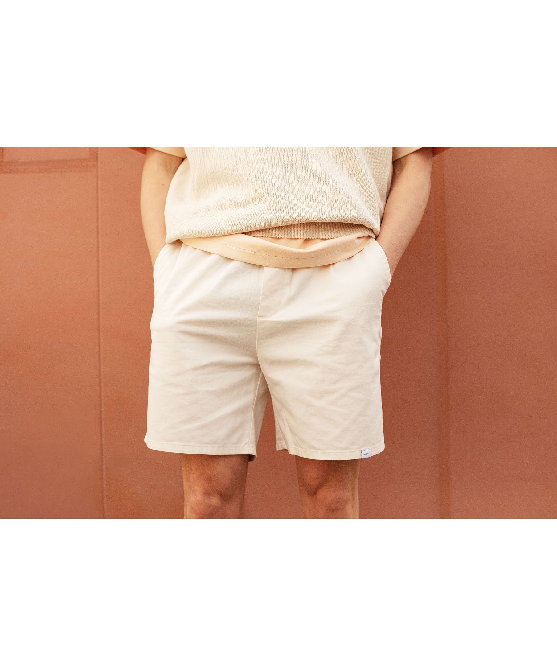 Benvita bomullstwill shorts från Les Deux. Dragsko i midjan och sidfickor. Shortsen är av 100% ekologisk bomull. Två fickor framtill och en ficka baktill på höger sida. Broderad logotyp vid bakfickan. Modellen är 185cm och har på sig storlek M.