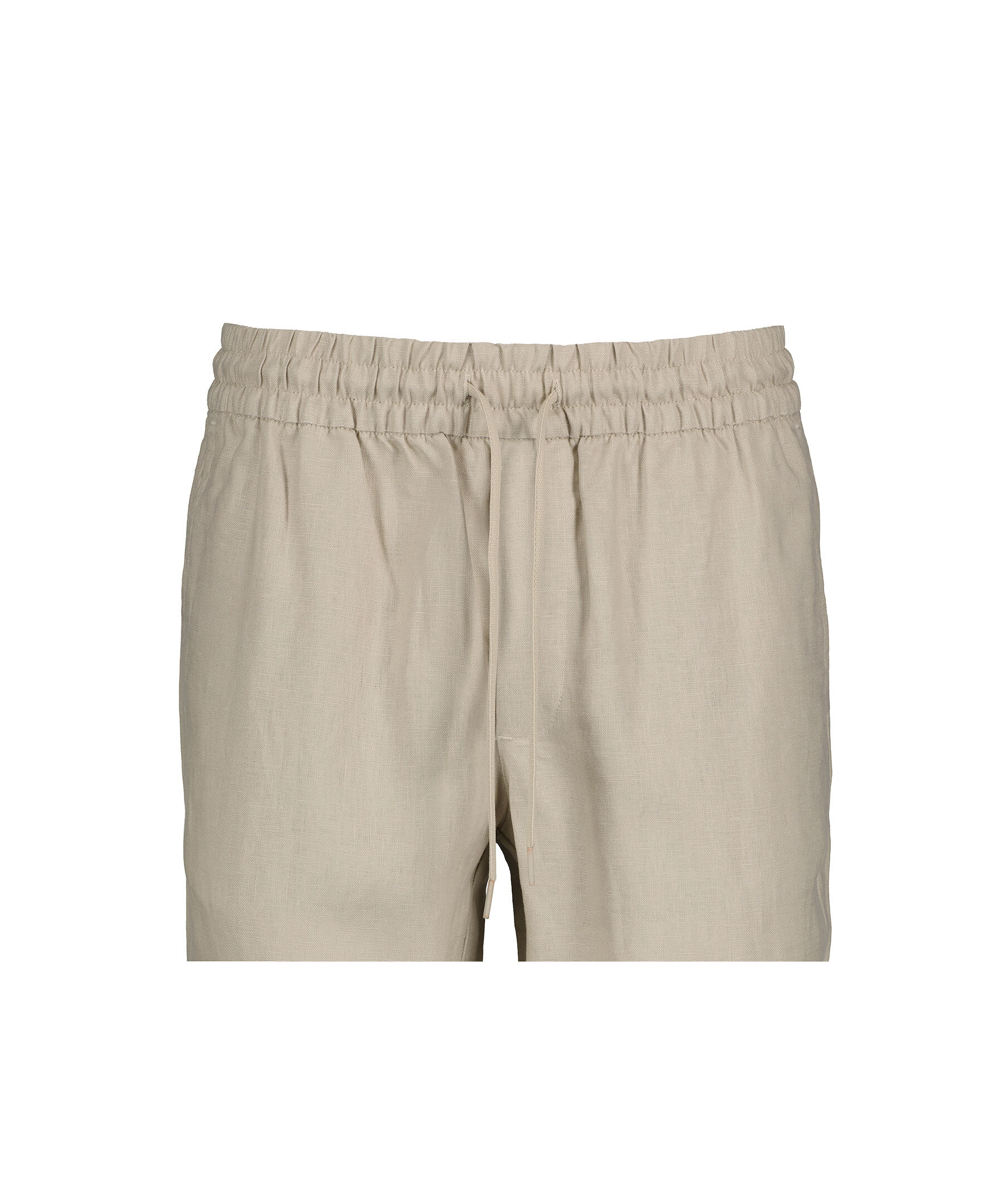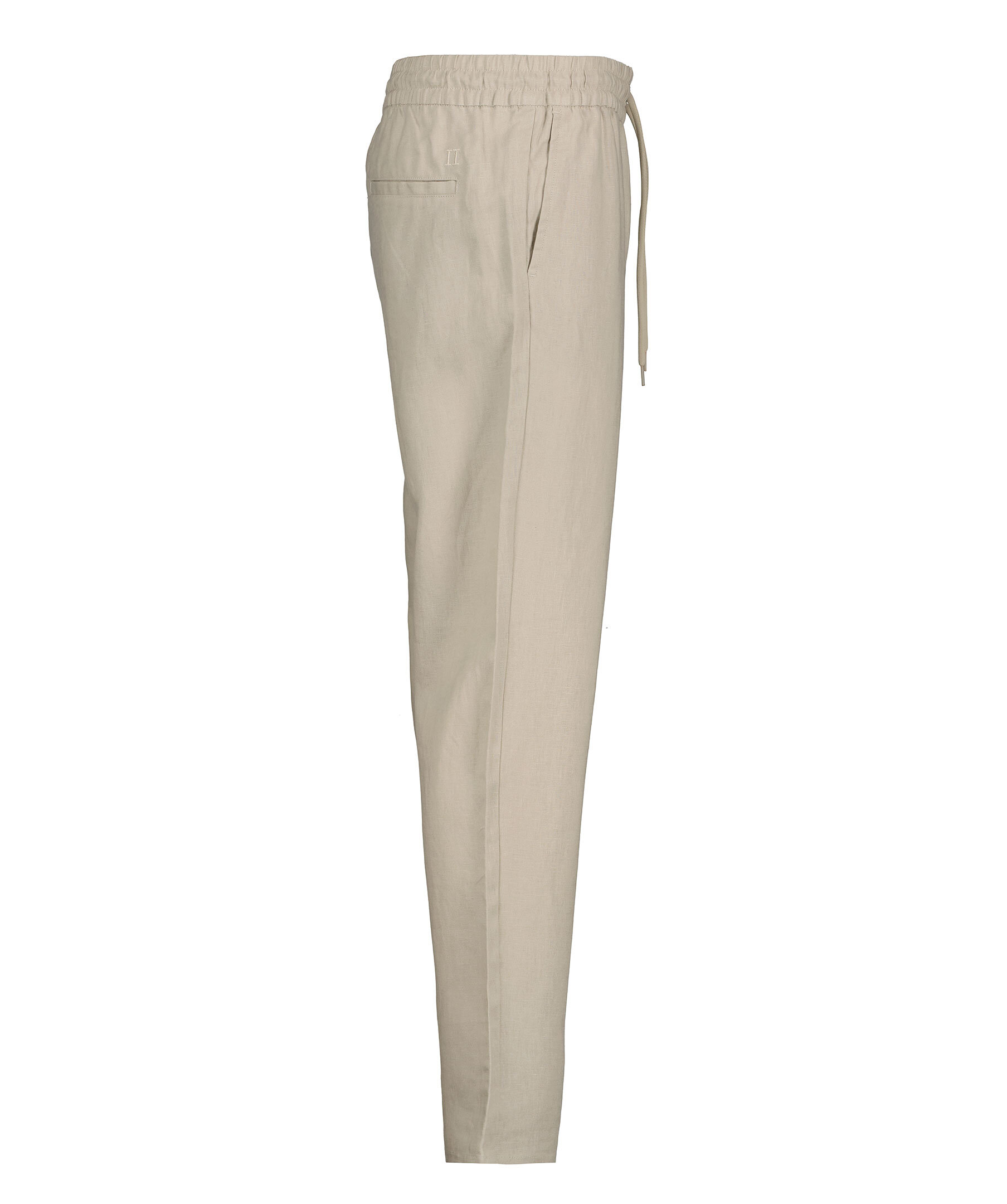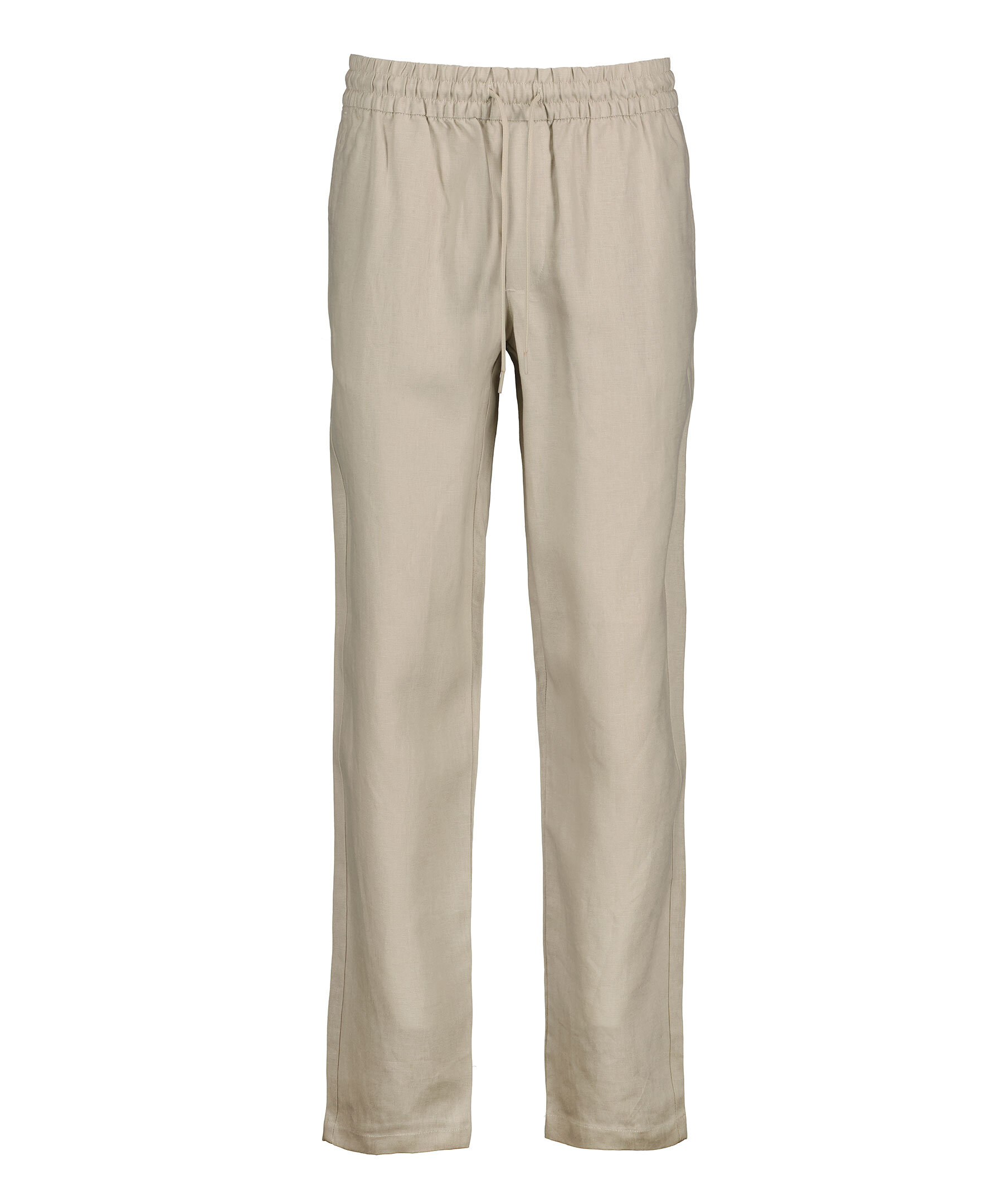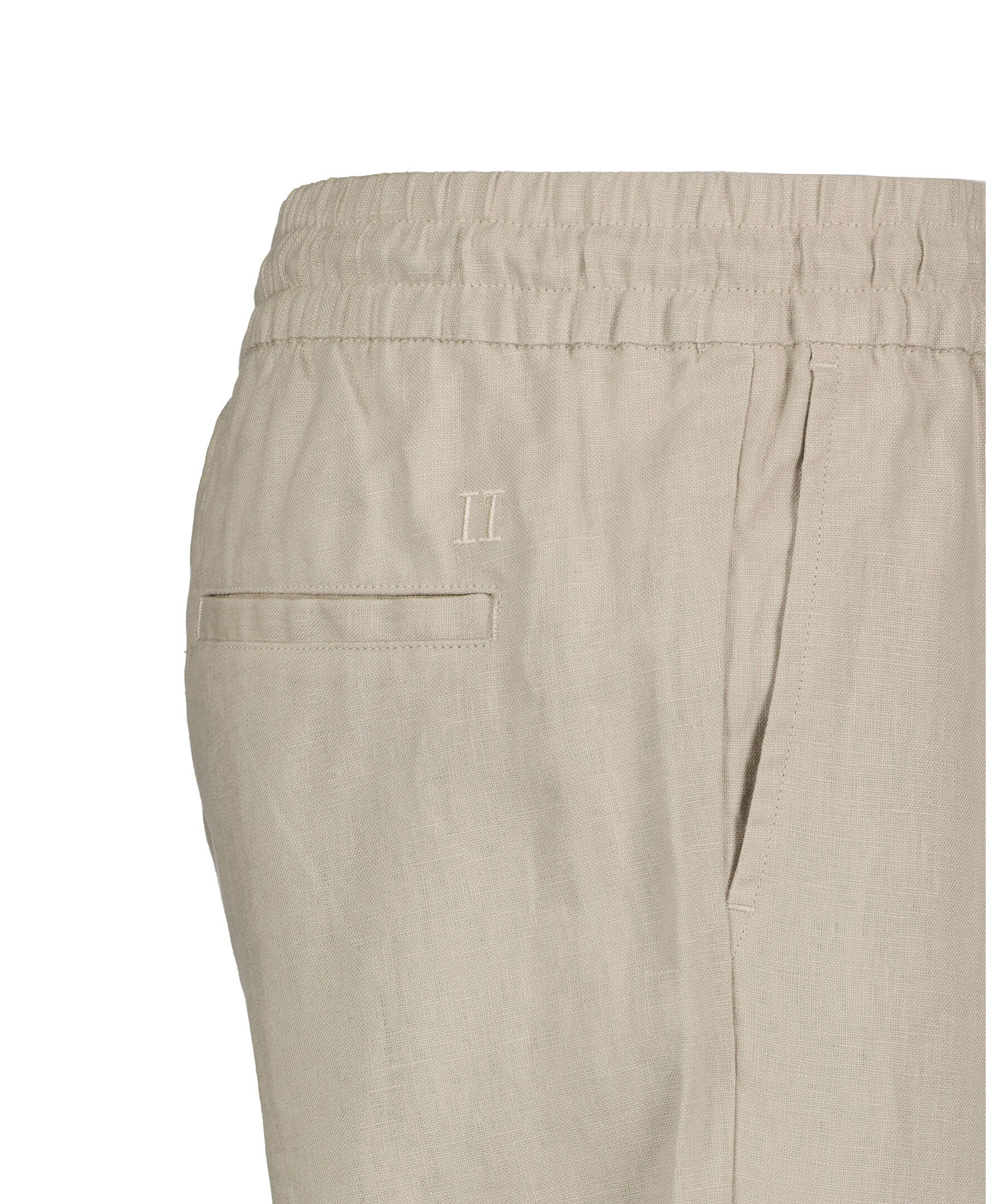 Sandfärgade byxor med avslappnad passform från Les Deux. Tillverkade i 100 % linne för andningsförmåga. De är gjorda med en elastisk dragsko i midjan för komfort och kommer med en Encore-logga ovanför en av bakfickorna. Byxorna har två sidofickor och två bakfickor.