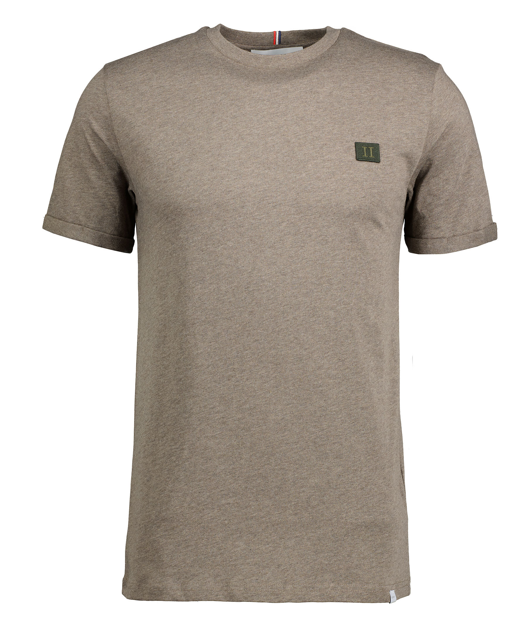 Beige melerad t-shirt från Les Deux. Broderad patch med logotyp på vänster bröst. Rundad halsringning. Tillverkad i 100% Bomull.