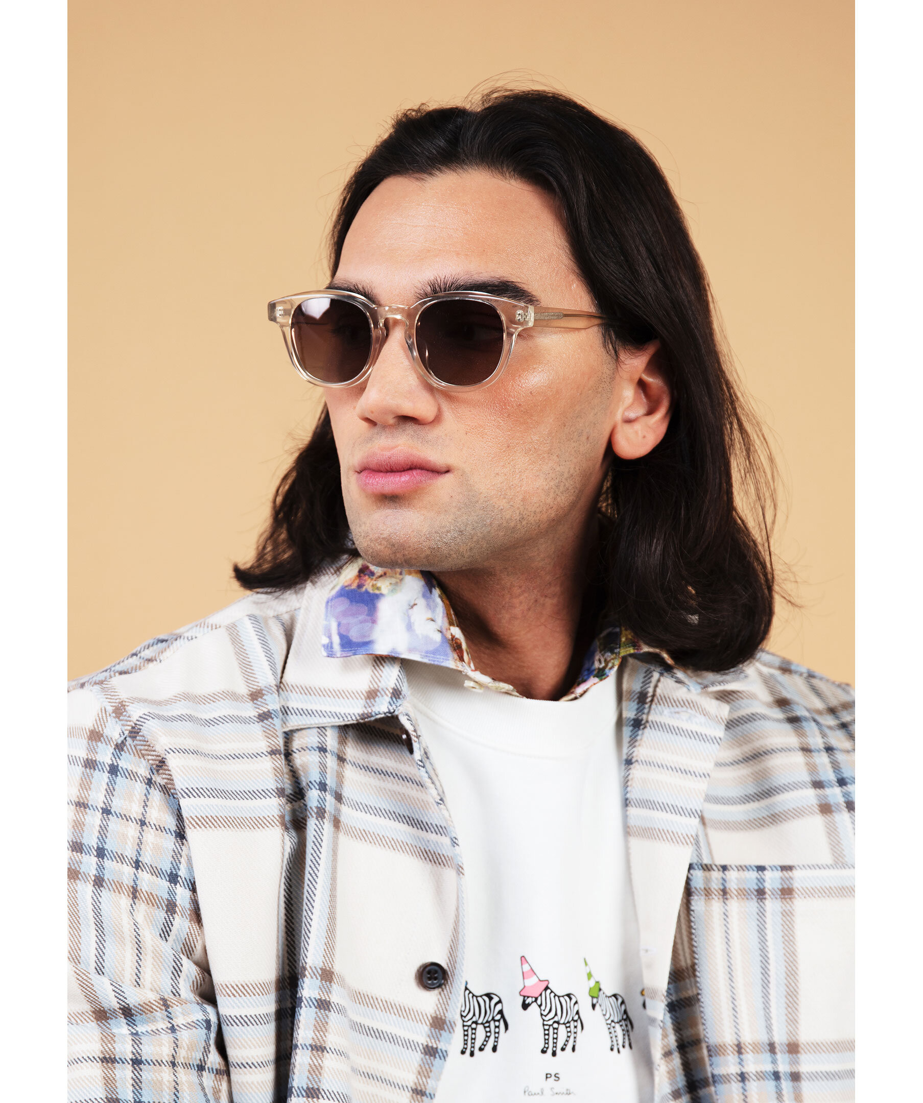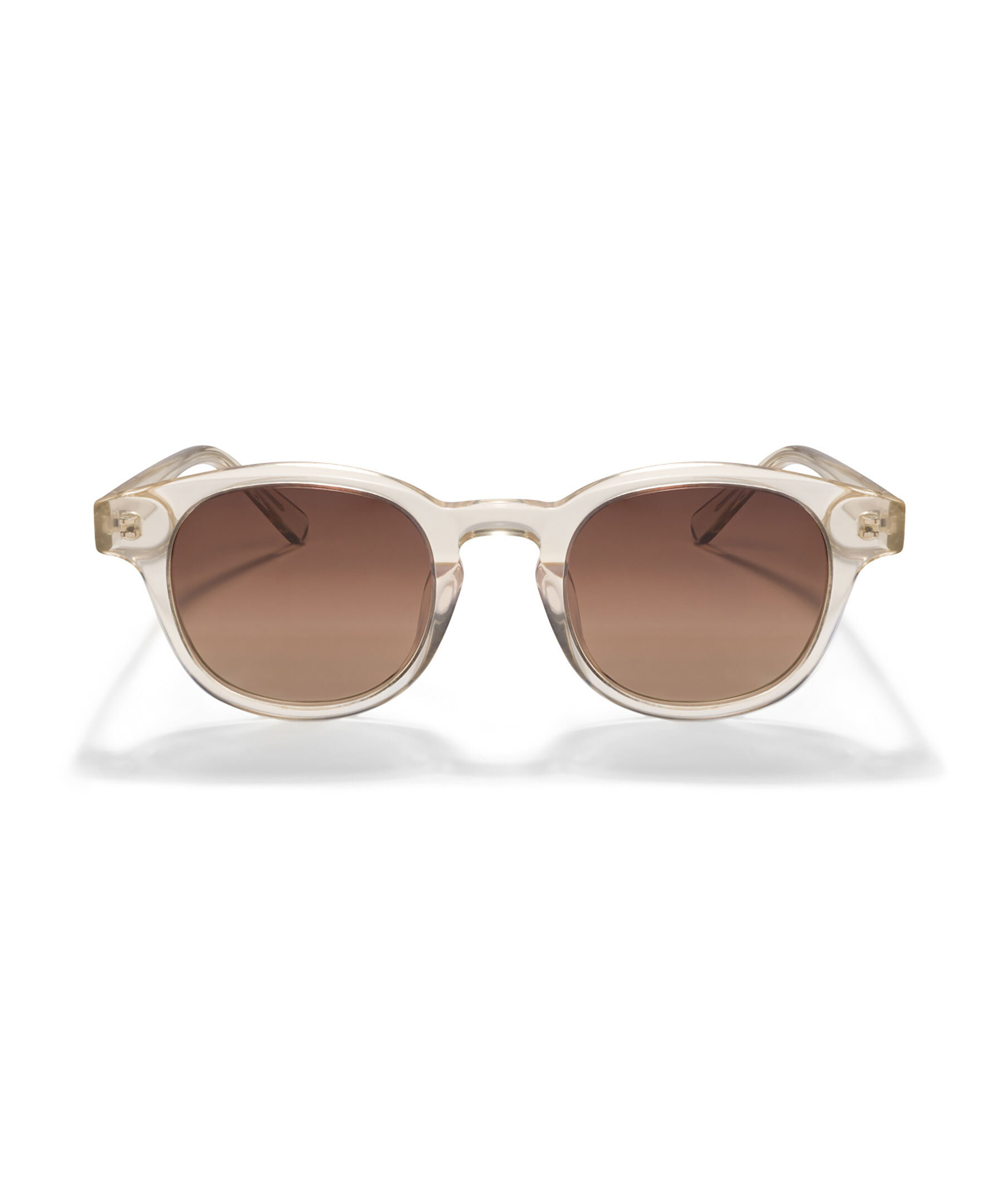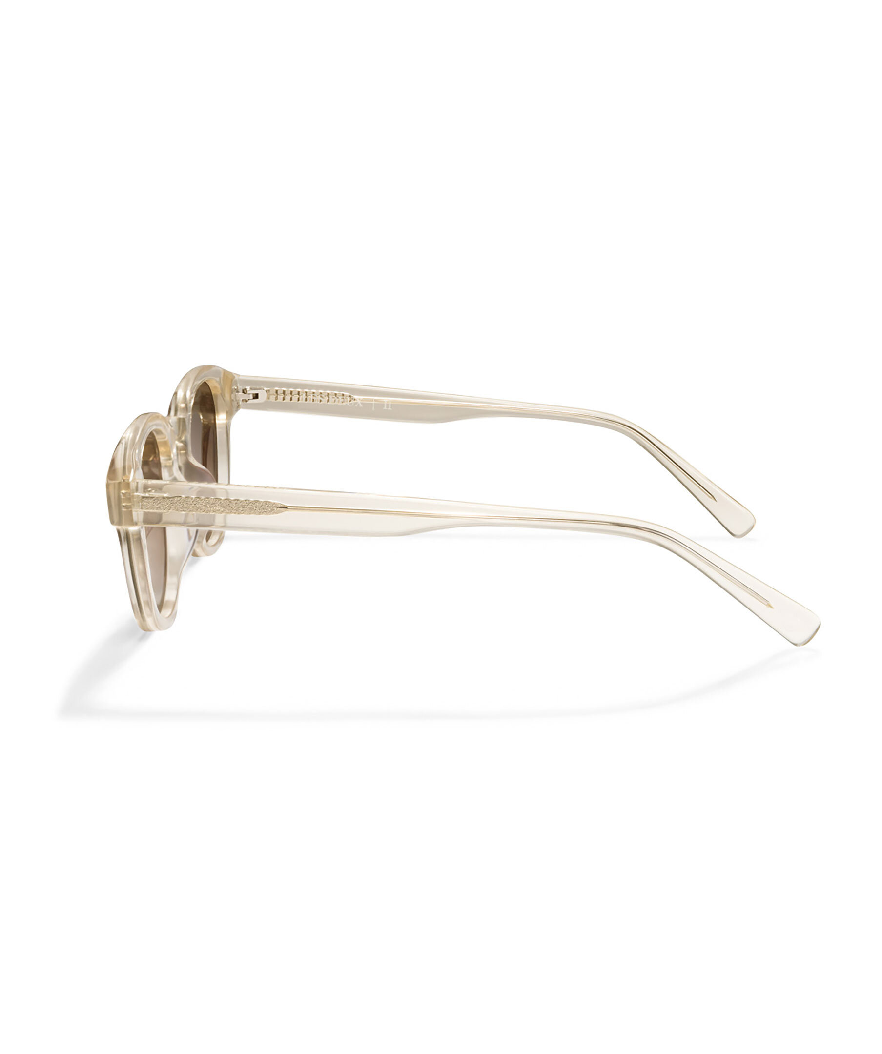 Transparenta solglasögon med bruna glas som är tillverkade av acetat som är lätt, hållbart och allergivänligt från Les Deux. Med ett UV400-skydd, vilket ger >99% skydd mot UVA- och UVB-strålar. De är dekorerade med silverfärgat märke på den inre tinningen.