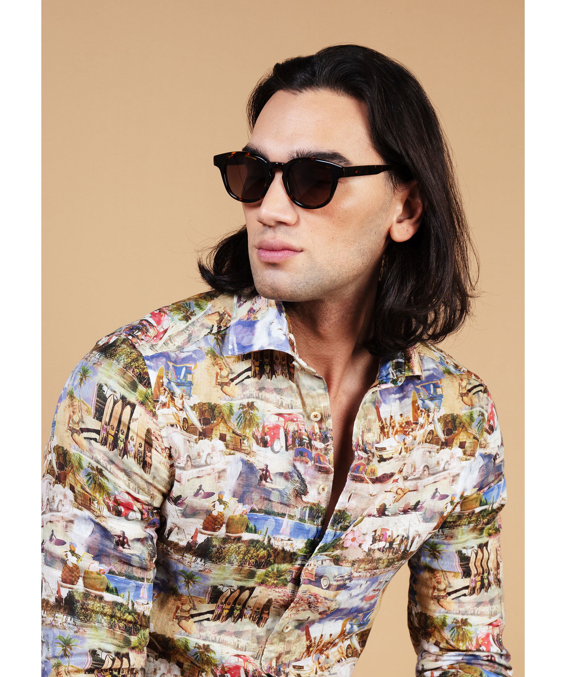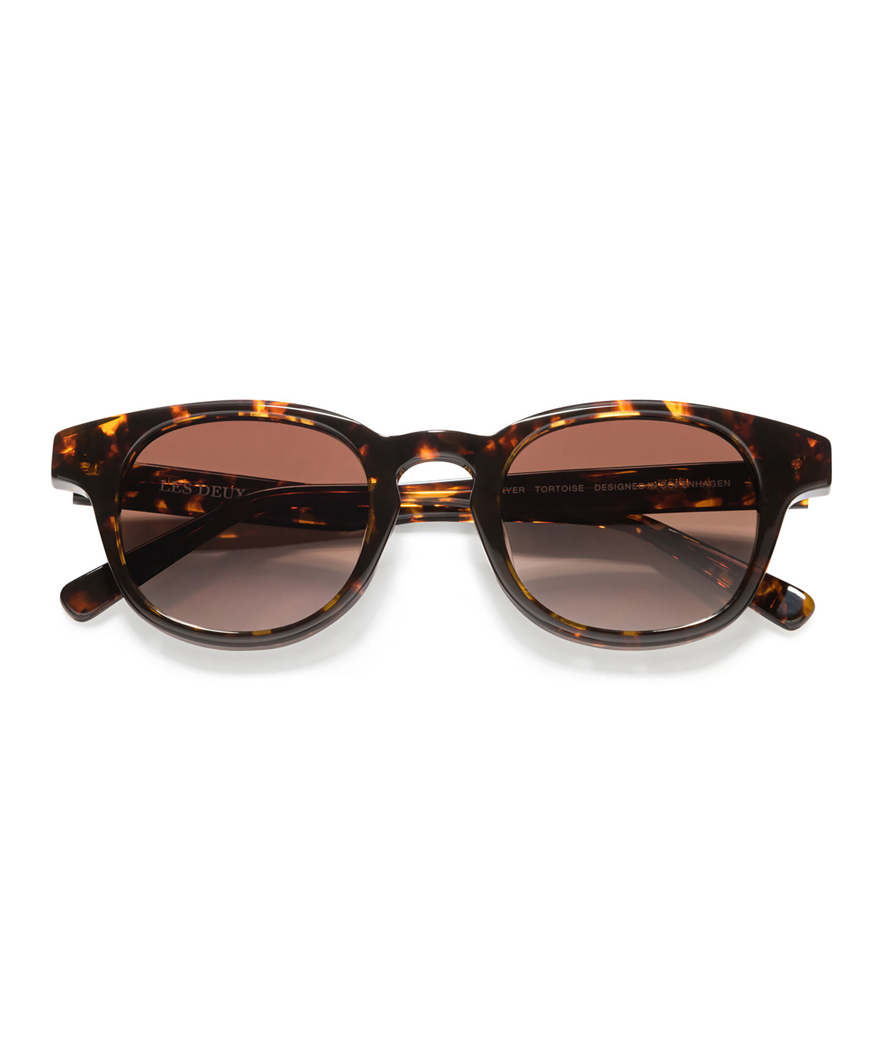 Bruna solglasögon som är tillverkade av acetat som är lätt, hållbart och allergivänligt från Les Deux. Med ett UV400-skydd, vilket ger >99% skydd mot UVA- och UVB-strålar. De är dekorerade med silverfärgat märke på den inre tinningen.