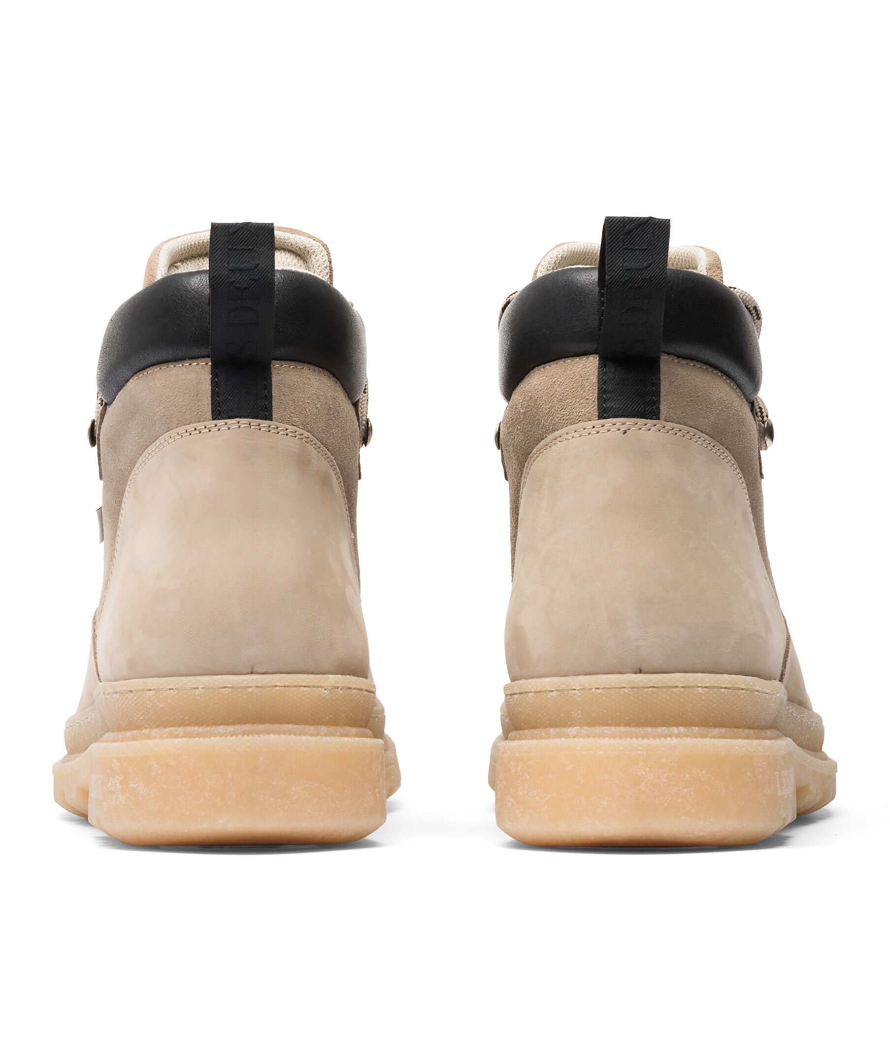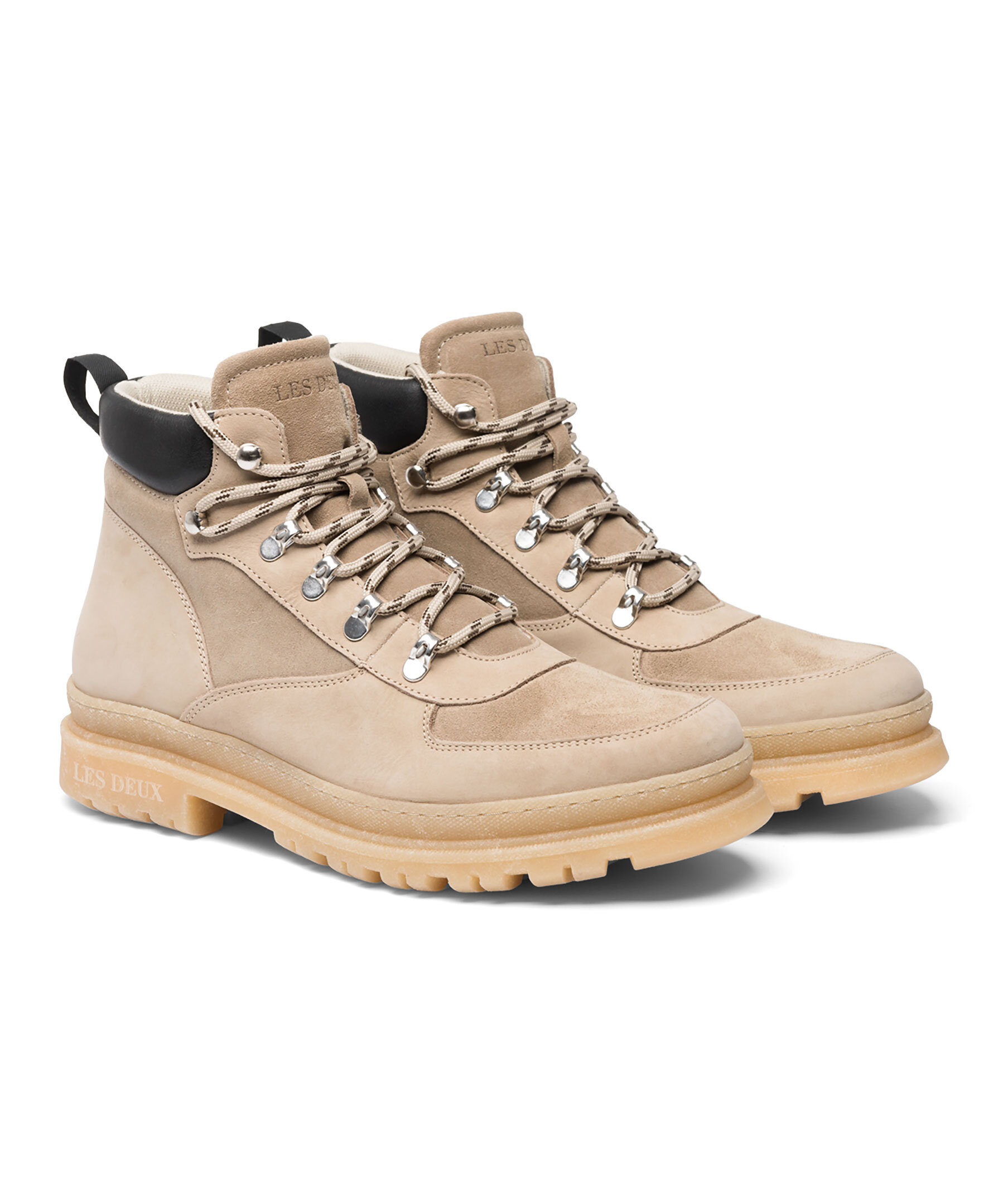 Beigea mellan höga kängor från Les Deux. Tunga och slitstarka höst och vinterskor i mocka och nubuck. Kraftig gummisula men konstrastfärgade snören. Street style inspirerade.