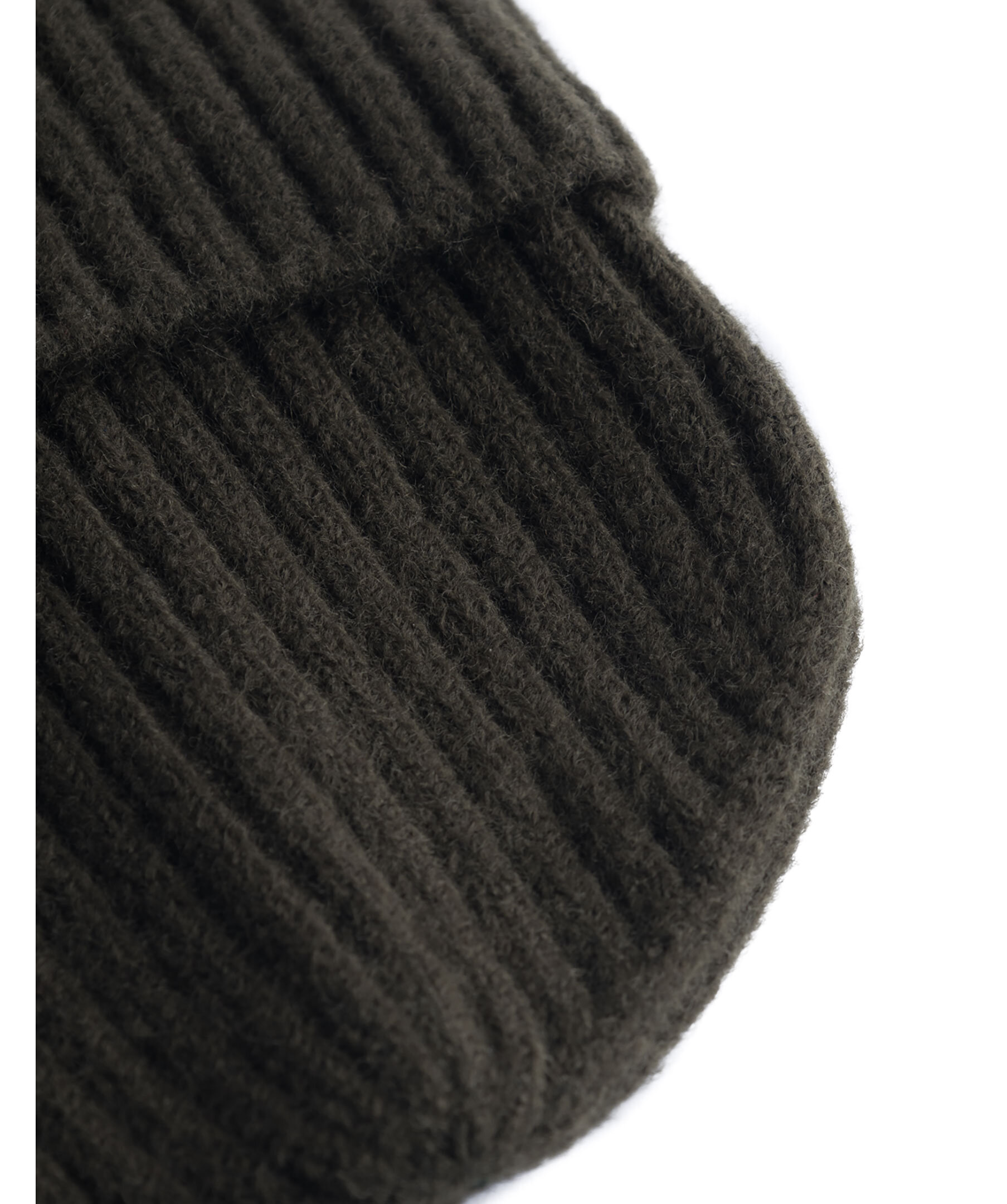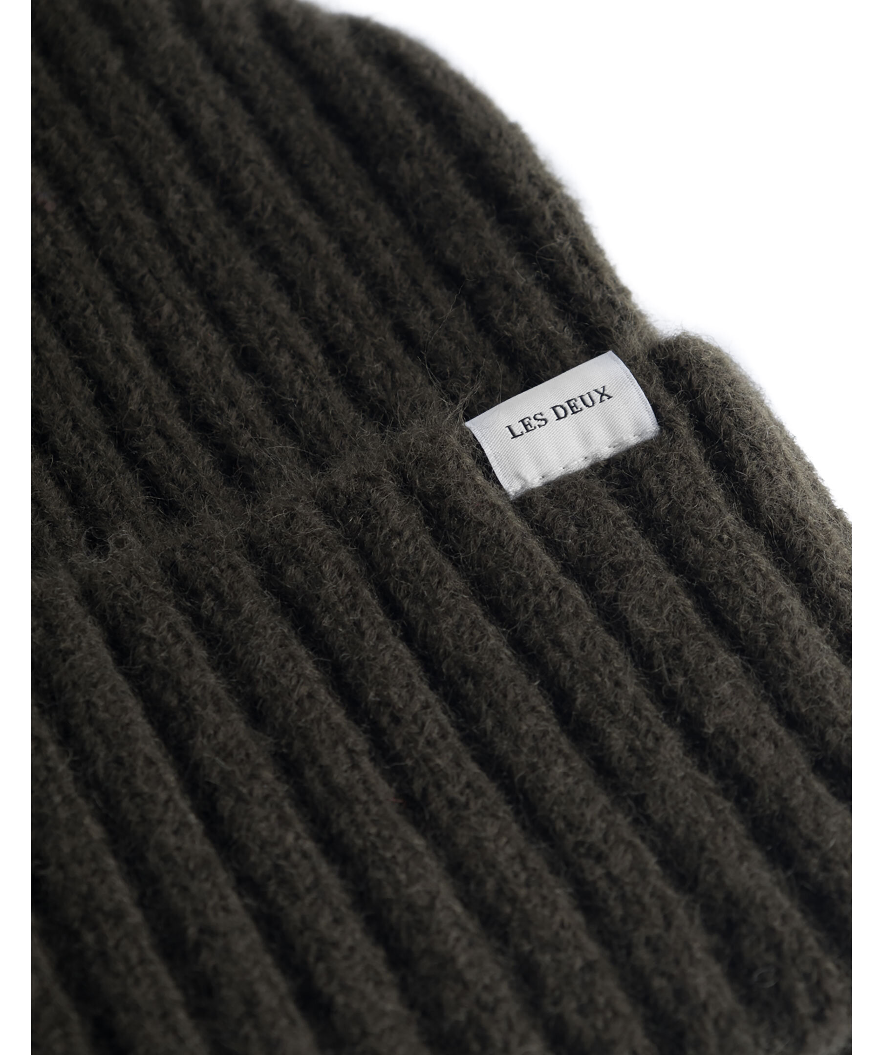 Svart ribbstickad mössa från Les Deux. Liten tyglapp med logotyp på mössans uppvikta kant.