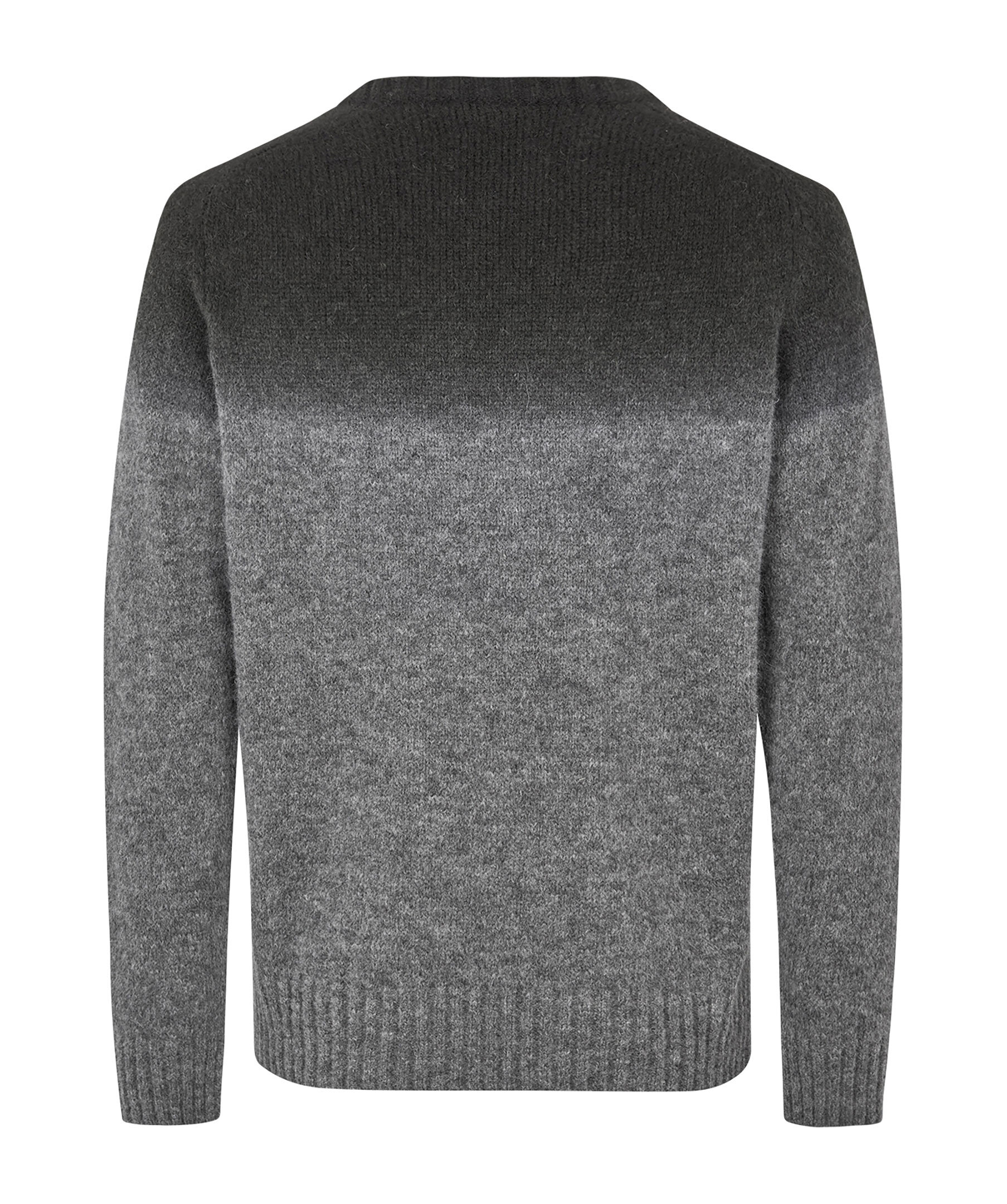 Svart och grå stickad tröja från Mads Nørgaard. Deras tröja Alpaca Mateo Dyp Die Knit är gjord av 55 % alpacka, 20 % ull och 25 % polyamid. Garnet är ultramjukt, stickningen är delikat, passformen är vanlig och färgen bleknar från svart till grått.