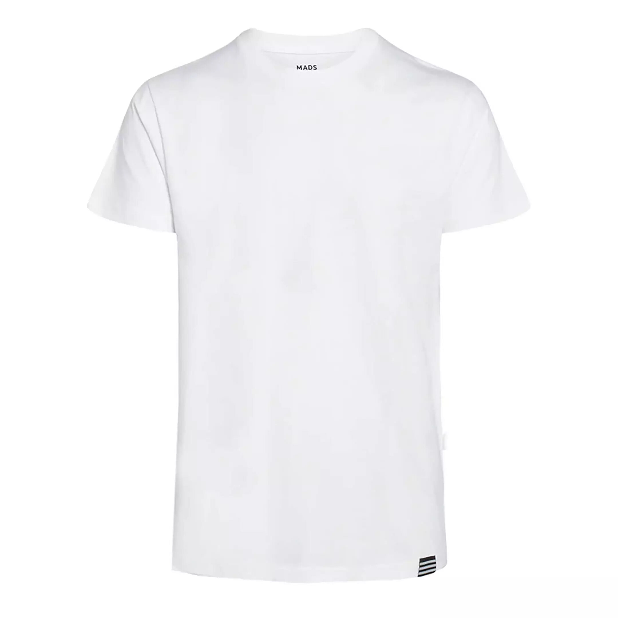 Vit bas t-shirt från Mads Nørgaard. Rundad halsringning och rak passform. Tillverkad i 100% ekologisk bomull.