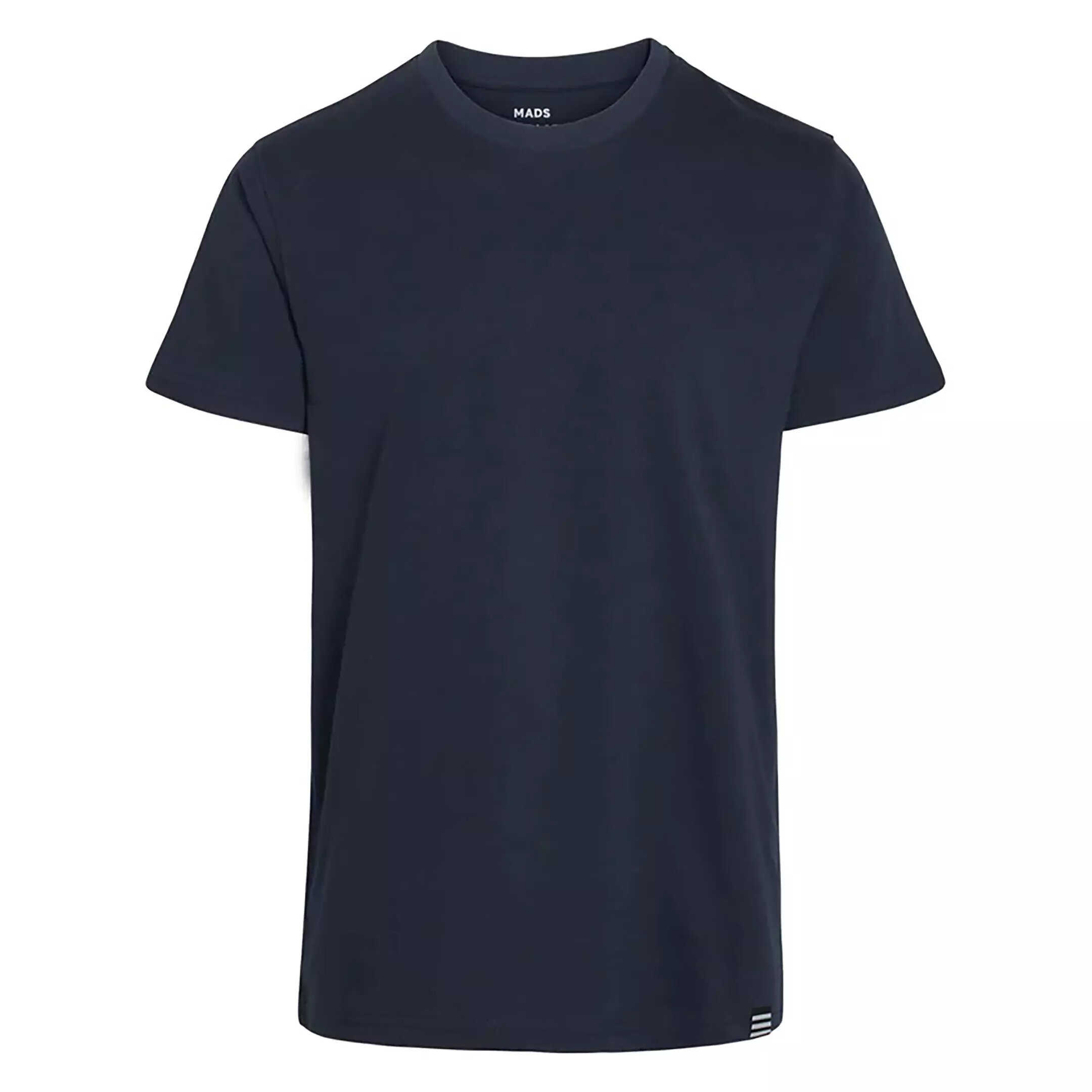 Marinblå bas t-shirt från Mads Nørgaard. Rundad halsringning och rak passform. Tillverkad i 100% ekologisk bomull.
