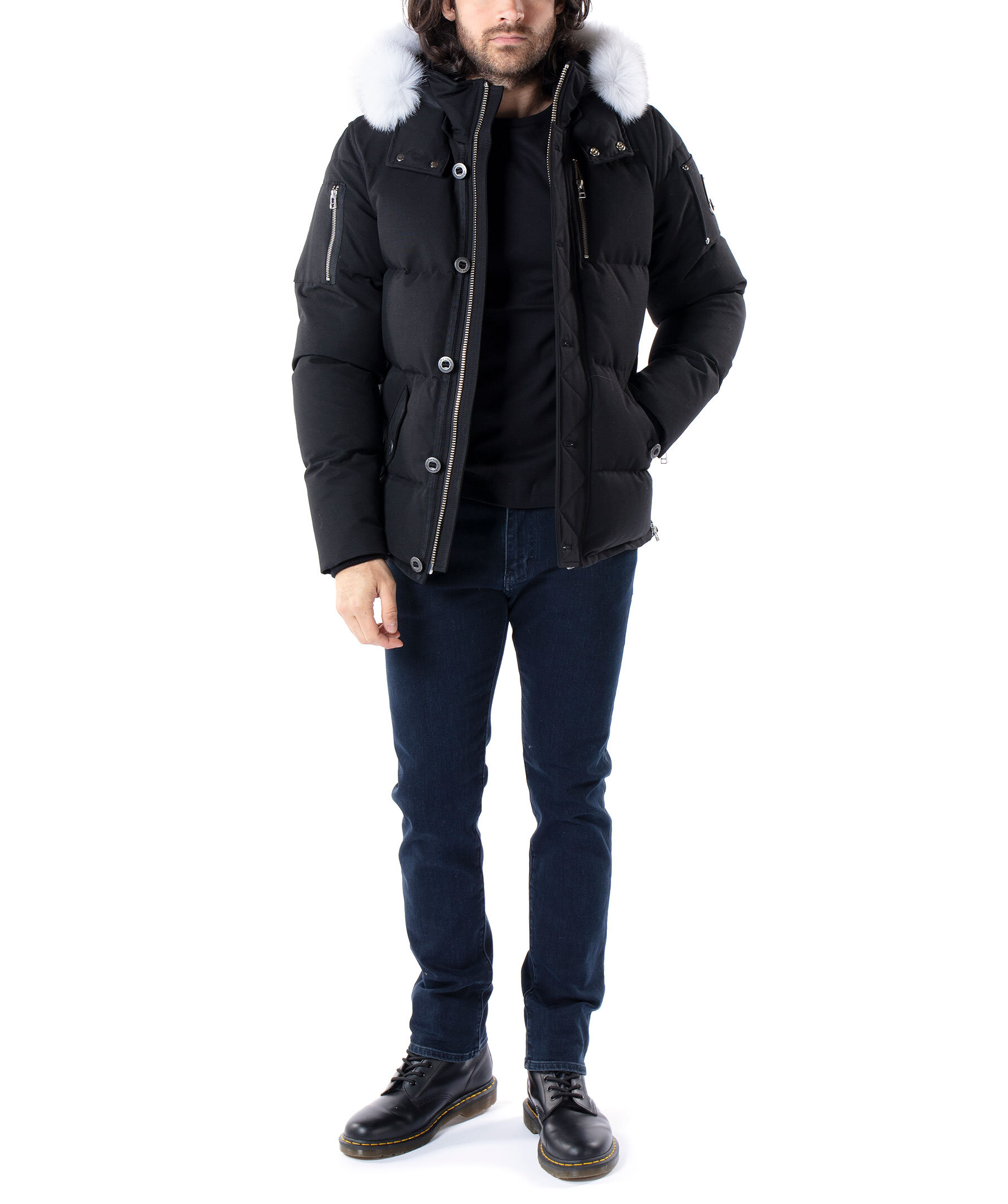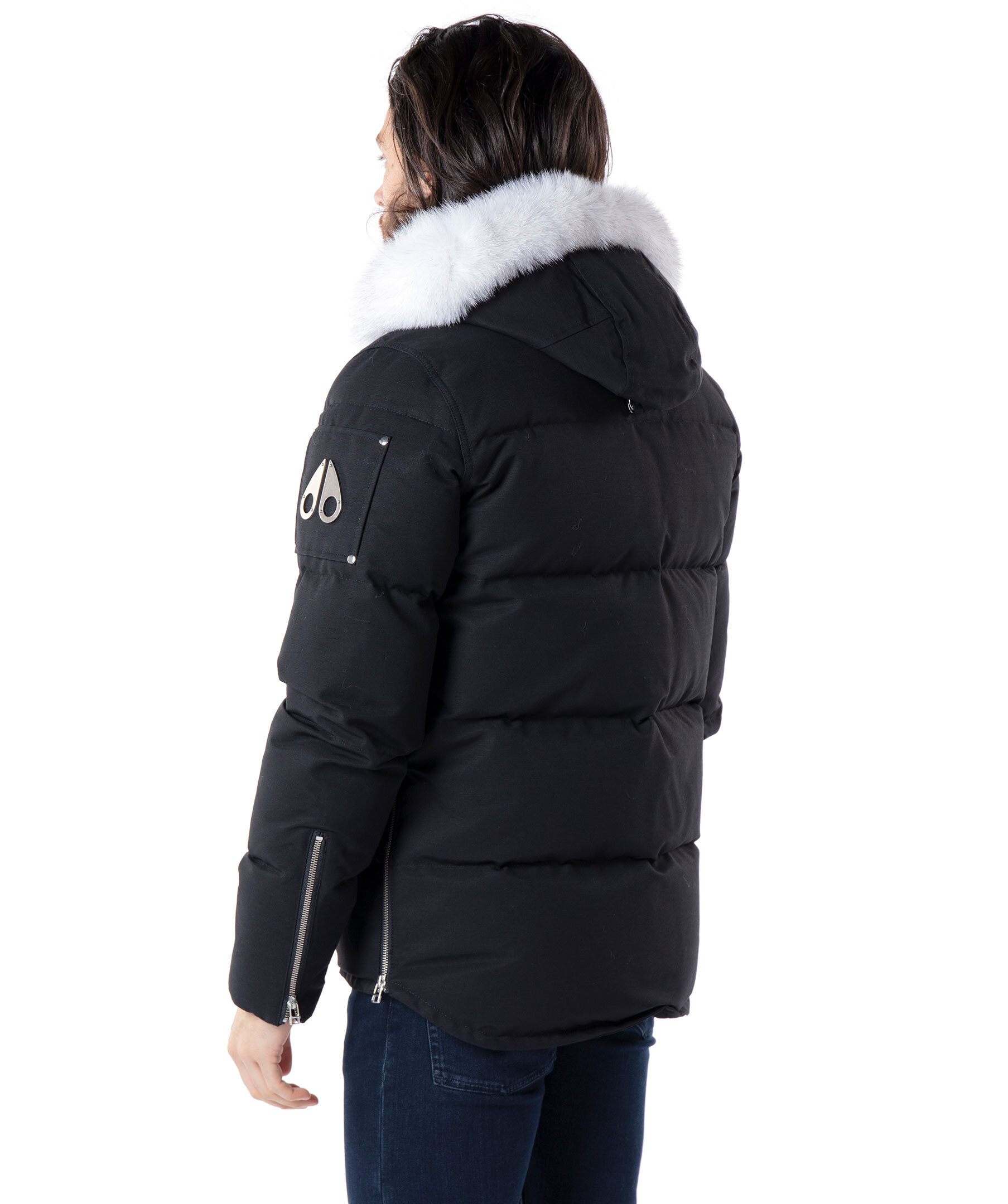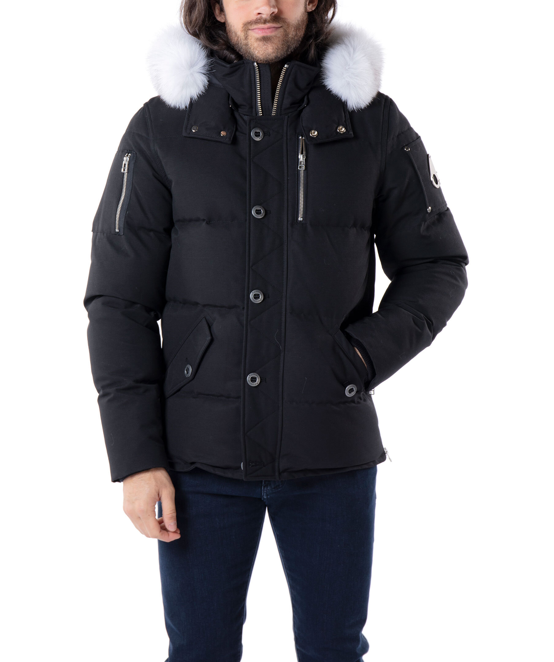 Svart dunjacka i en smal passform från det kanadensiska märket Moose Knuckles. Silverfärgade detaljer i metall, mjuk, vit naturpäls fastsydd på luvan. Två fickor fram, en bröstficka och en ficka på höger överärm, löstagbar luva, två innerfickor samt logotyp i metall på vänster ärm. OBS! Logotypen på ärmen kan variera i nyans mellan färgerna svart, guld och silver. Stängs med dragkedja och knappar. Vind och vattenavstötande yttertyg, svart foder på insidan. Perfekt för den kyliga vintern. För en rymligare passform med plats för en tjocktröja rekommenderar vi att gå upp en storlek. TIPS! Ånga pälsen för att få den stor och fluffig. OBS! Naturpälsar är unika och kan skilja sig från bilden. Modellen är 185cm lång och har på sig storlek M.