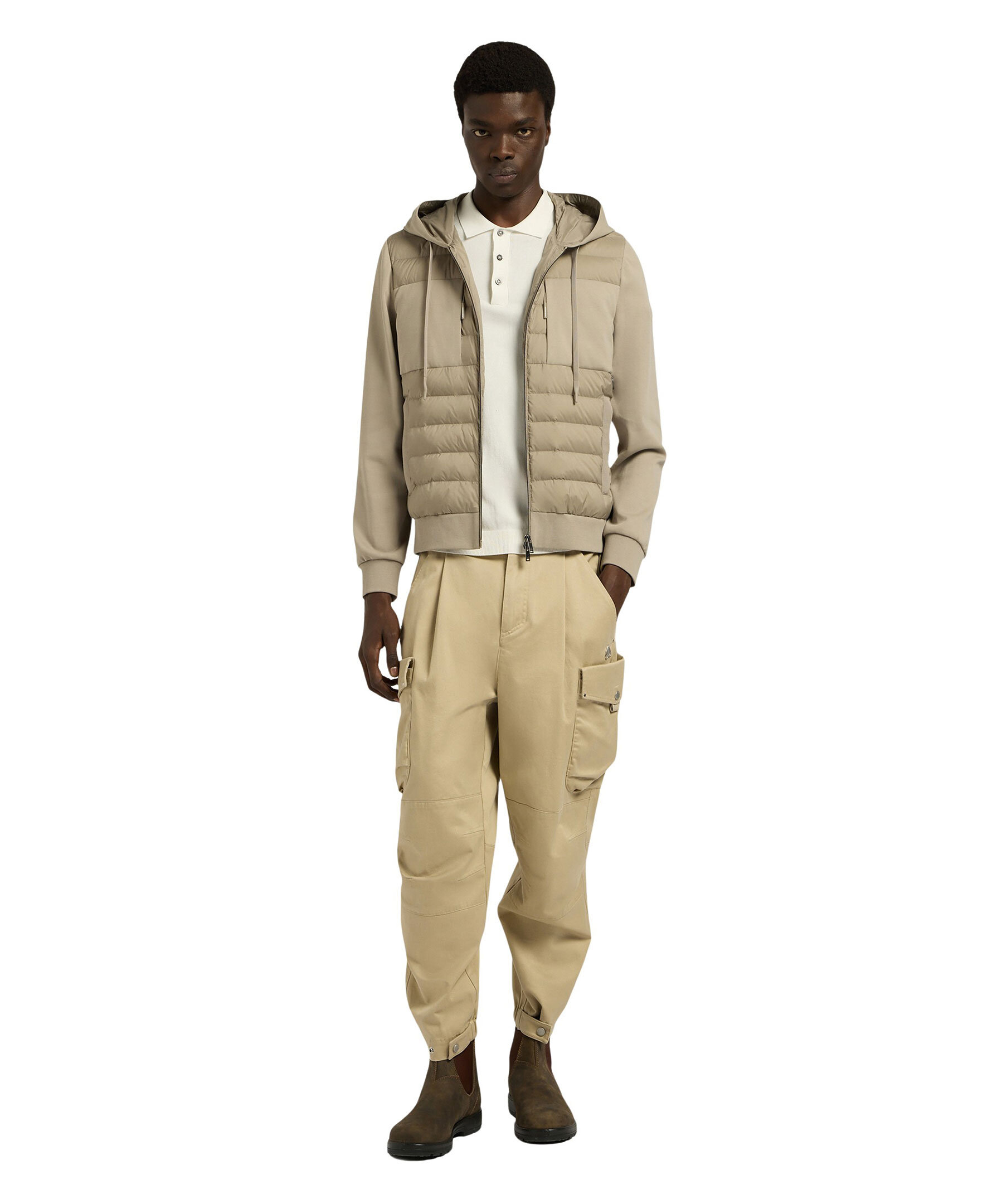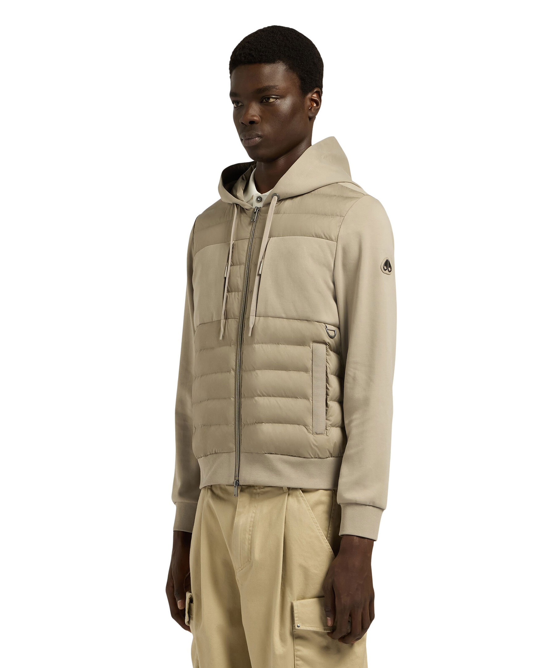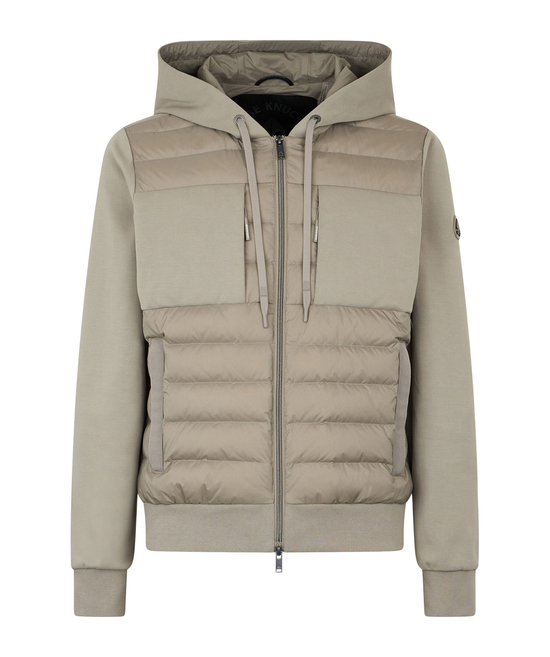 Greige hybridjacka från Moose Knuckles. Jackan stängs med tvåvägsdragkedja framtill och har två sidfickor, huva med dragsko samt logotyp i metall på ena ärmen. Tillverkad i en nylon- och bomullsblandning med dunfyllning.