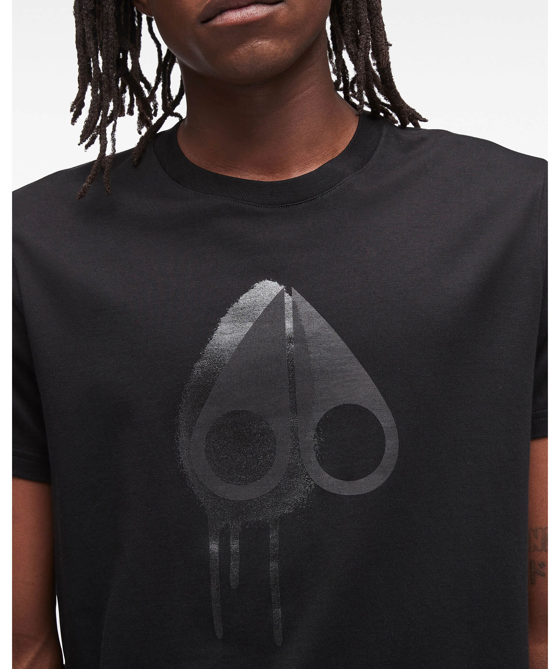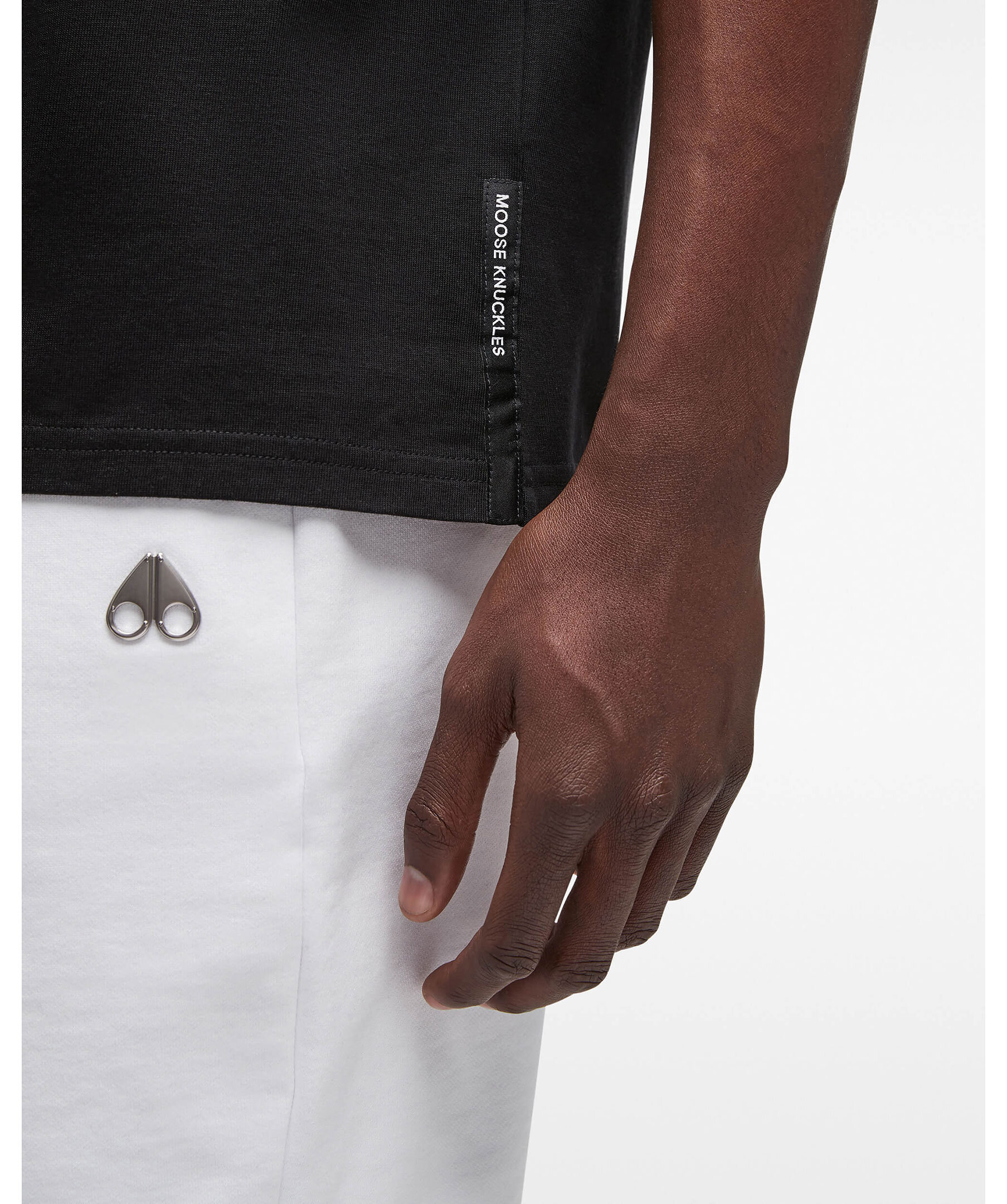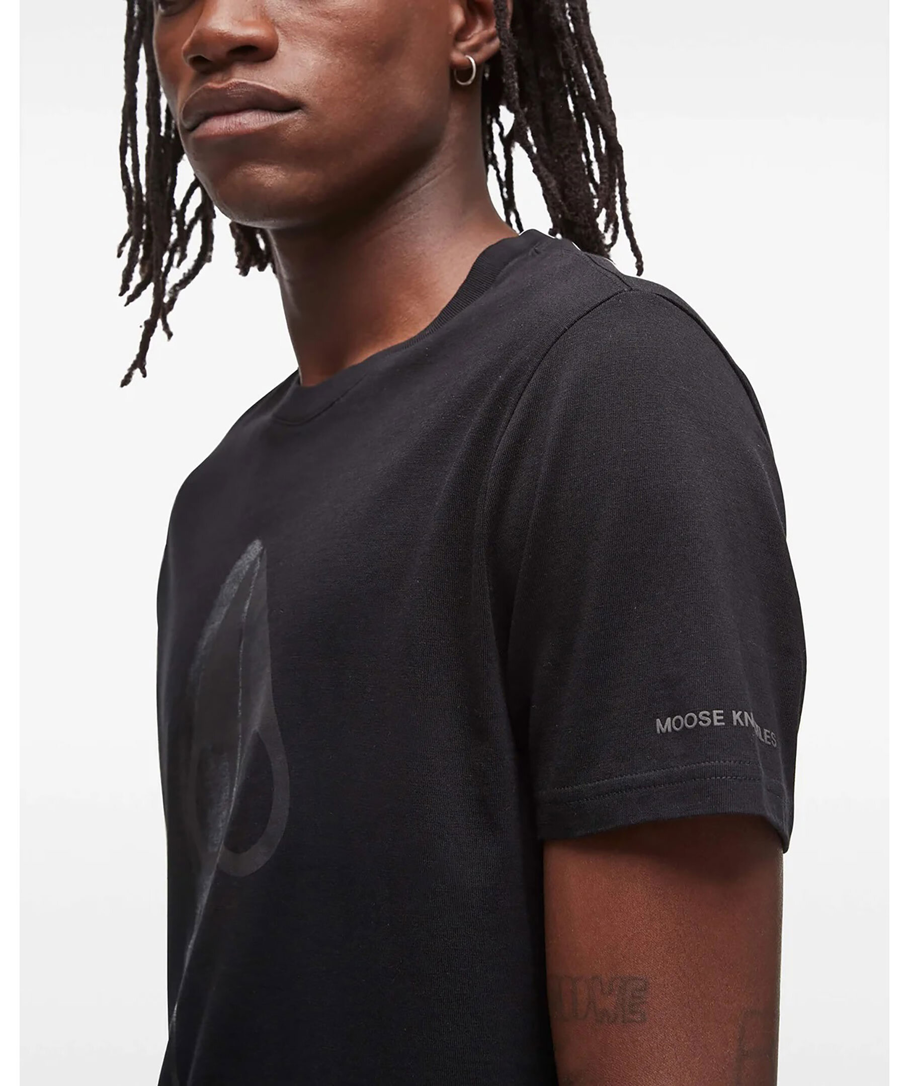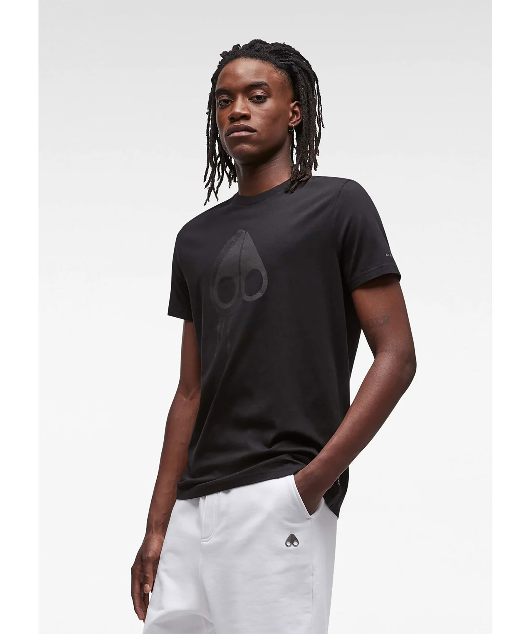 Svart t-shirt från Moose Knuckles. Rundad halsringning. Tryckt logotyp på bröstet. Tillverkad i 100% bomull. Slim fit modell.