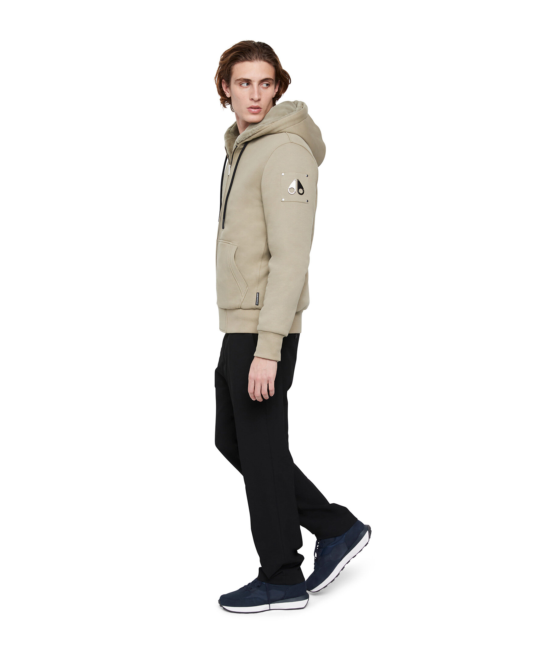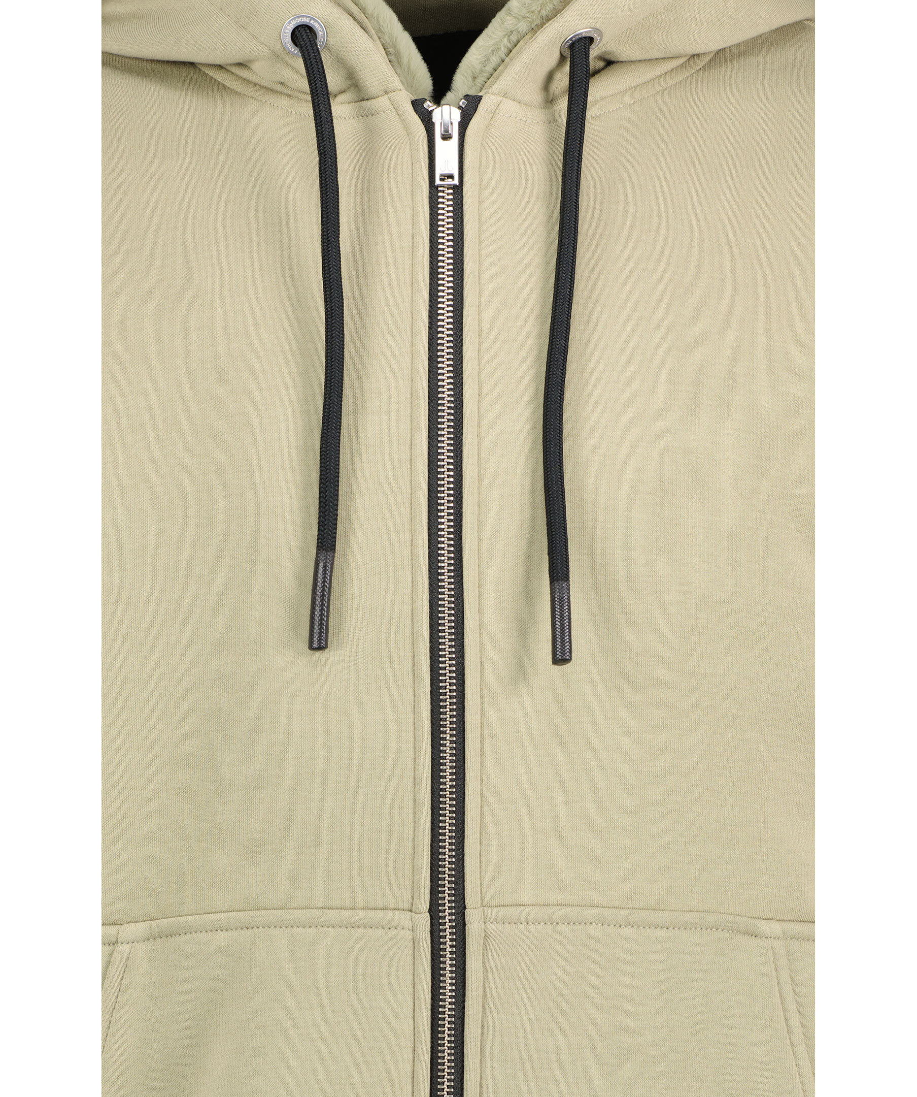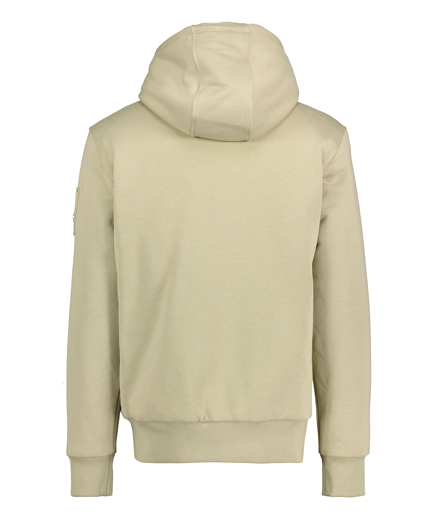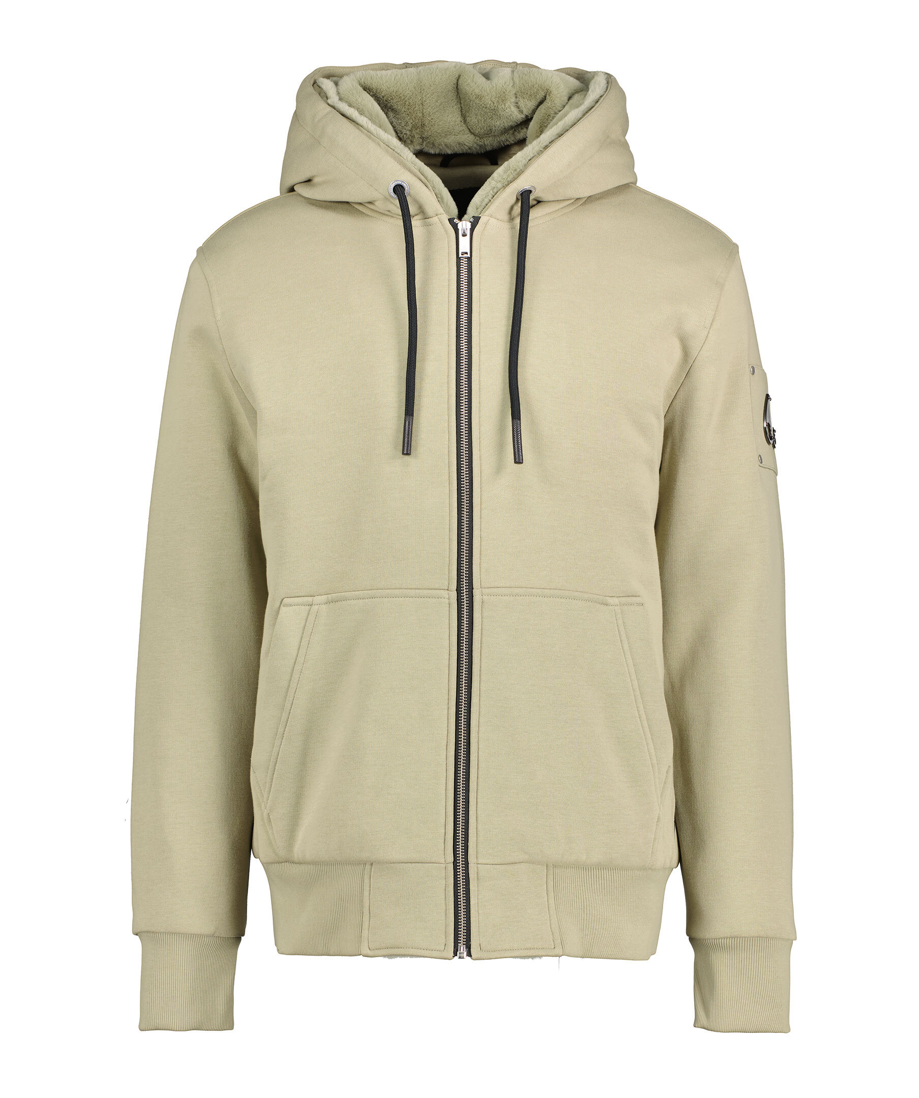 Salviagrön vadderad hoodie från Moose Knuckles. Stängs framtill med dragkedja. Luva med dragsko och avtagbart foder. Ficka på magen. Ribbstickad mudd vid ärm- och plaggslut. Patch med logotyp i metall på vänster ärm. Fodrad luva i konstpäls.