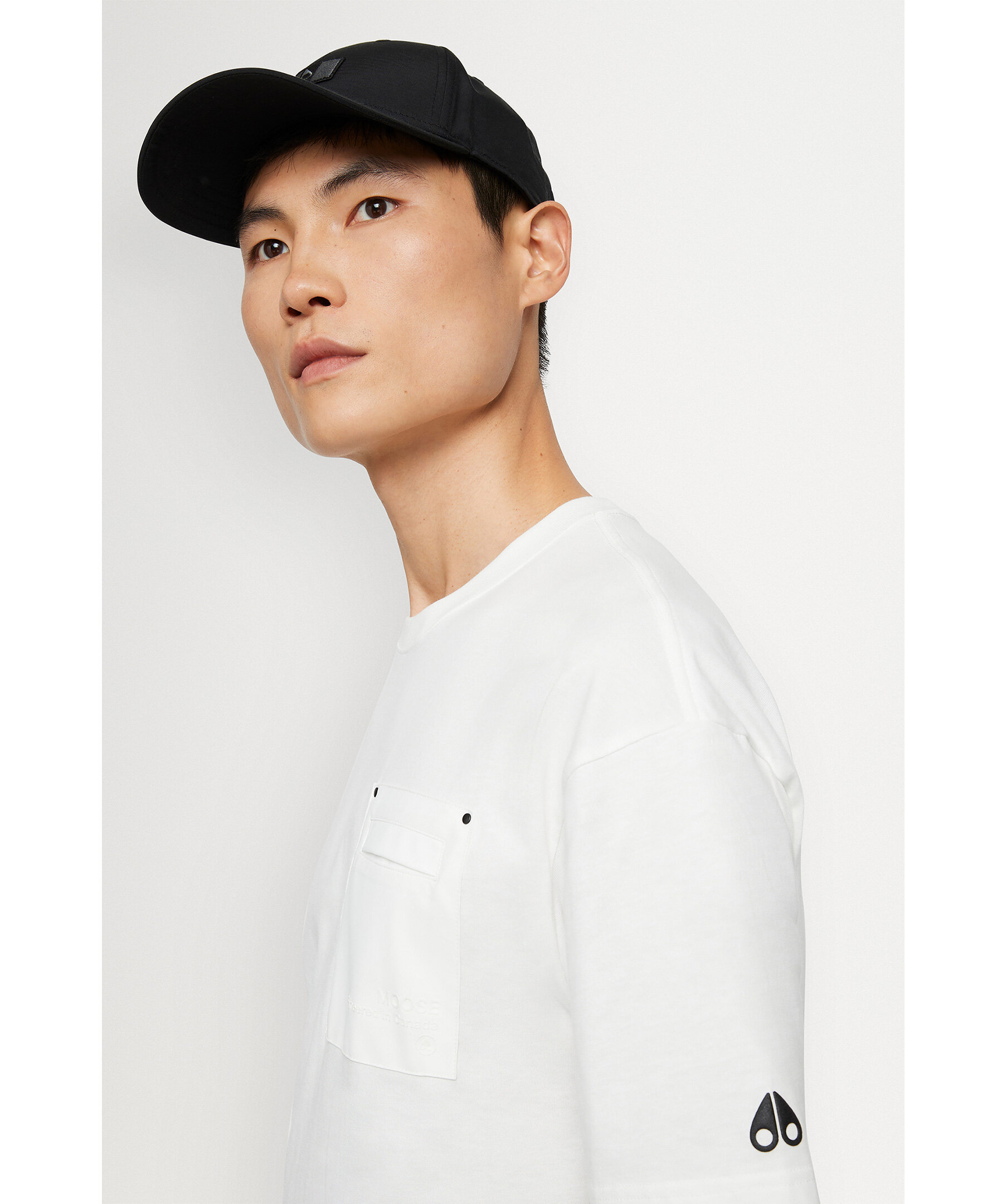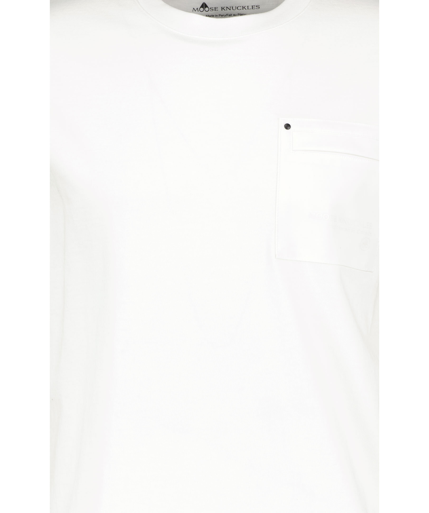 Benvit t-shirt från Moose Knuckles. Bröstficka med logotyp. Tillverkad i bomull.