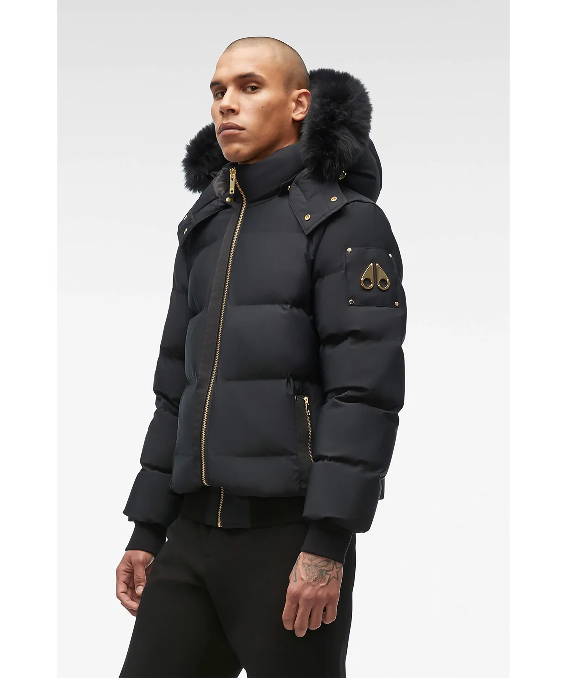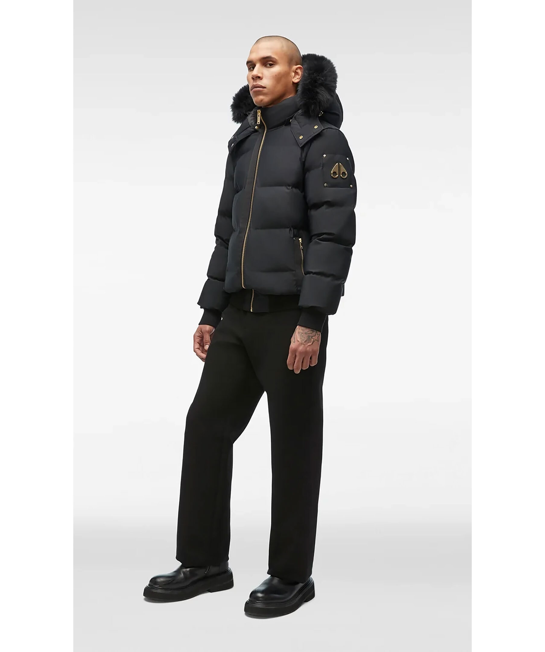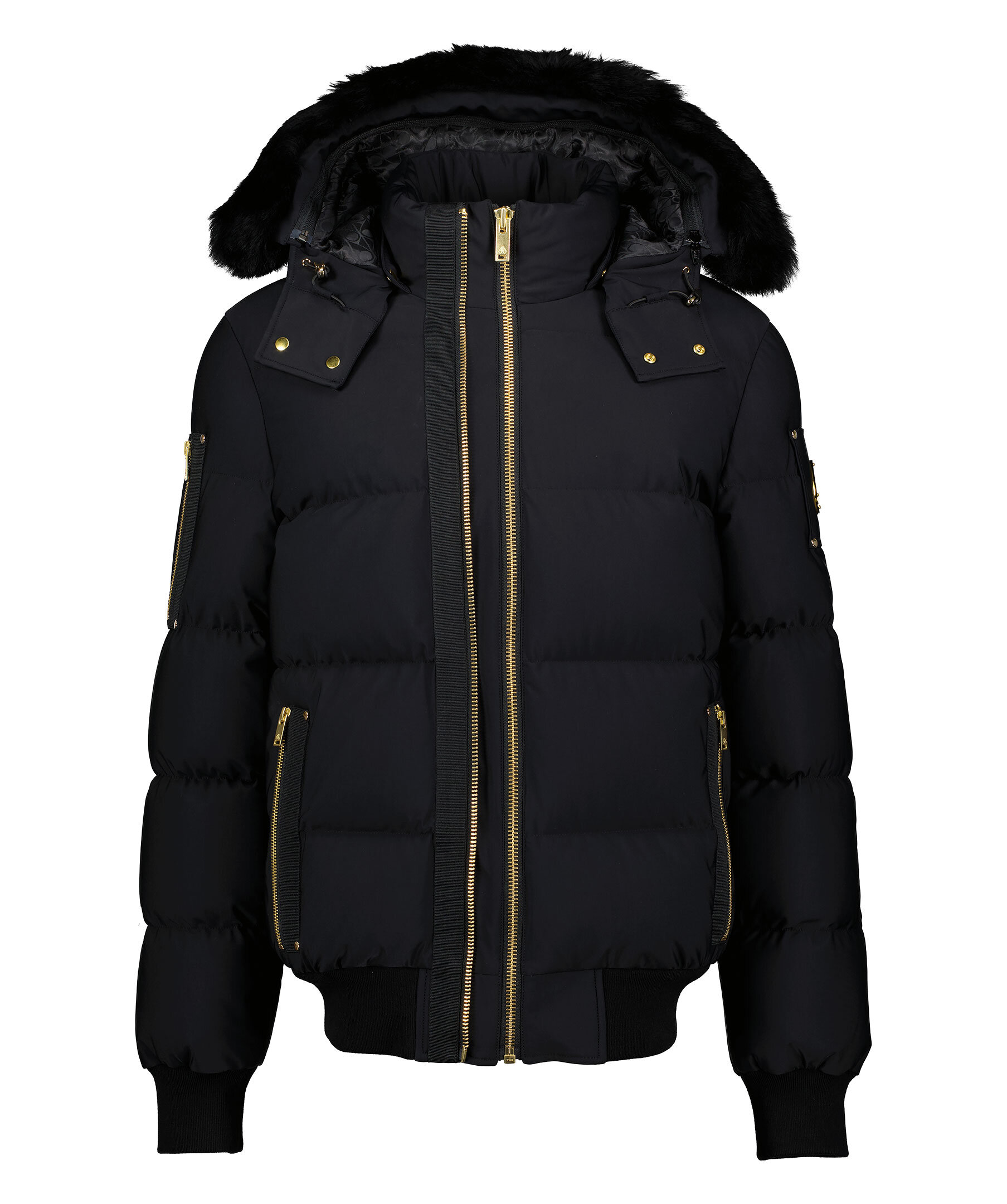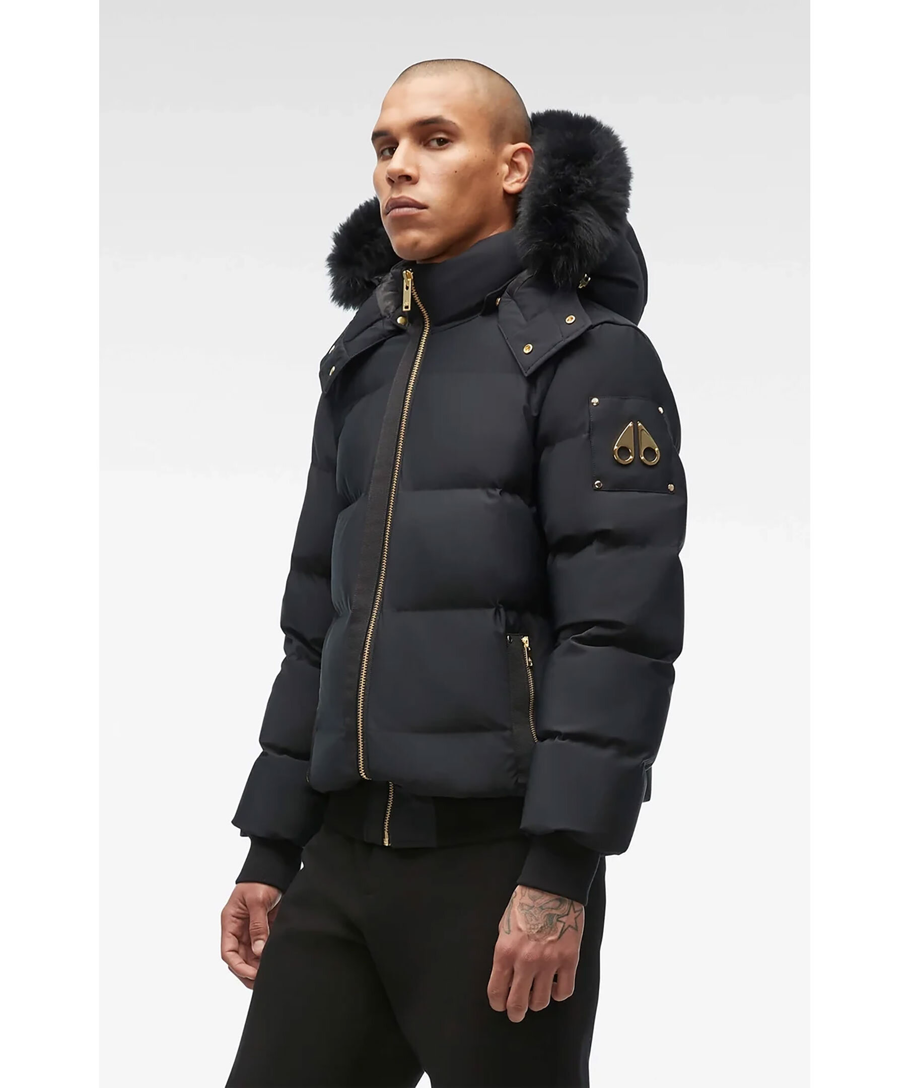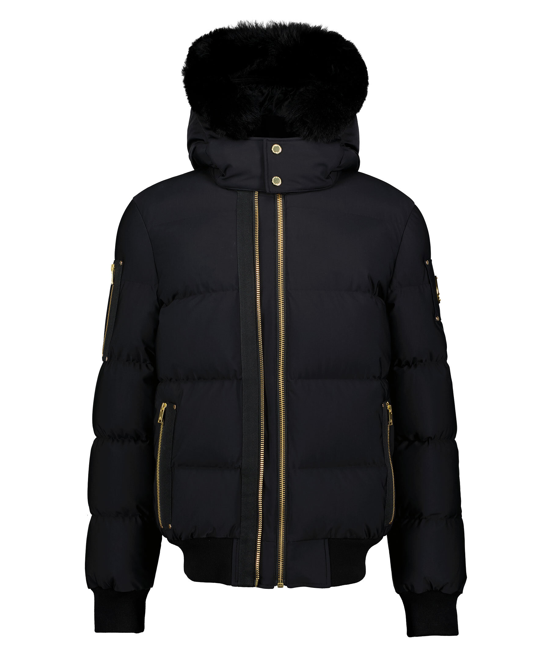 Svart bomberjacka från Moose Knuckles med avtagbar pälshuva. Tillverkad i nylon/polyuretan. Stängs med dragkedja framtill. Två sidfickor samt två invändiga fickor med dragkedja. Dragkedjeficka på höger ärm. Metall logotyp på vänster ärm. Ribbstickad manschett och midjeband.