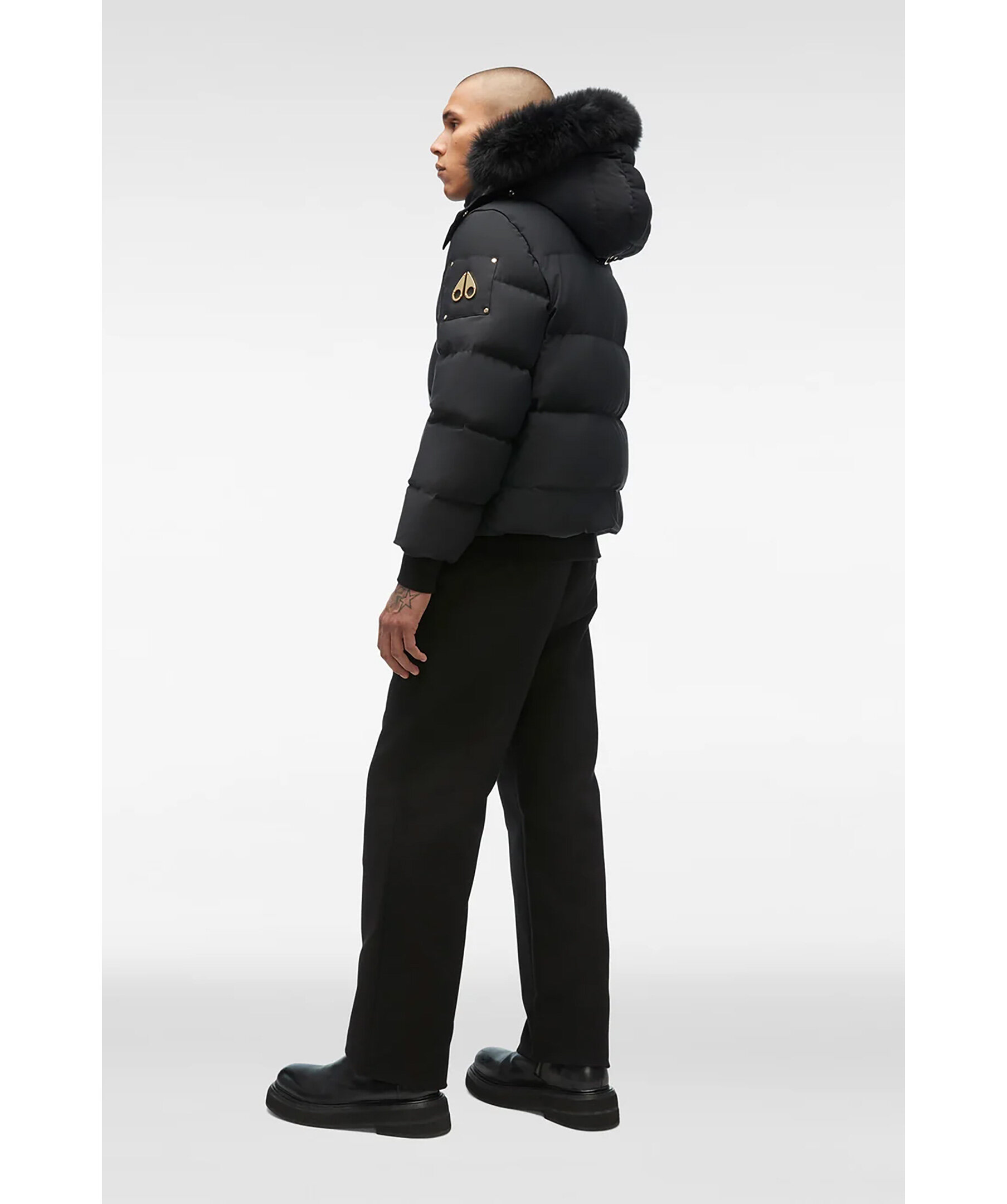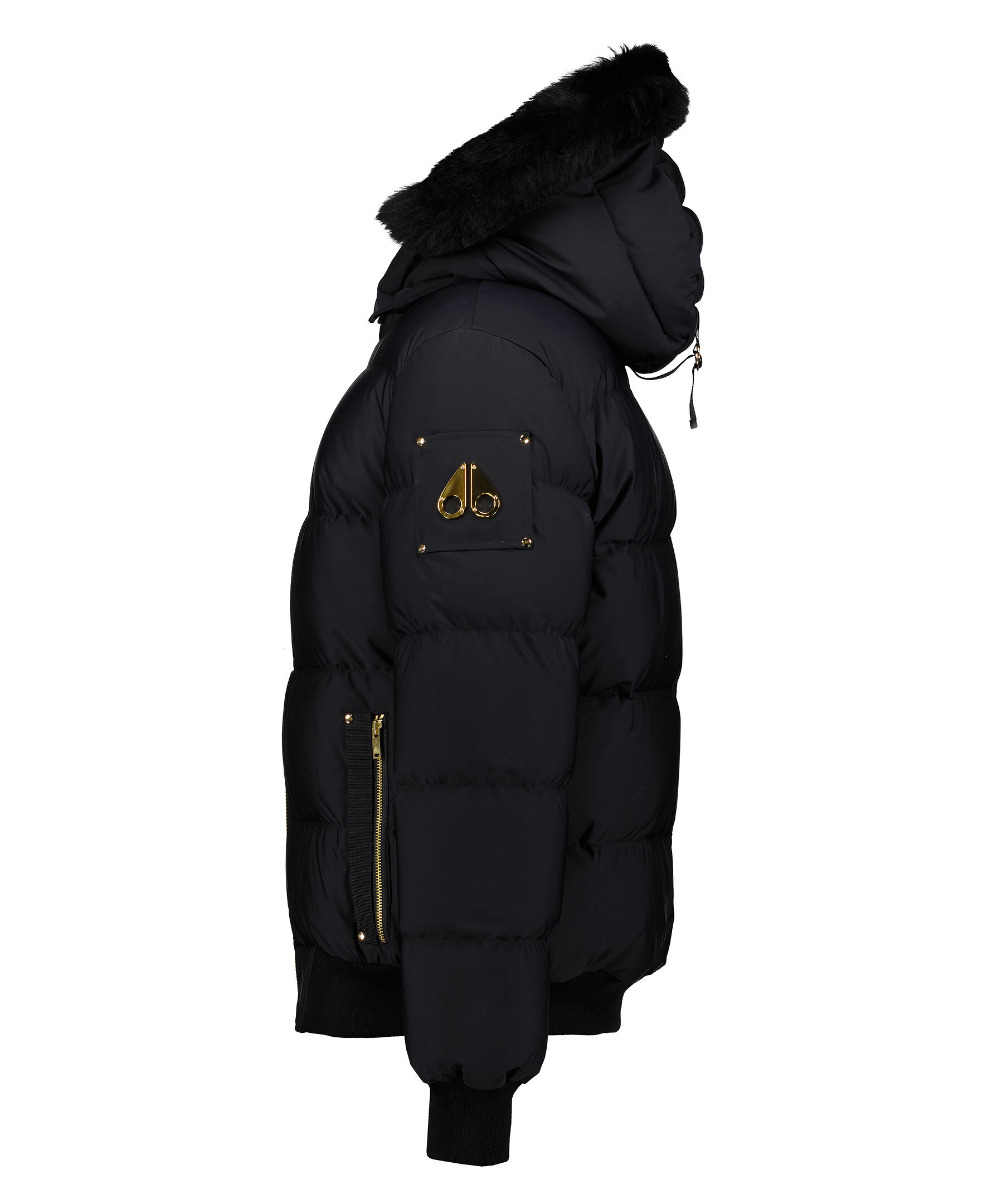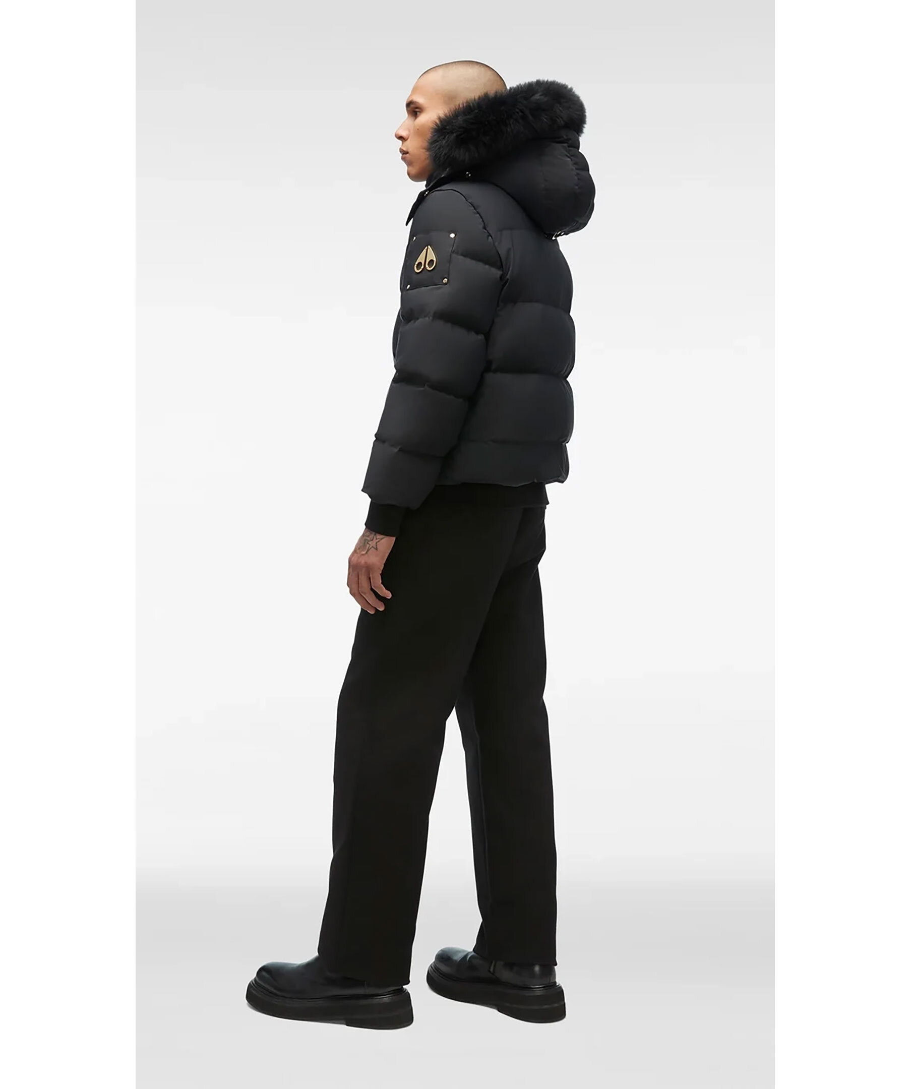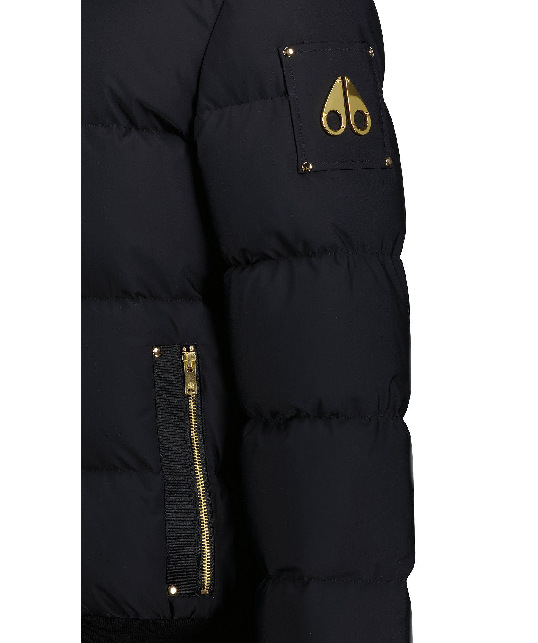 Svart bomberjacka från Moose Knuckles med avtagbar pälshuva. Tillverkad i nylon/polyuretan. Stängs med dragkedja framtill. Två sidfickor samt två invändiga fickor med dragkedja. Dragkedjeficka på höger ärm. Metall logotyp på vänster ärm. Ribbstickad manschett och midjeband.