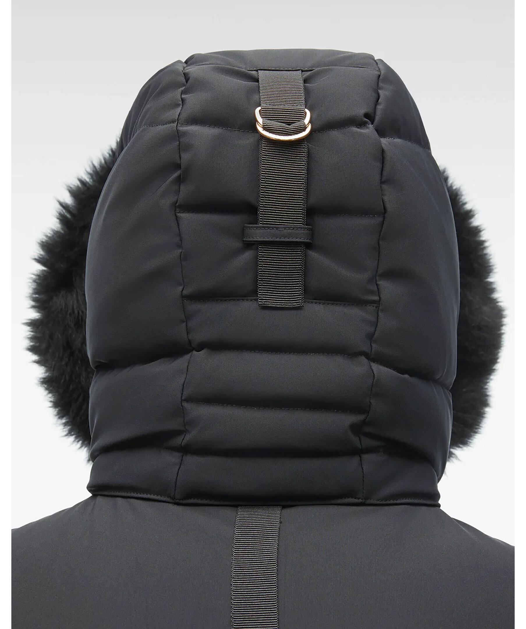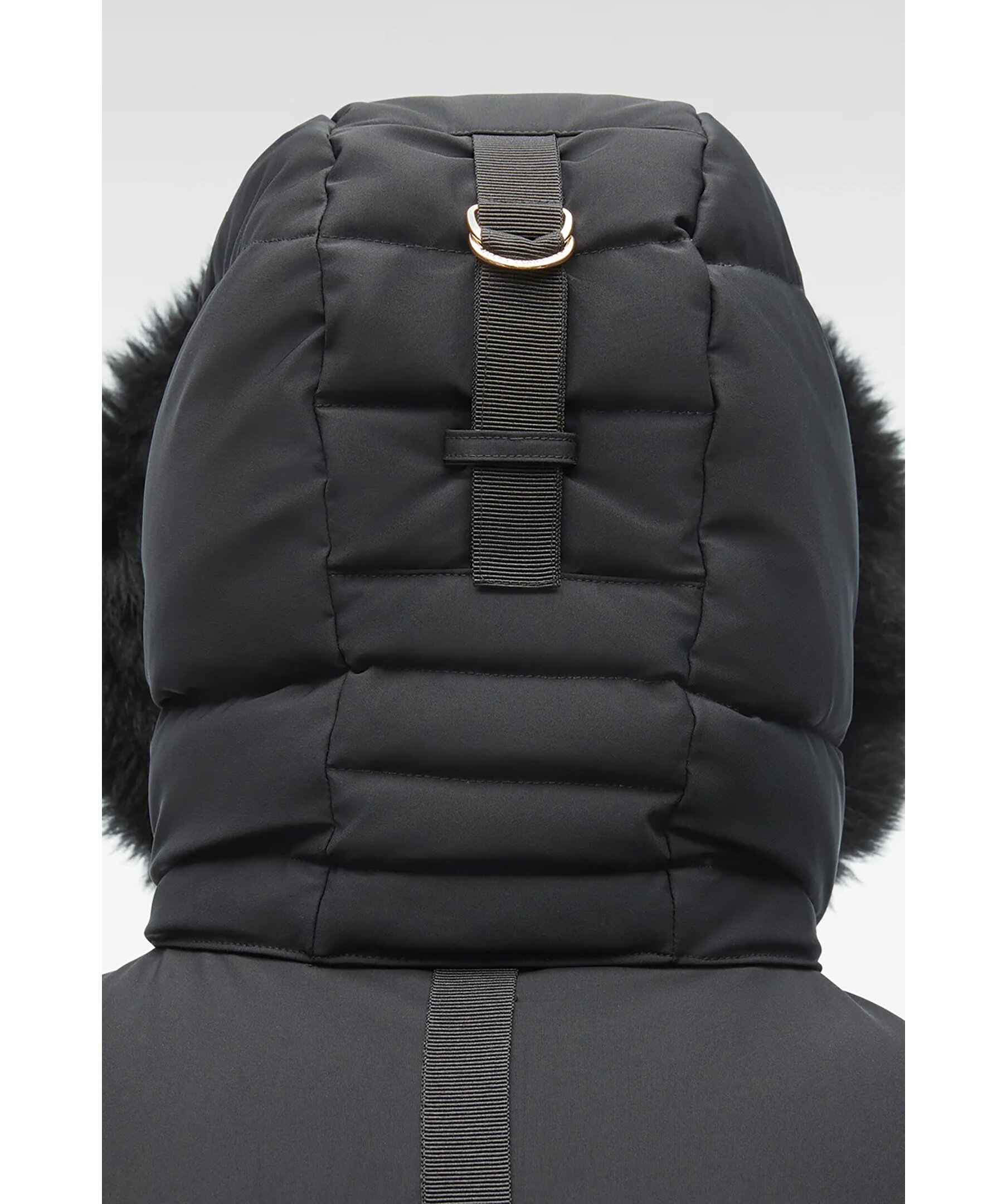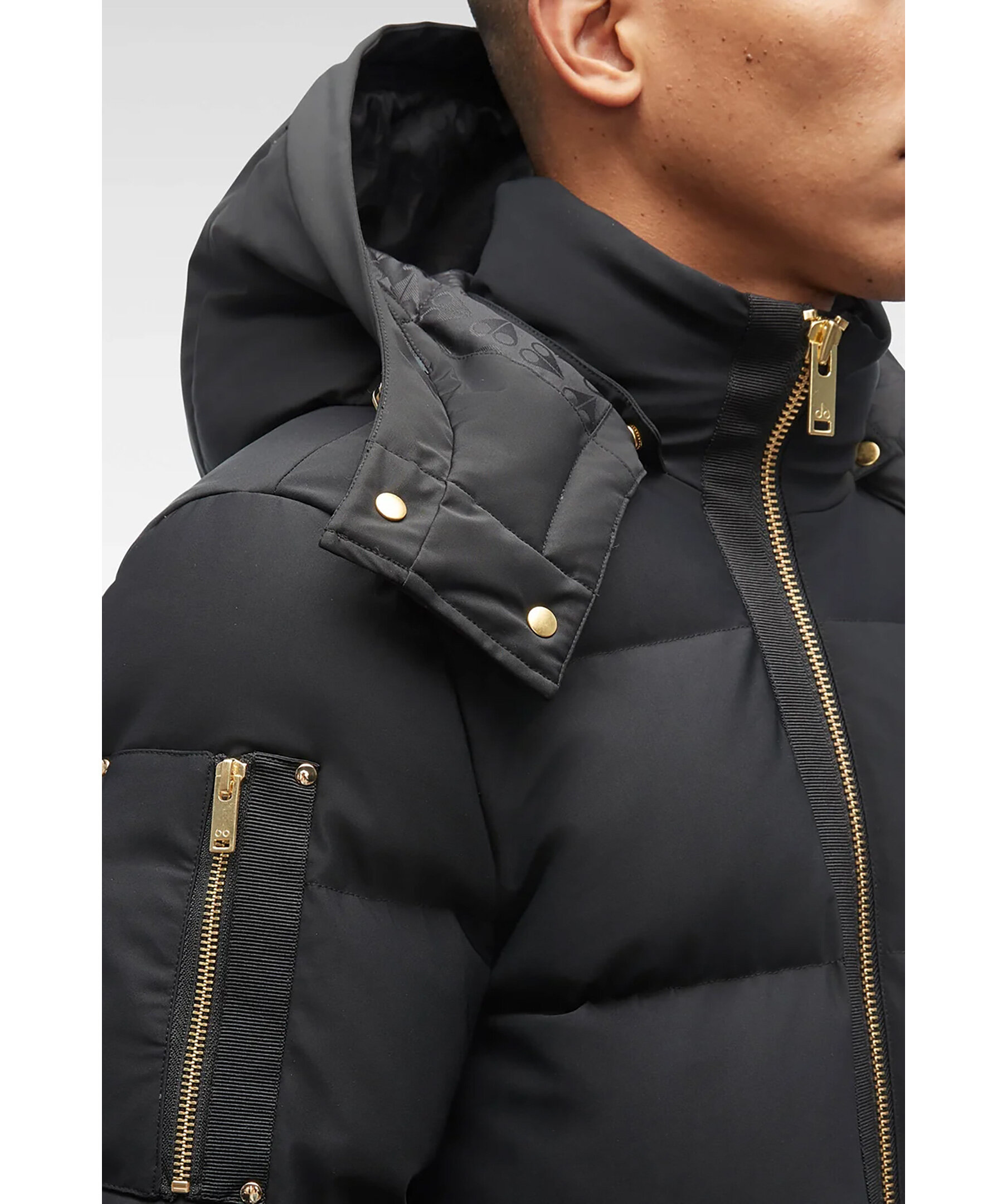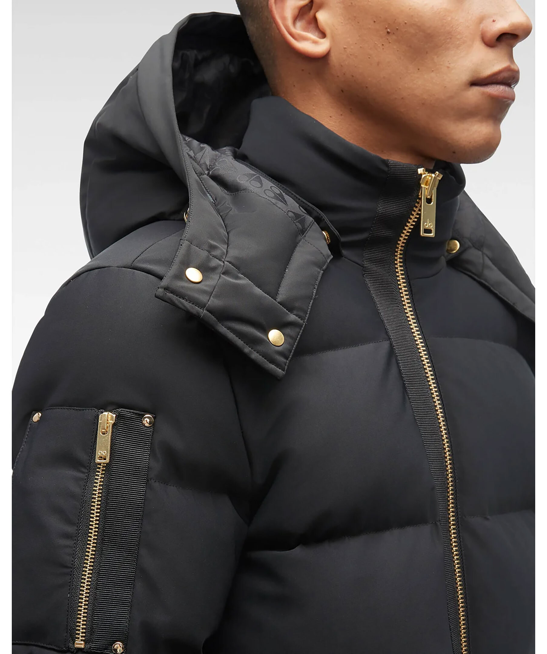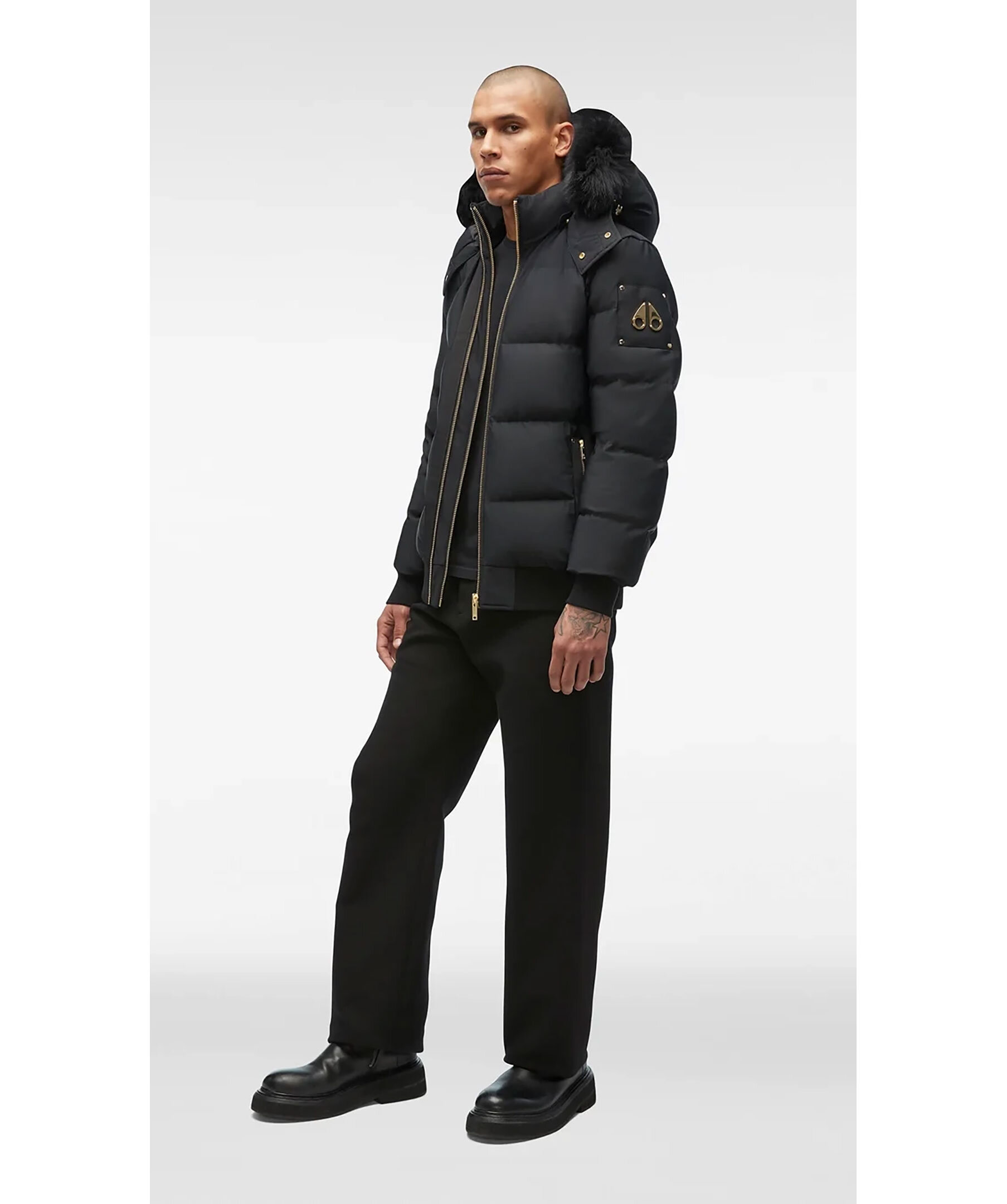 Svart bomberjacka från Moose Knuckles med avtagbar pälshuva. Tillverkad i nylon/polyuretan. Stängs med dragkedja framtill. Två sidfickor samt två invändiga fickor med dragkedja. Dragkedjeficka på höger ärm. Metall logotyp på vänster ärm. Ribbstickad manschett och midjeband.
