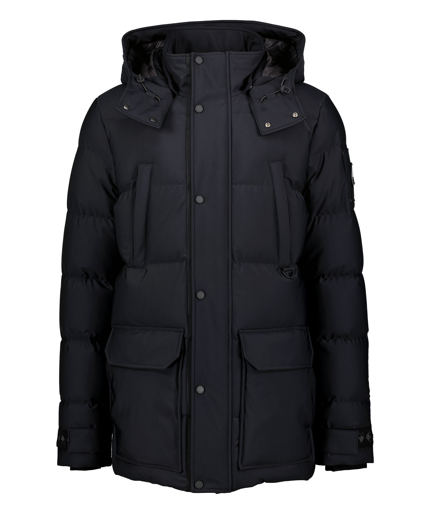 Svart quiltad dunparkas från Moose Knuckles.Stängs framtill med tvåvägsdragkedja och tryckknappar. Luva med dragsko. Justerbart ärmslut med kardborre. Elastisk mudd vi ärmslut. Patch med logotyp i metall på vänster ärm. Två bröstfickor som stängs med dragkedja, två fickor framtill som stängs med tryckknapp. innerficka som stängs med dragkedja.