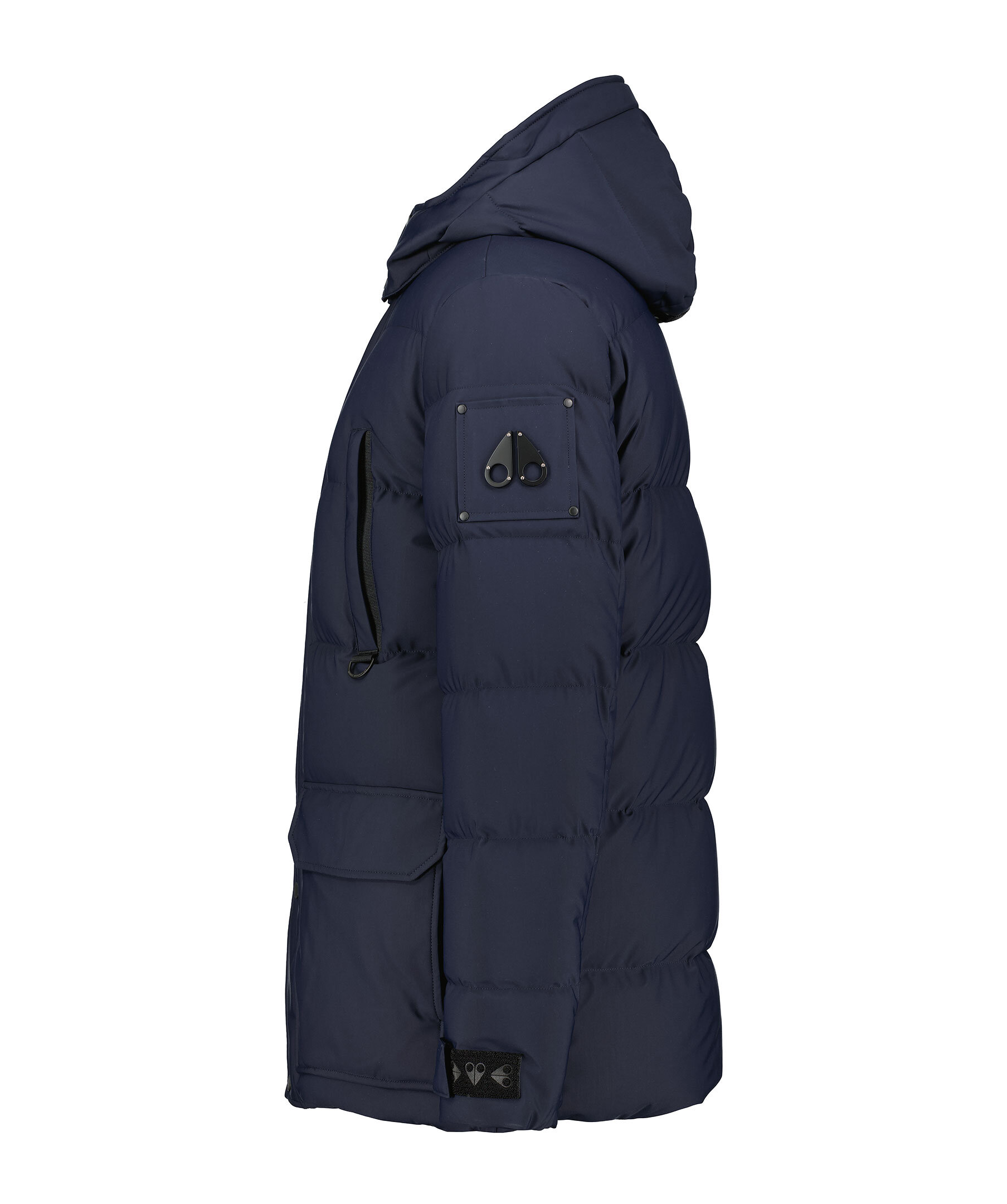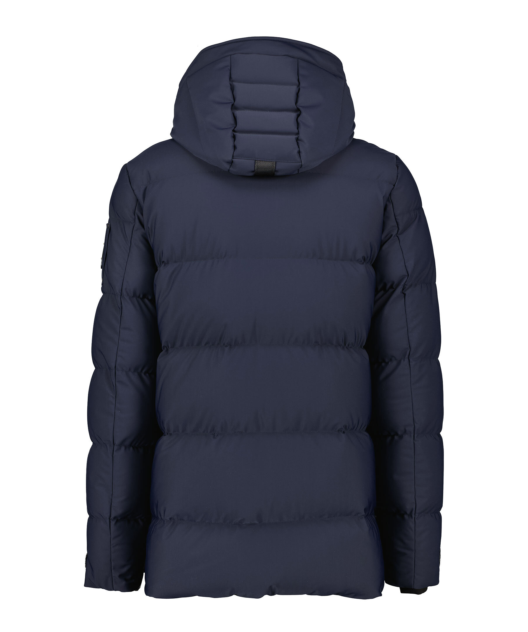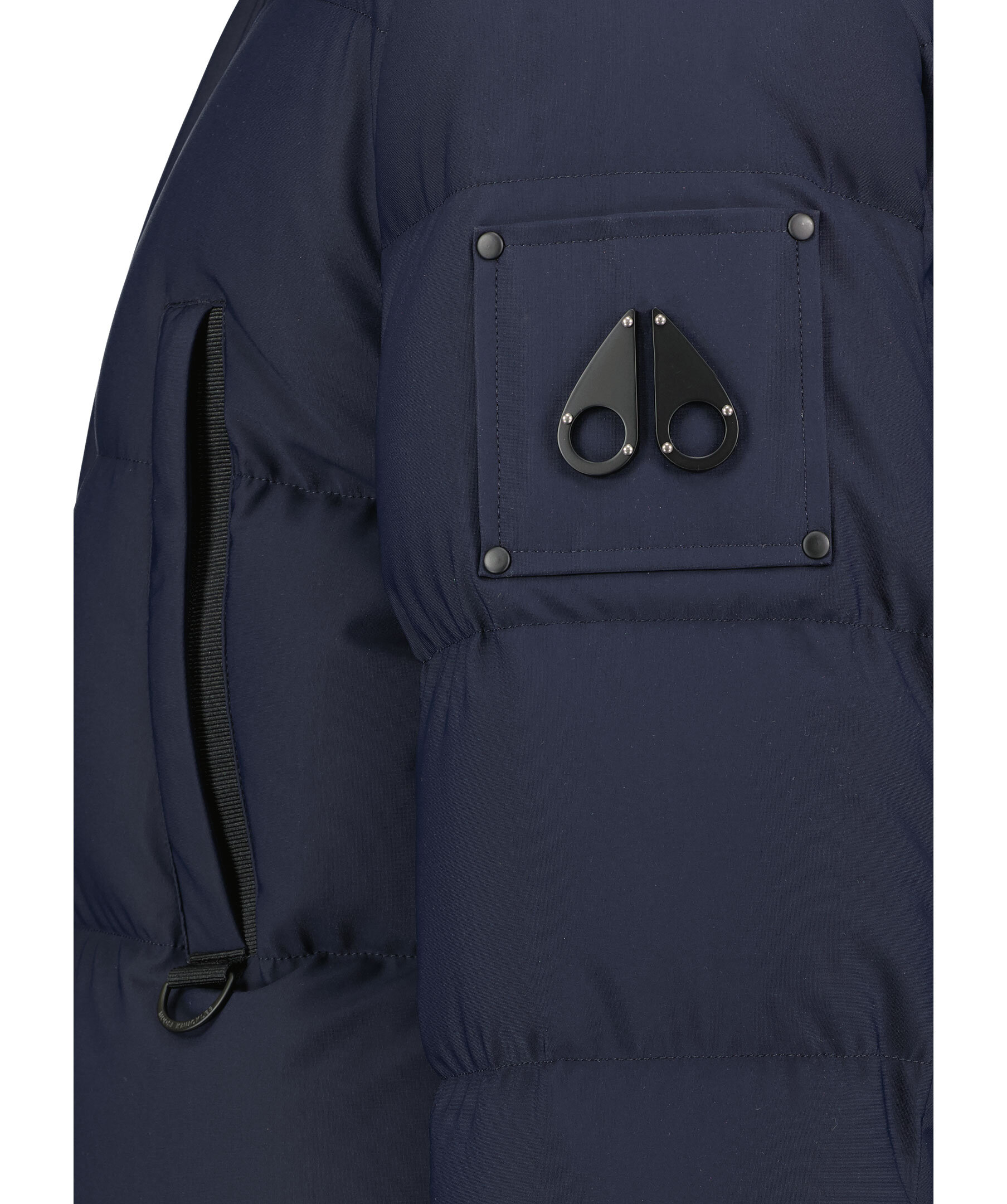 Mörkblå quiltad dunparkas från Moose Knuckles. Stängs framtill med tvåvägsdragkedja och tryckknappar. Luva med dragsko. Justerbart ärmslut med kardborre. Elastisk mudd vi ärmslut. Patch med logotyp i metall på vänster ärm. Två bröstfickor som stängs med dragkedja, två fickor framtill som stängs med tryckknapp. Innerficka som stängs med dragkedja. Tillverkad i en nylonblandning.