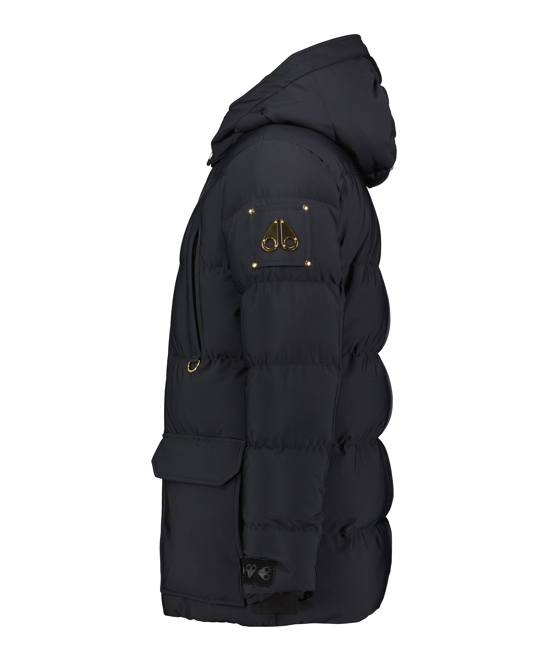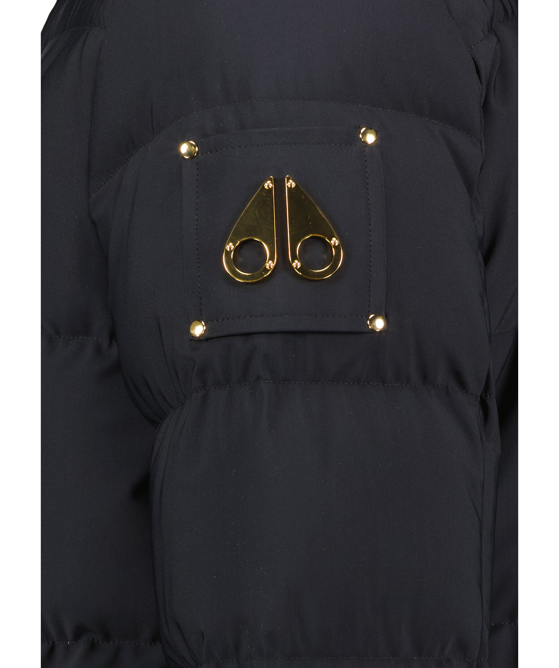 Svart quiltad dunparkas från Moose Knuckles. Jackan har guldfärgade detaljer och stängs framtill med tvåvägsdragkedja och tryckknappar. Luva med dragsko. Justerbart ärmslut med kardborre. Elastisk mudd vi ärmslut. Patch med logotyp i guldfärgad metall på vänster ärm. Två bröstfickor som stängs med dragkedja, två fickor framtill som stängs med tryckknapp. Innerficka som stängs med dragkedja. Tillverkad i en nylonblandning med dunfyllning.