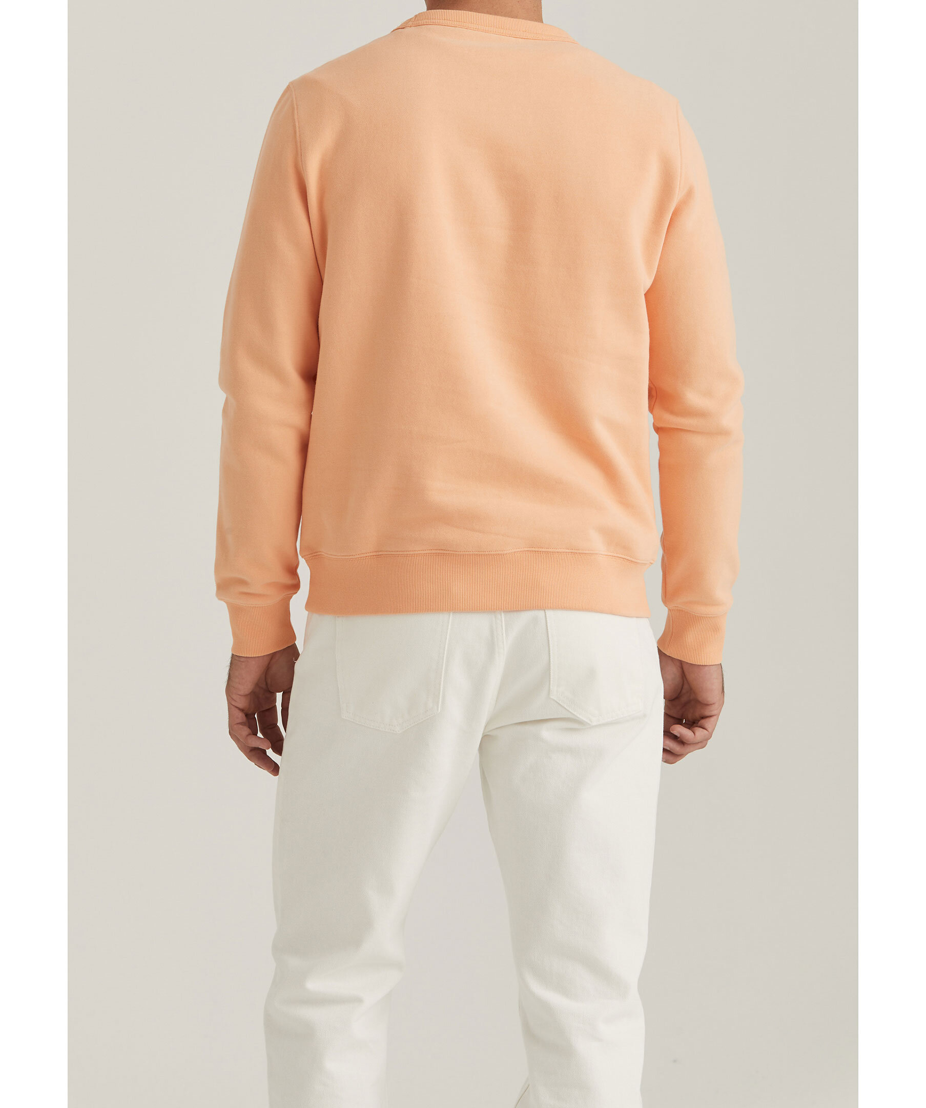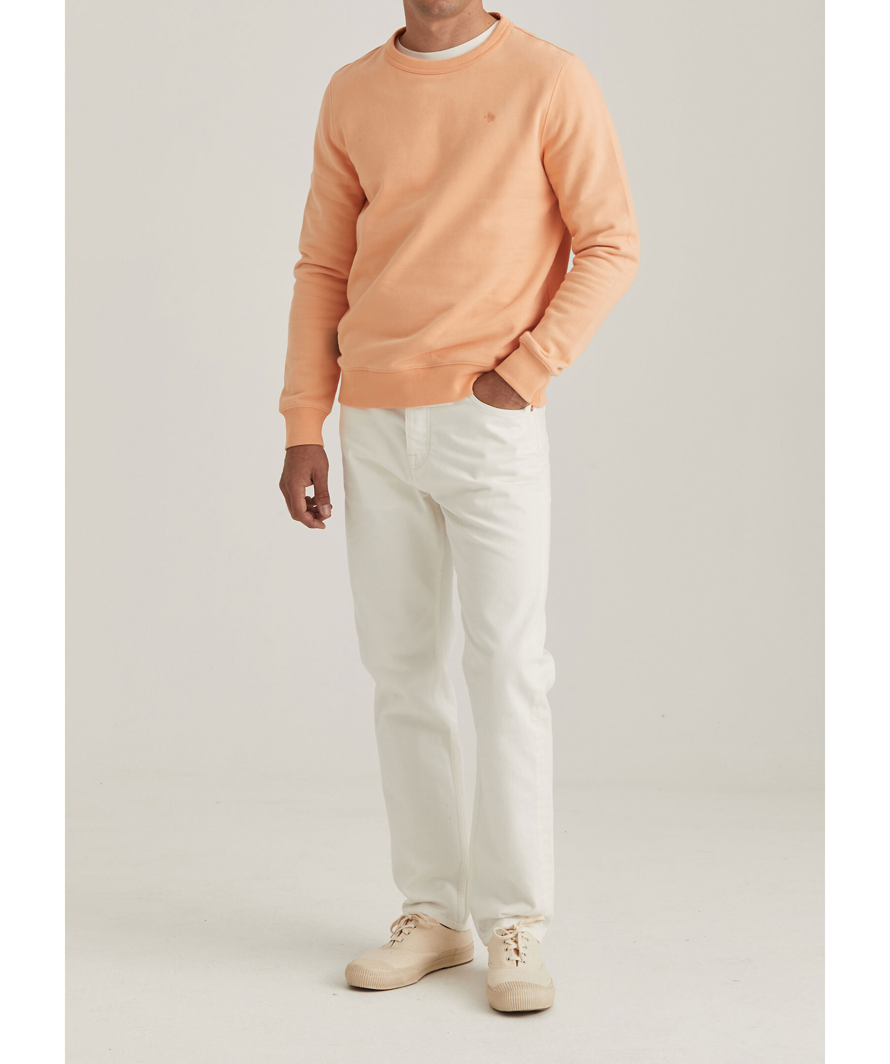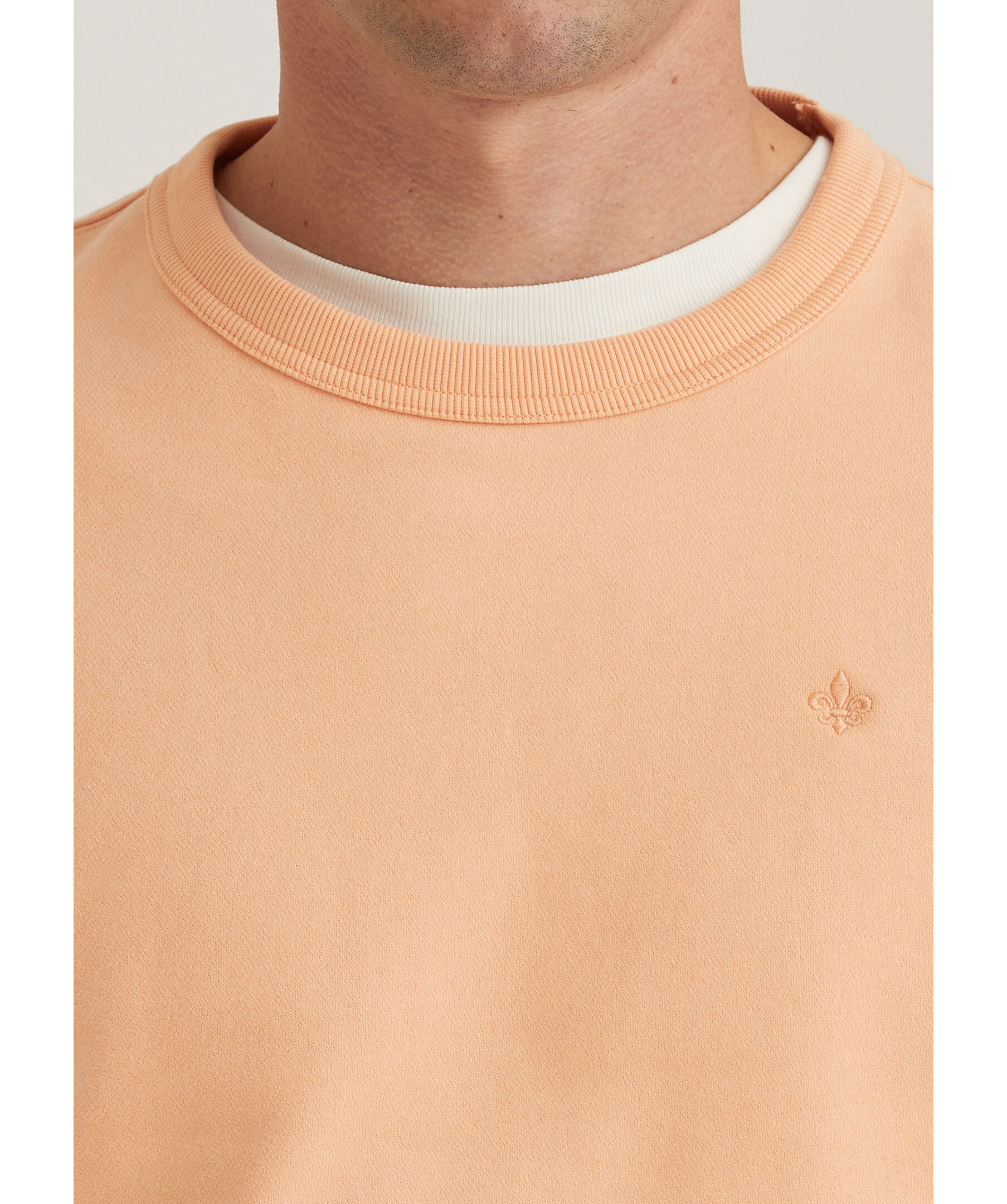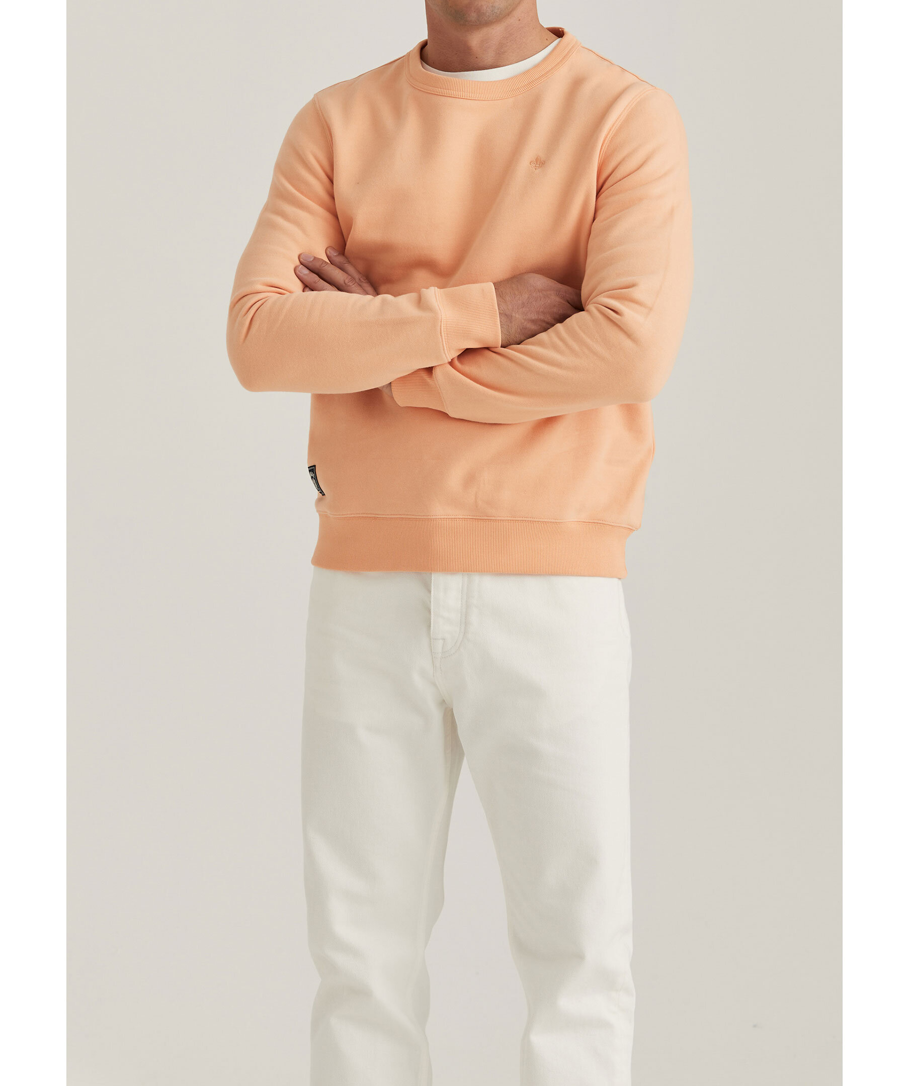 Orange sweatshirt från Morris. Tillverkad i en 100% borstad bomullskvalité. Tröjan har en smal passform och pryds av en liljebrodyr på bröstet samt en dekorativ etikett vid nedre ribben.