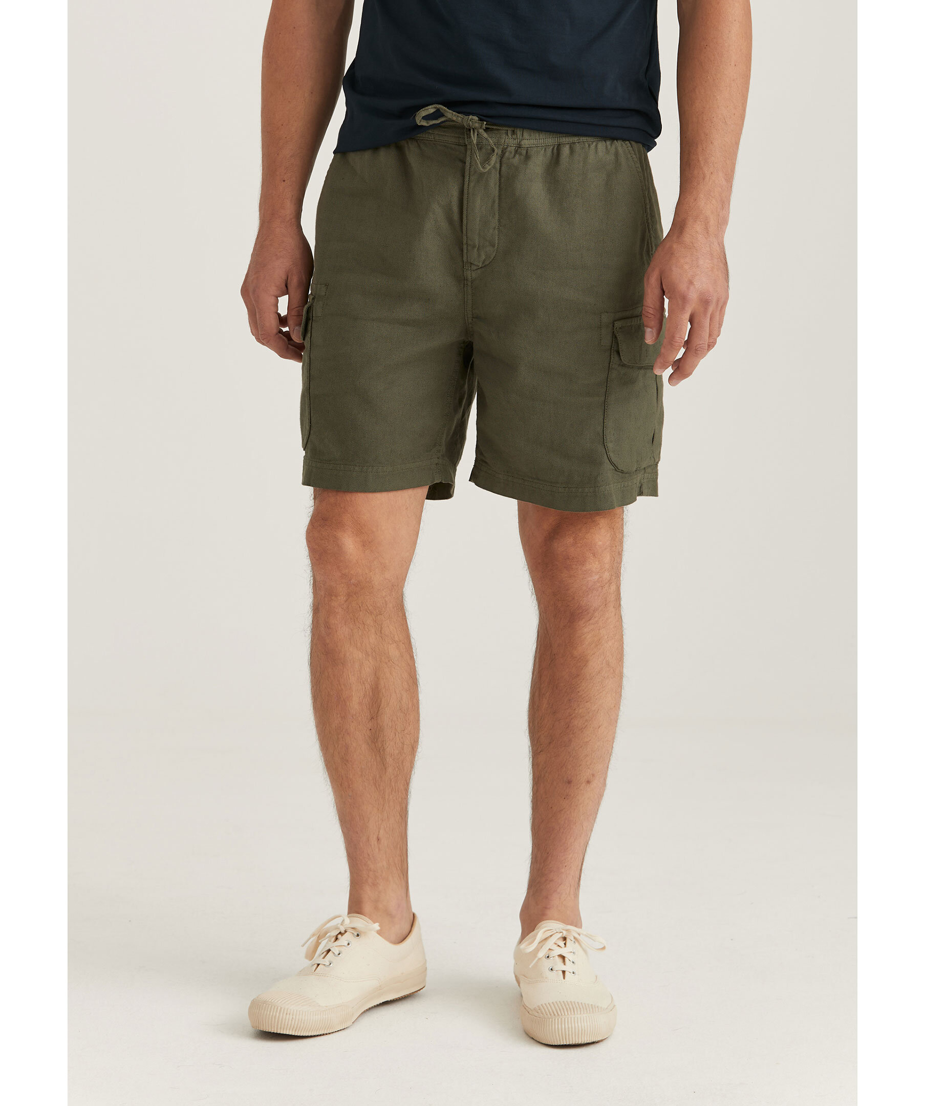 Morris Cargo Linen Shorts - Olivgrön